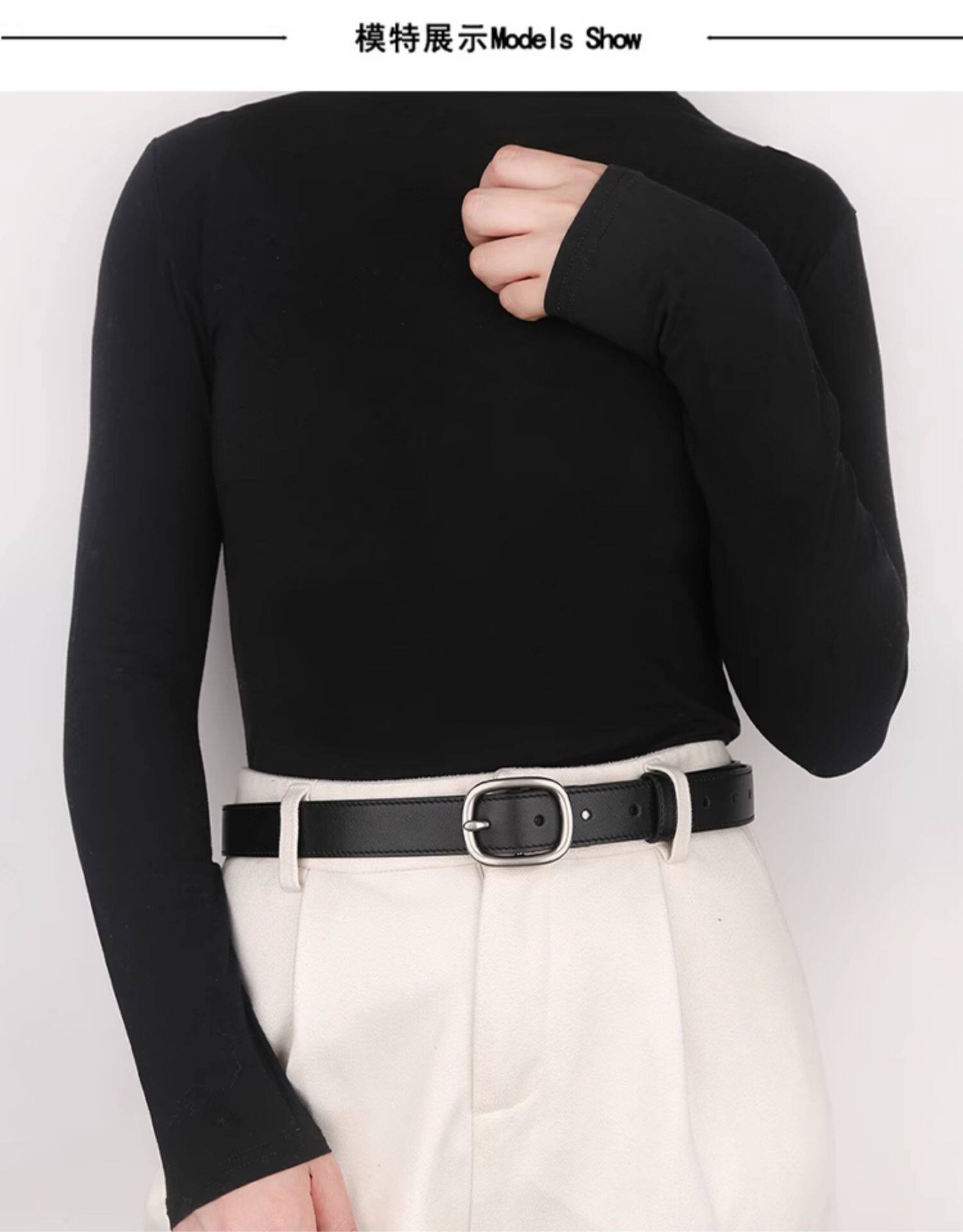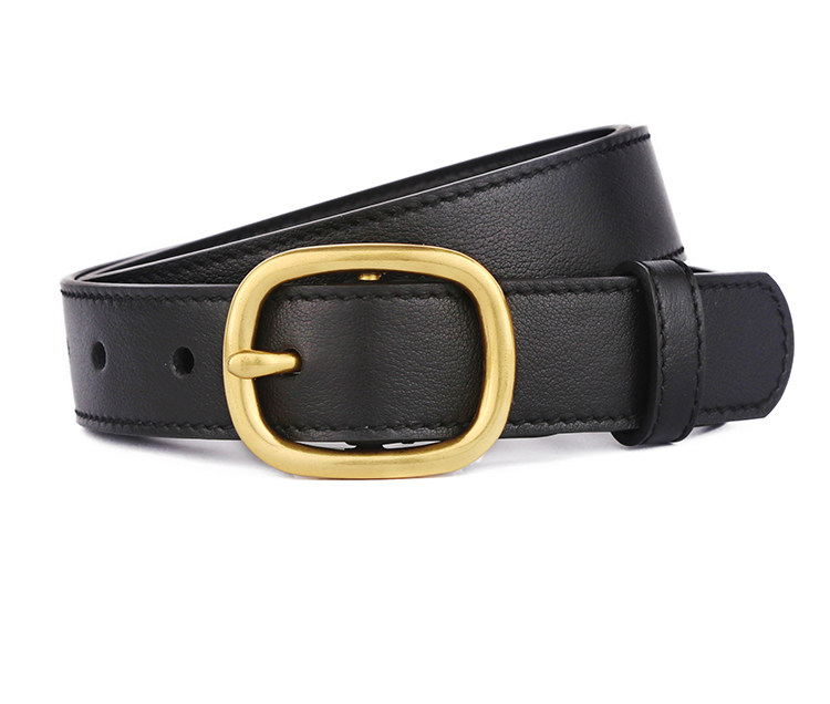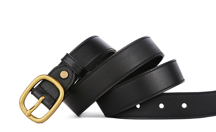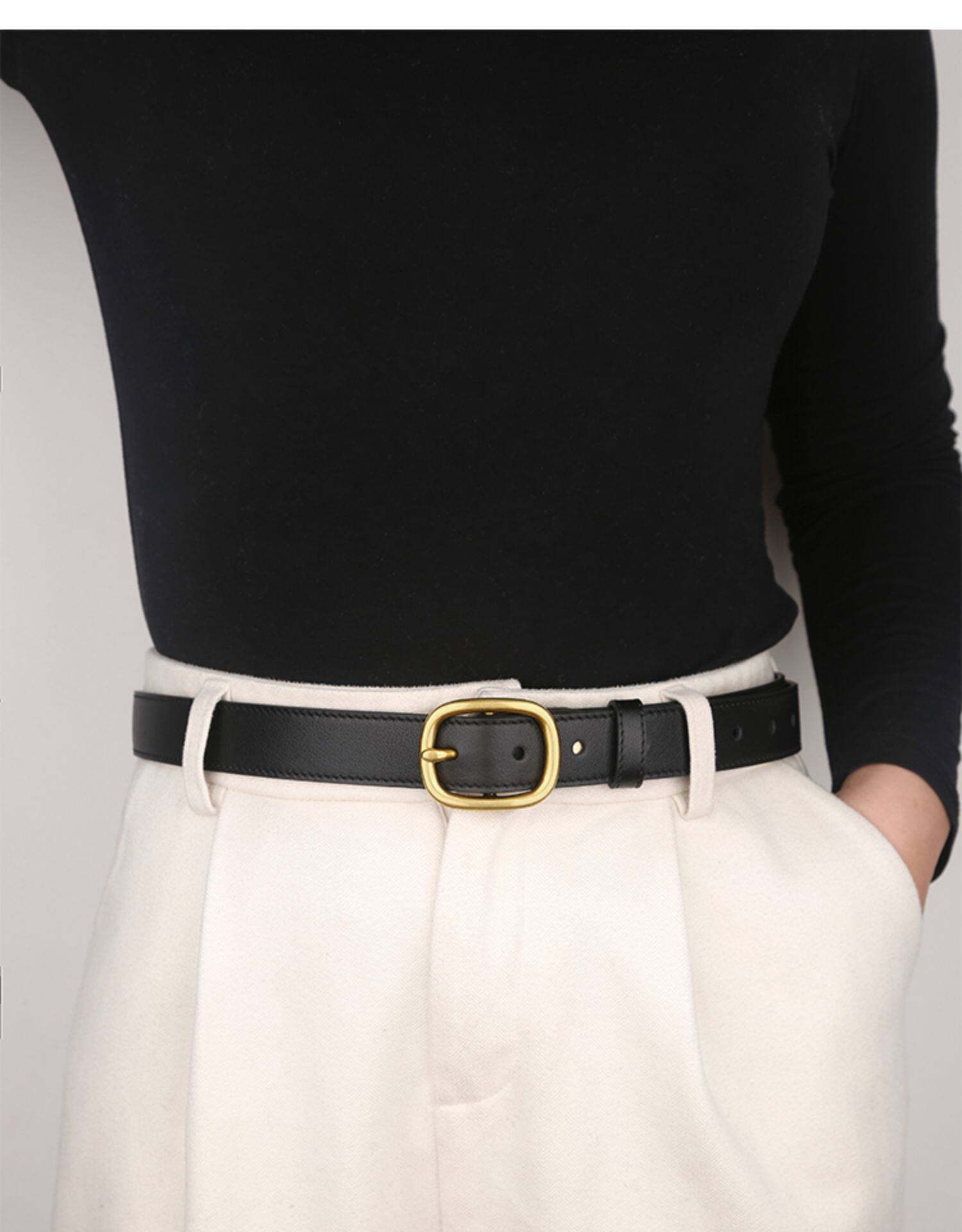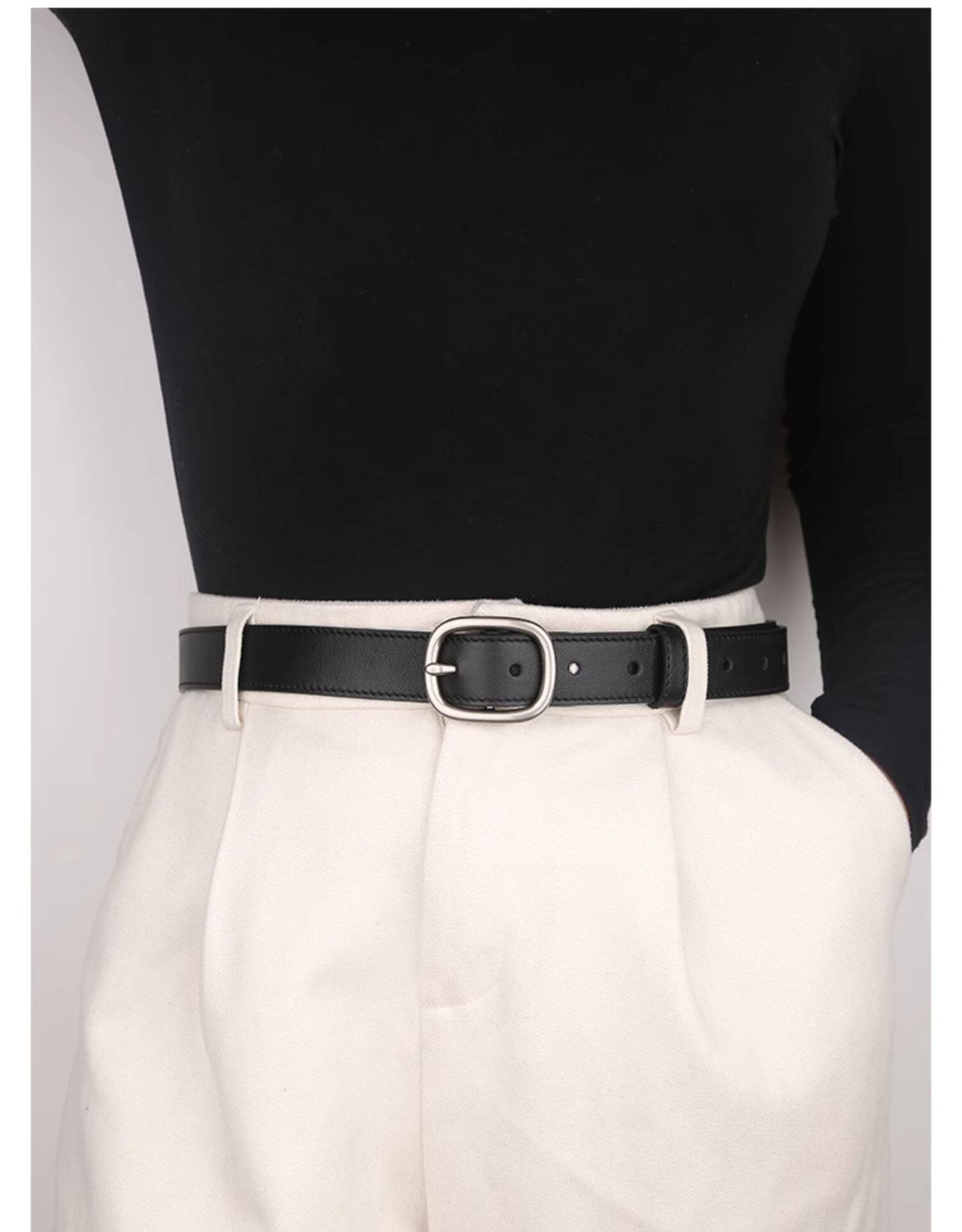 Women's Genuine Leather Belt, Fashionable and Versatile, Suitable for Jeans, Made of Top-Grain Pure Cowhide with Pin Buckle, Black, ins Trend