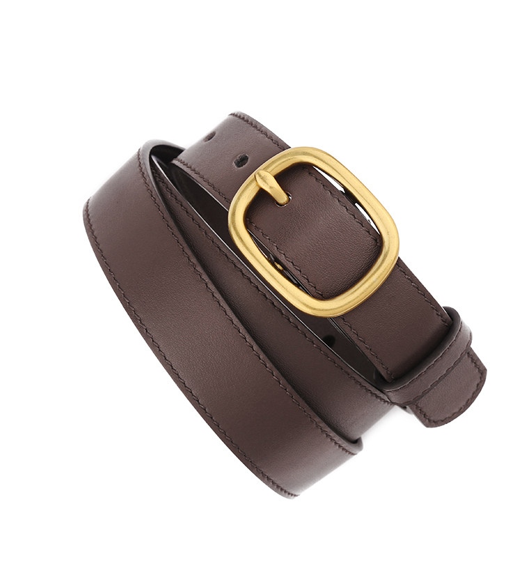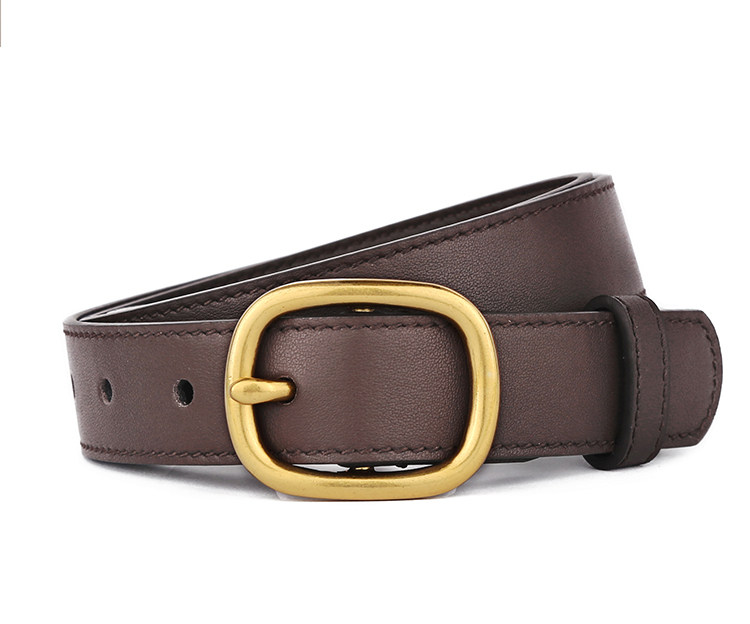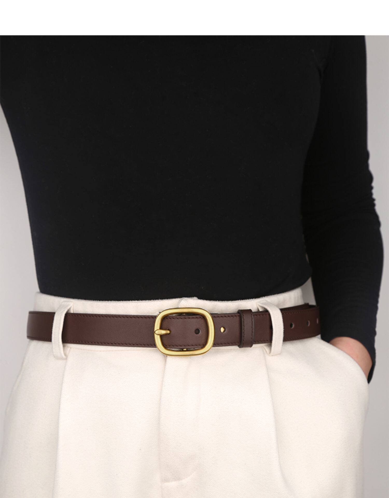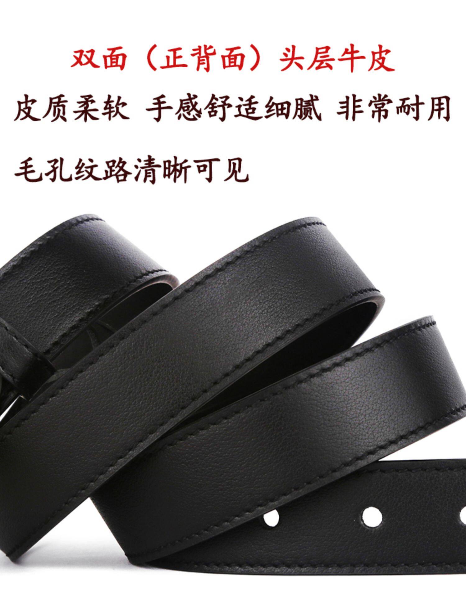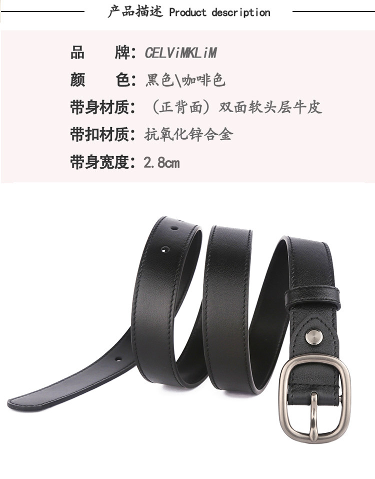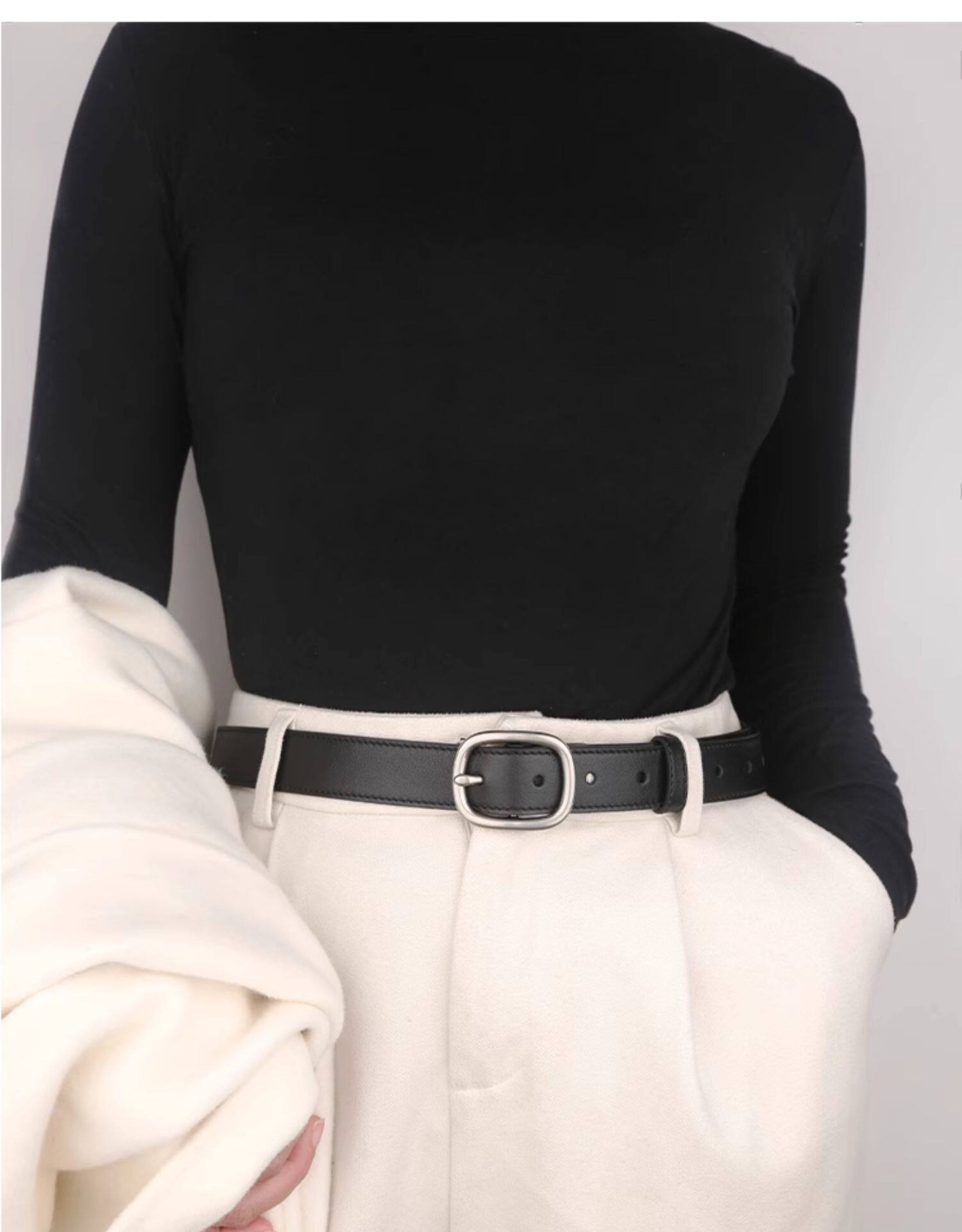 Women's Genuine Leather Belt, Fashionable and Versatile, Suitable for Jeans, Made of Top-Grain Pure Cowhide with Pin Buckle, Black, ins Trend