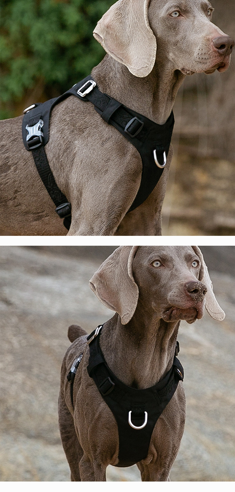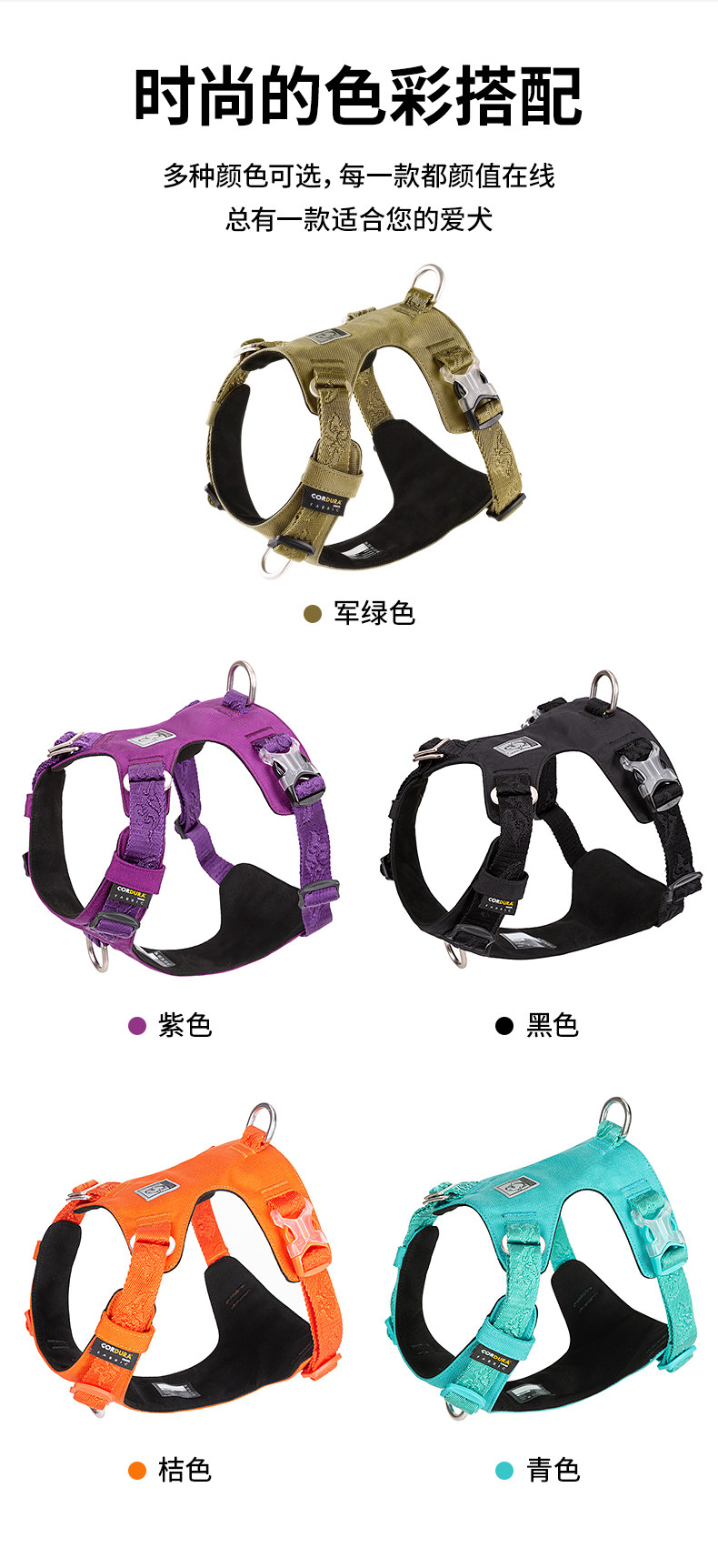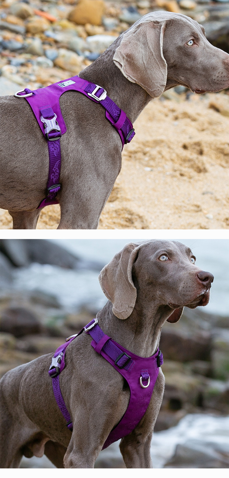 Applicable size Chest and back 2XS traction rope S, bust 30-35cm, 1-3kg recommended,Harness XS Leash S Bust 33-43cm, 2-5kg recommended,Harness S, Leash S, Bust 43-56cm, recommended 4-7kg,Harness M, Leash M, Bust 56-69cm, 7-18kg recommended,Chest and back L Traction rope L Bust 69-81cm, recommended 18-30kg,Harness XL Leash L Bust 81-107cm, recommended 30-50kg