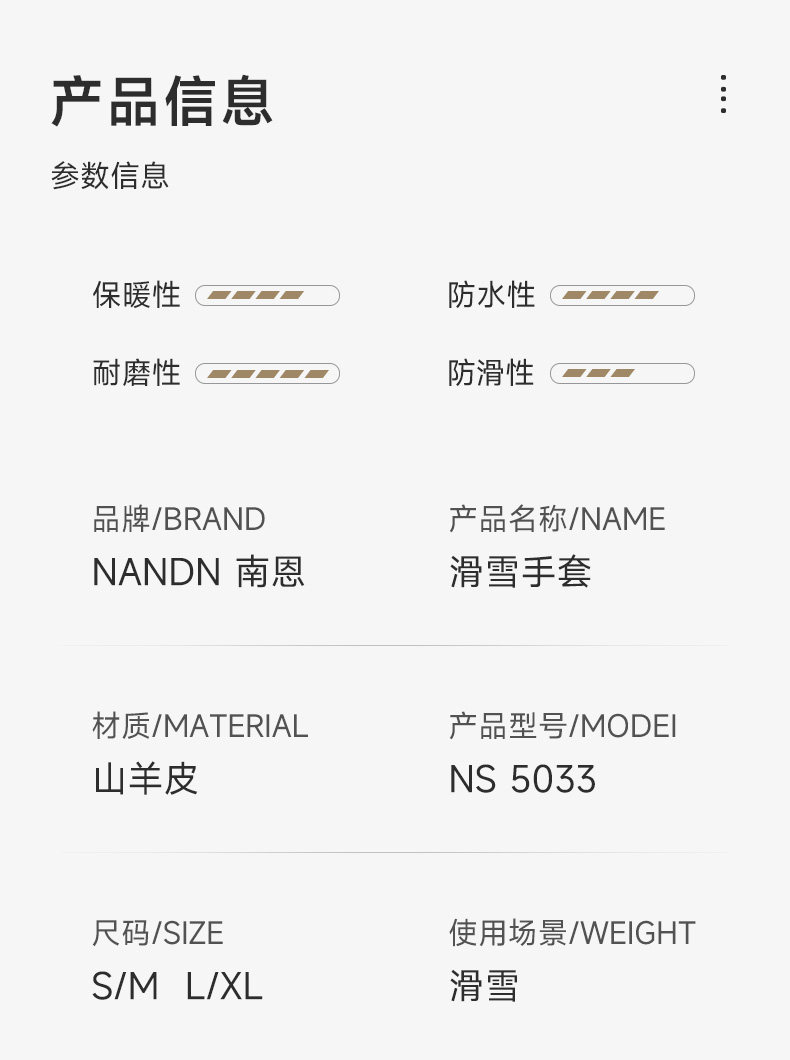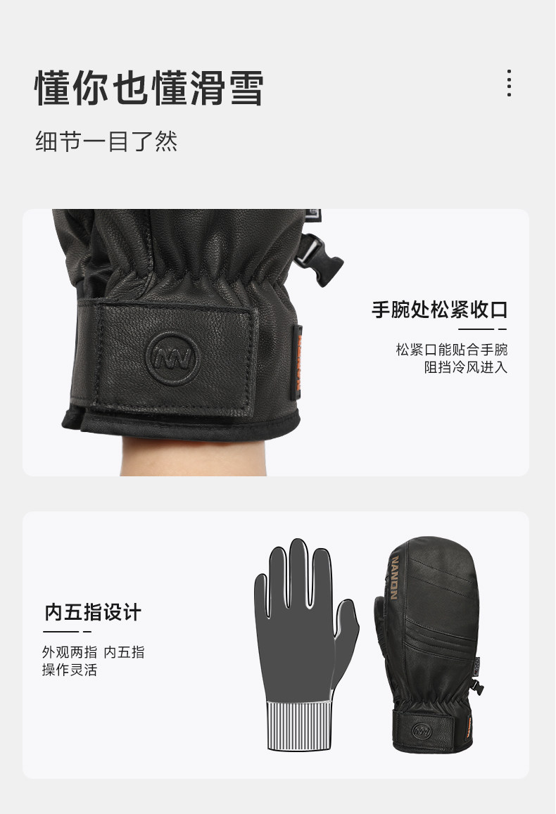 Nandn Ski Gloves Goatskin Wear-Resistant Waterproof Anti-Slip Warm Ski Equipment Winter Gloves Ns5033