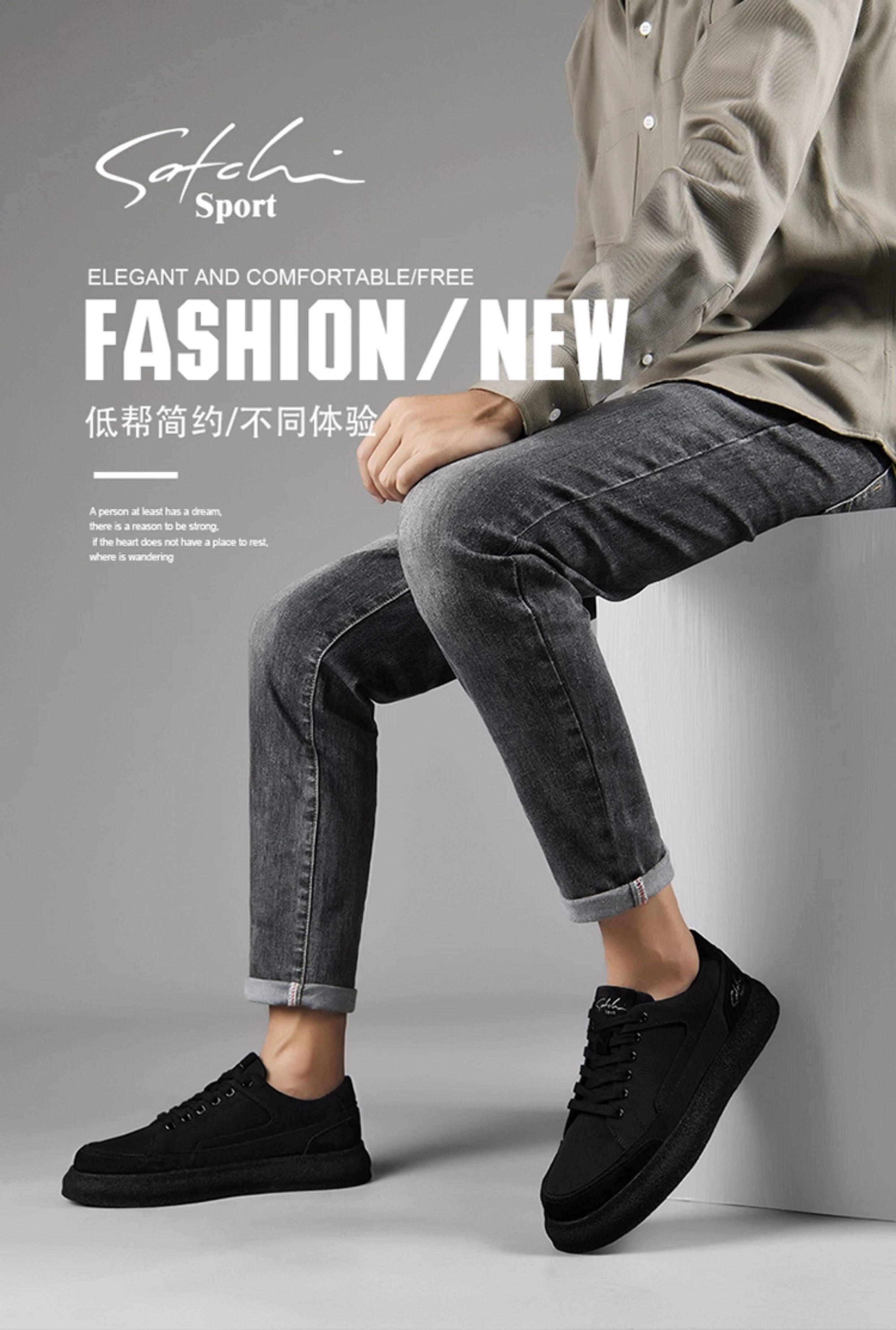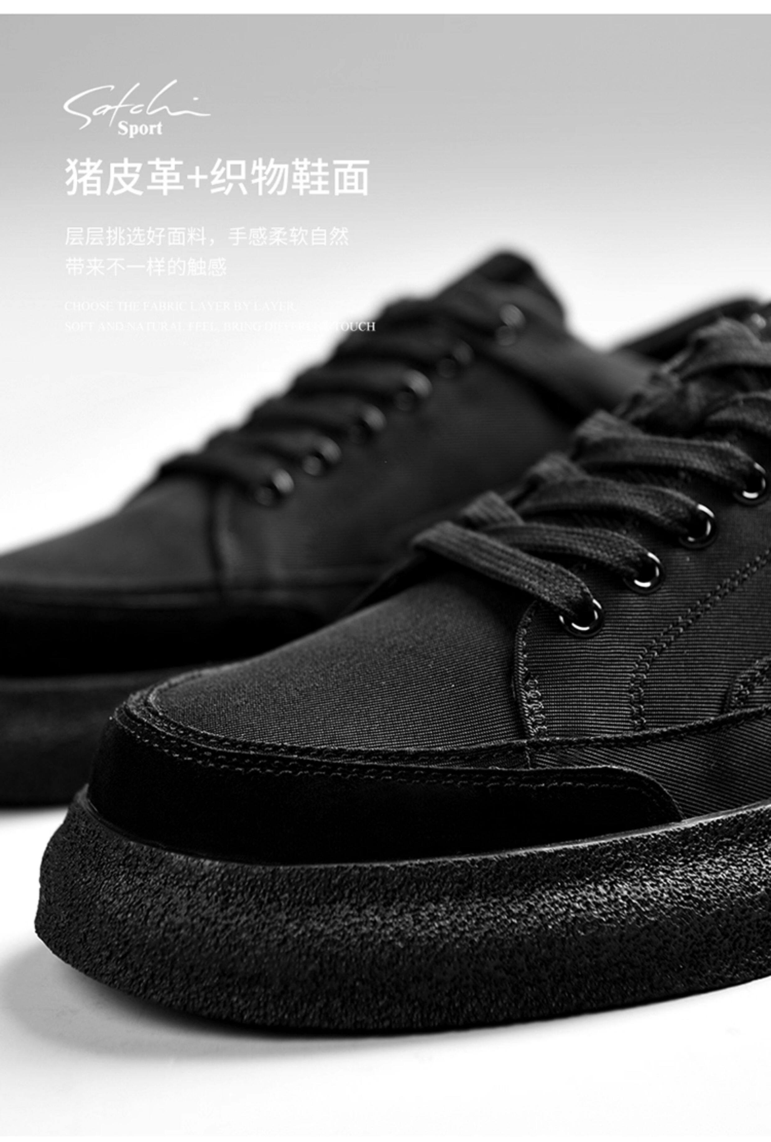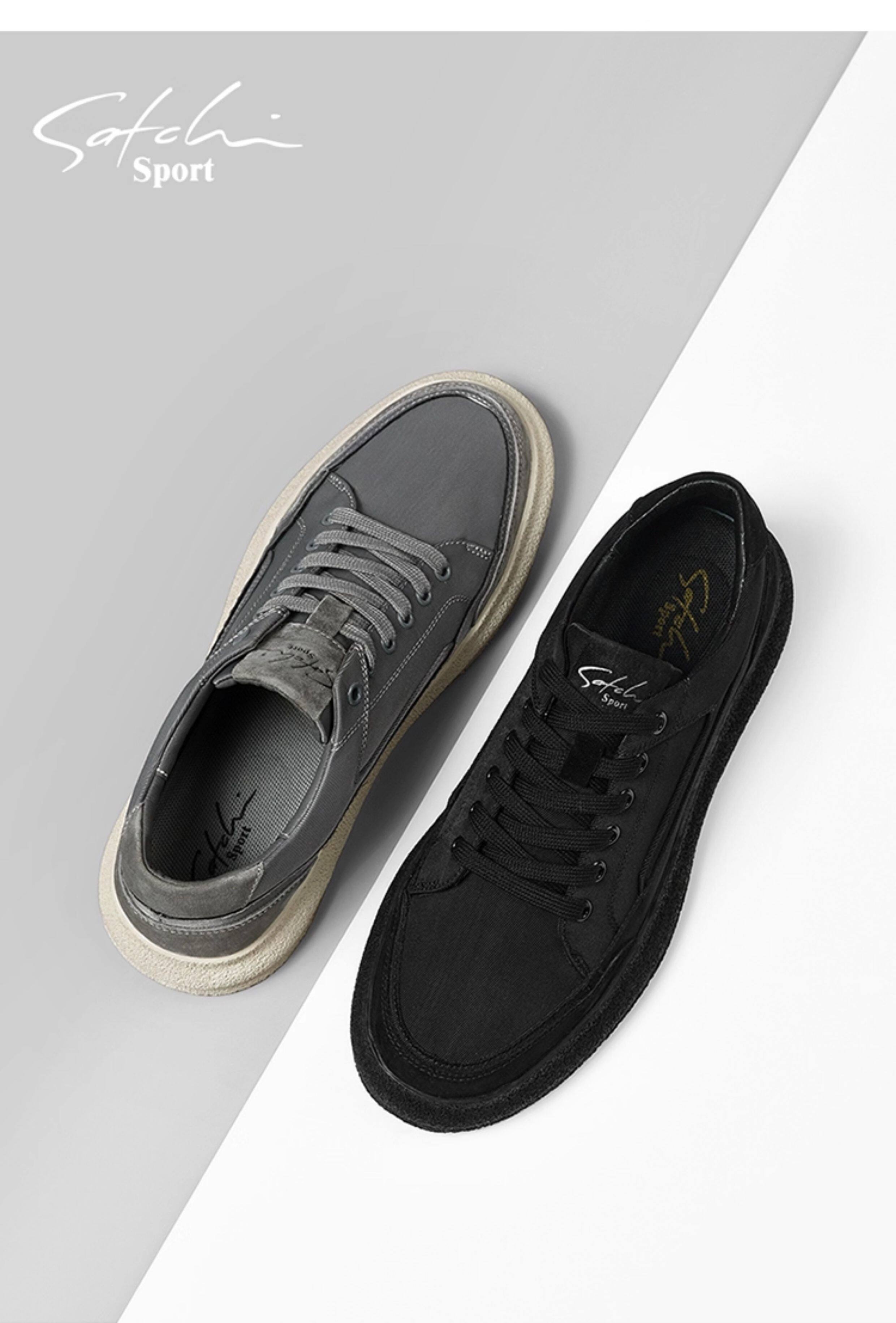 Sachi Men's Shoes Autumn 2025 New Genuine Canvas Shoes New Versatile Trendy Youth Black Casual Sneakers