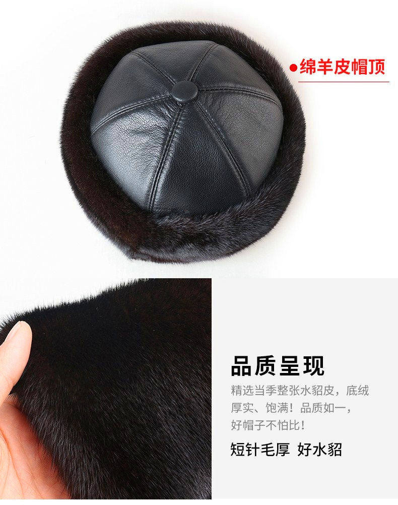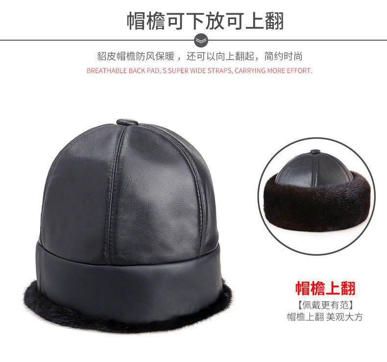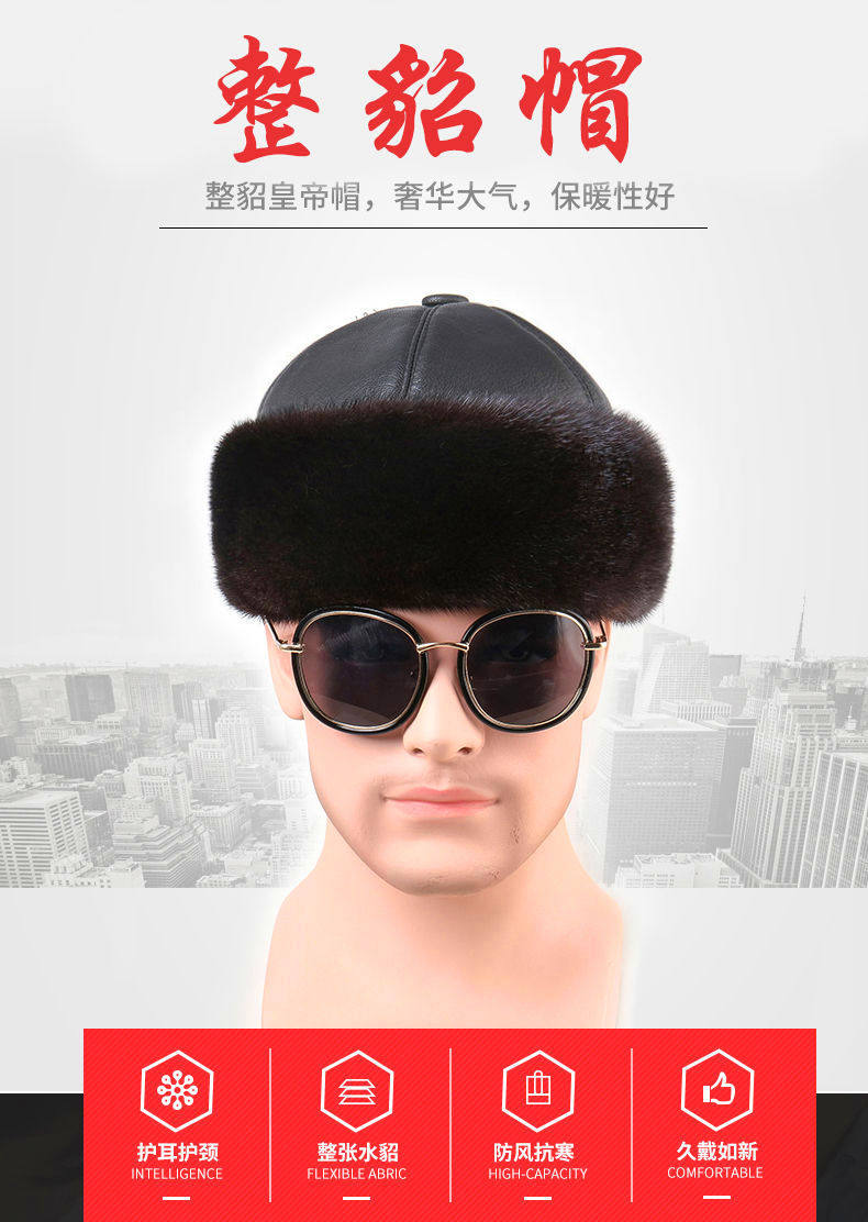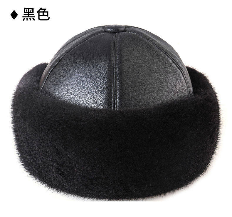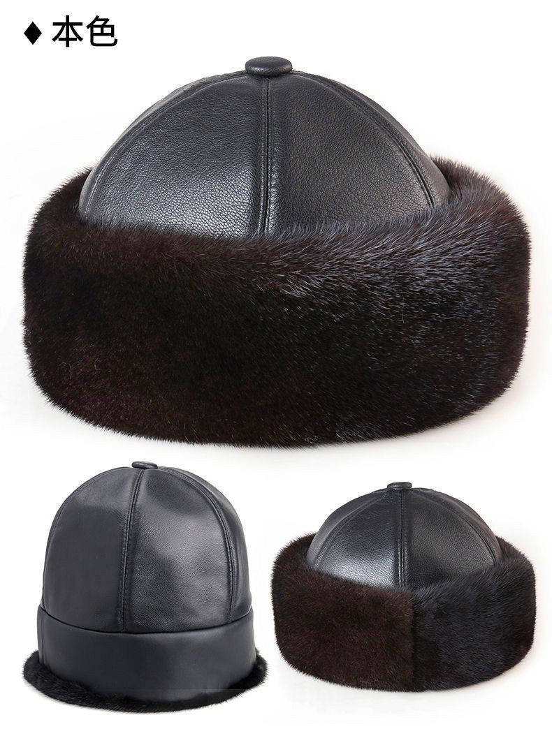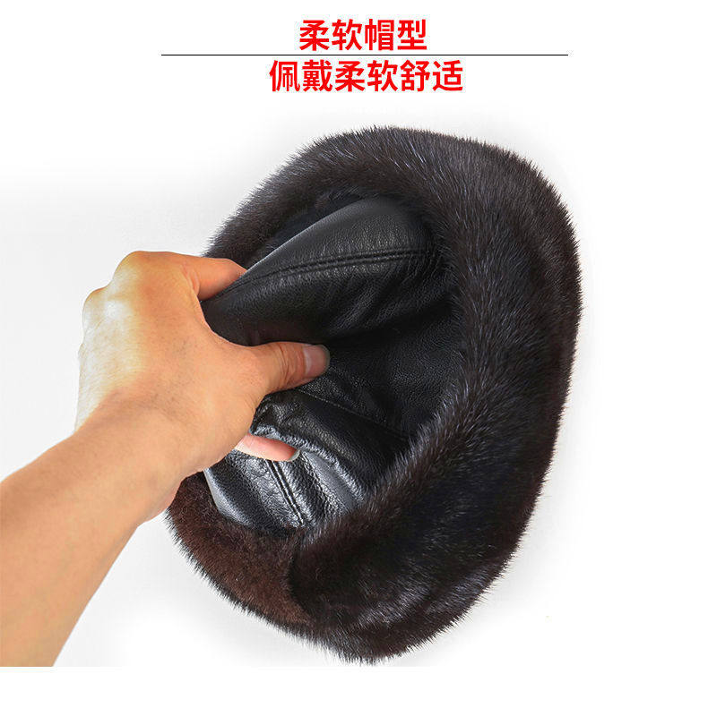 Mink Fur Hat for Men, Middle-Aged and Elderly, Landlord Hat, Winter Ear-Protecting Mink Fur Emperor Hat, Fur Sheepskin Whole Mink Cotton Hat