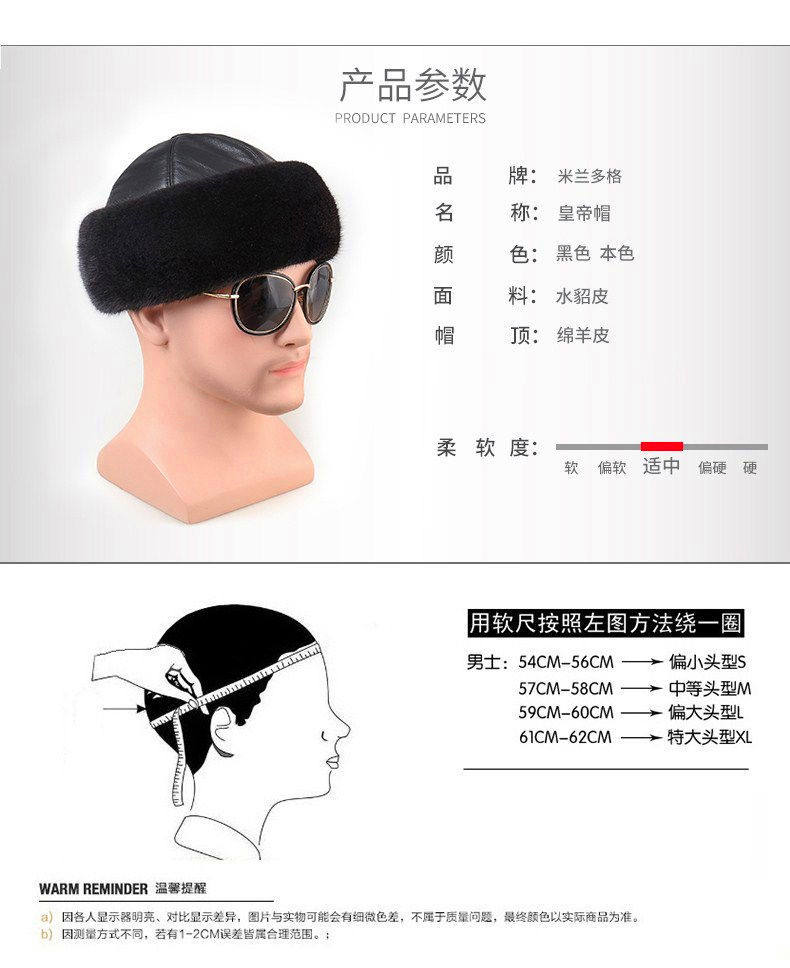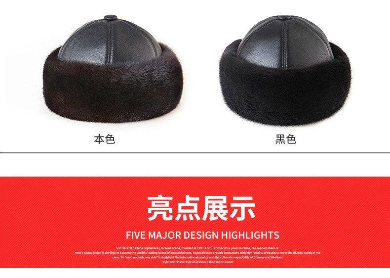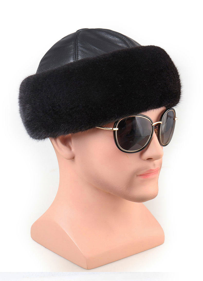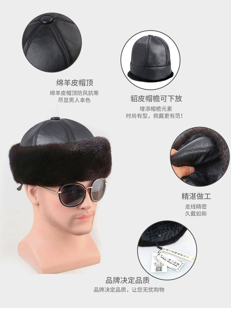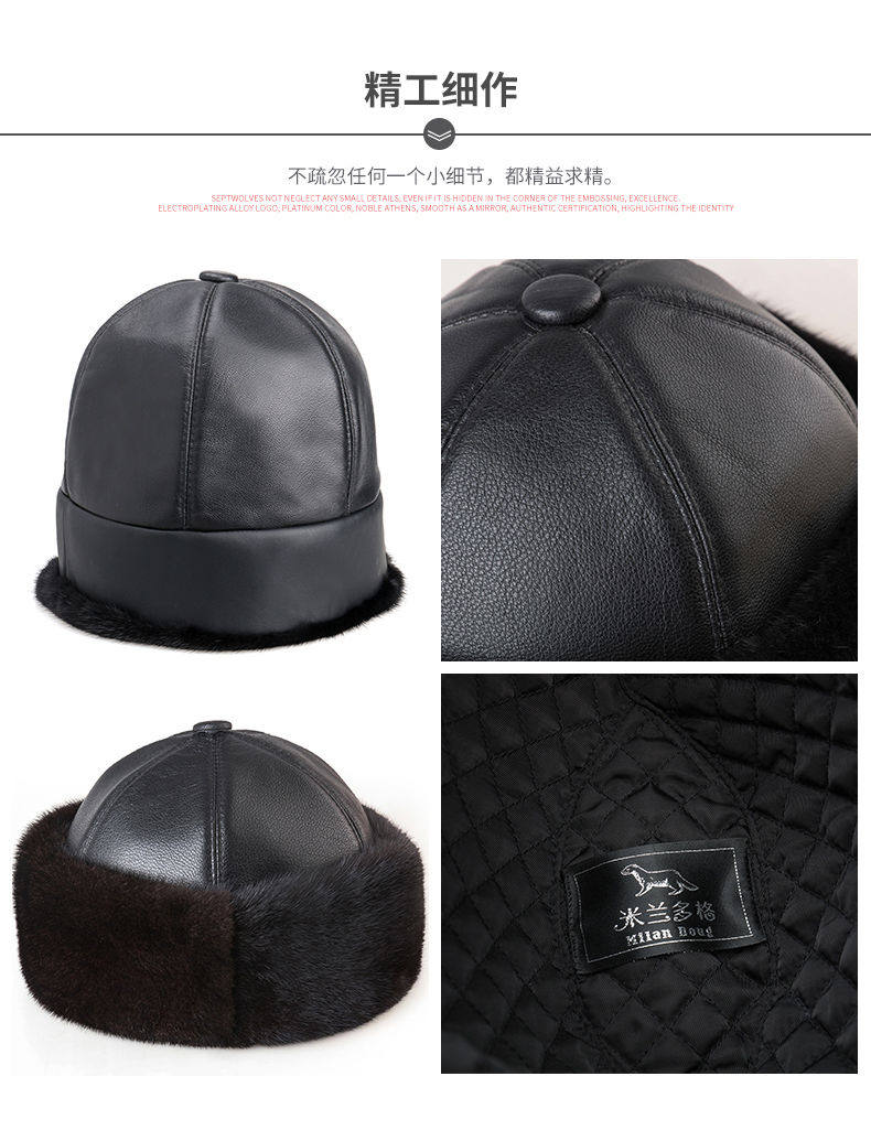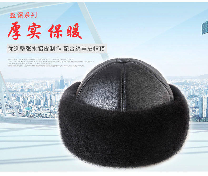 Mink Fur Hat for Men, Middle-Aged and Elderly, Landlord Hat, Winter Ear-Protecting Mink Fur Emperor Hat, Fur Sheepskin Whole Mink Cotton Hat