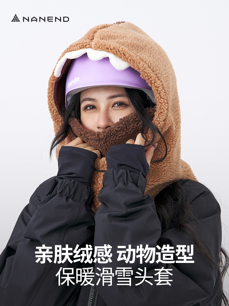 Nandn Nanen Ski Headgear Women's Plush Helmet Cover Cute Warm Windproof Cycling Face Mask Men's Snowboard
