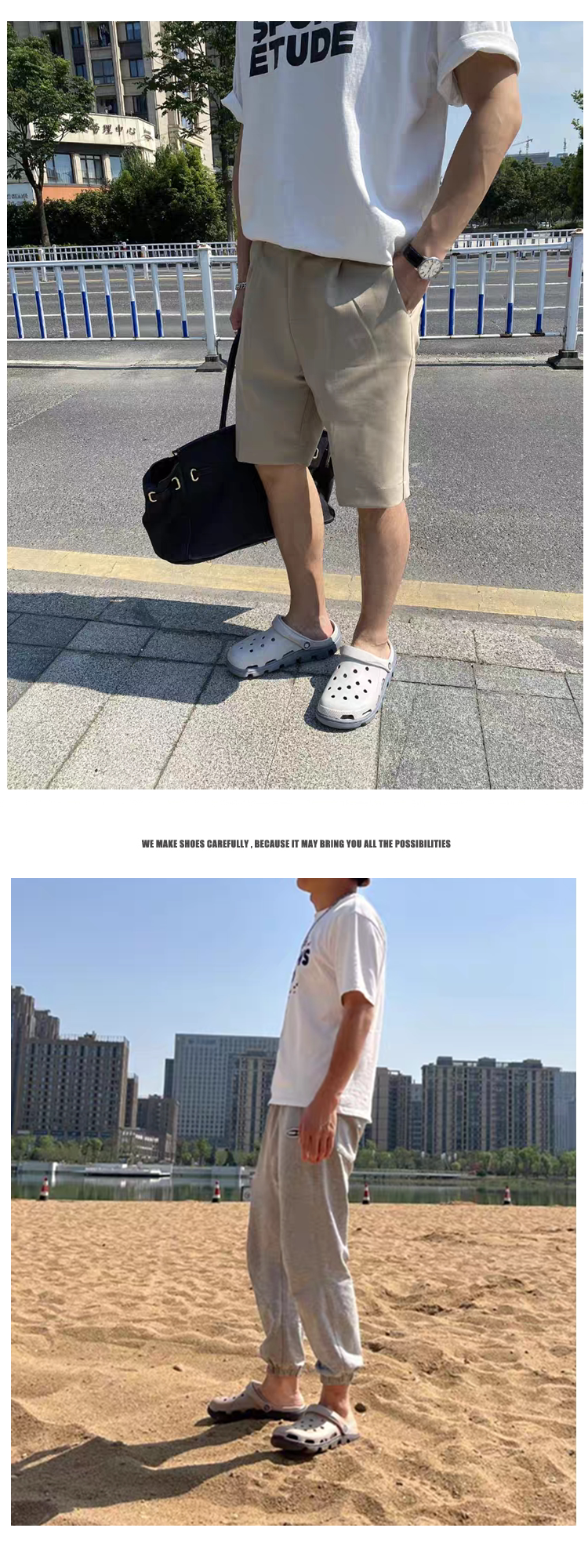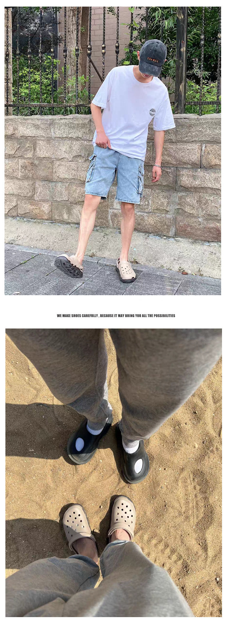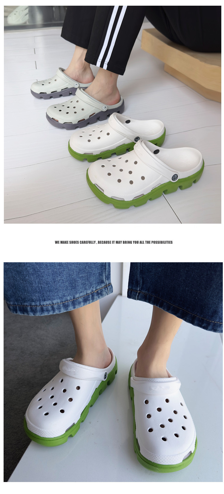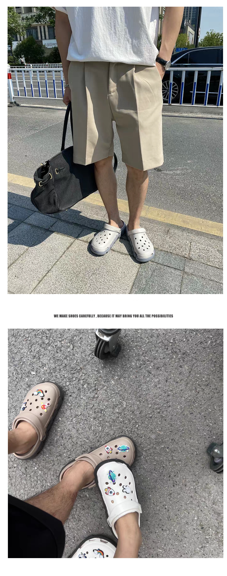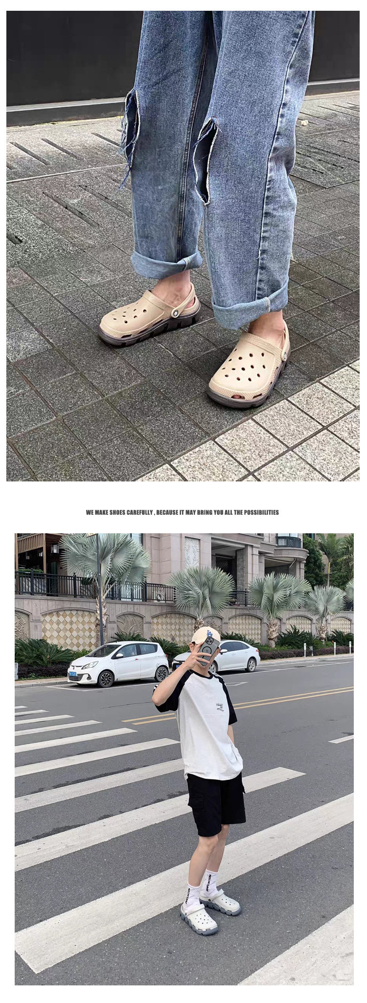 Croc Shoes Men's 2024 New Summer Outer Slippers Women's Non-Slip Thick-Soled Beach Shoes Soft-Soled Couple's Toe-Cap Sandals
