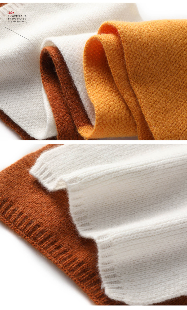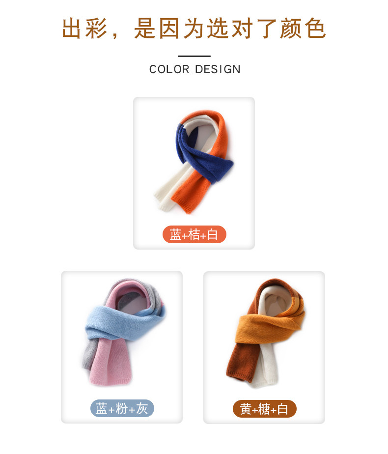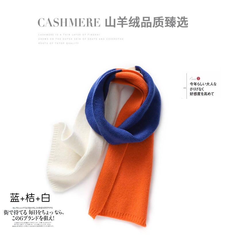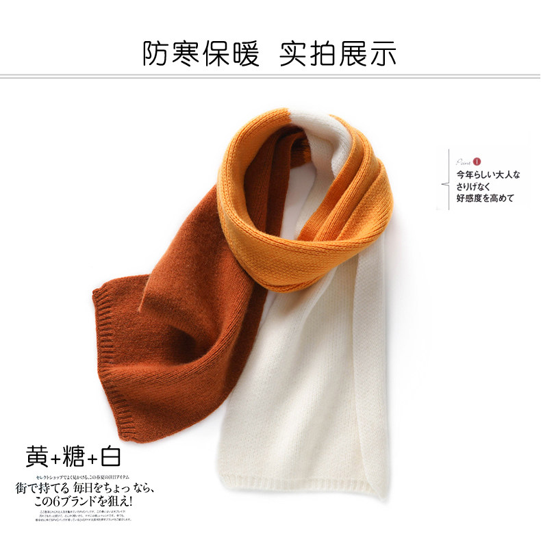 Autumn and Winter Cashmere Knitted Small Scarf for Women, Short Style, Color-Blocking, Cute, Warm Neck Protection, Versatile Wool Neck Warmer