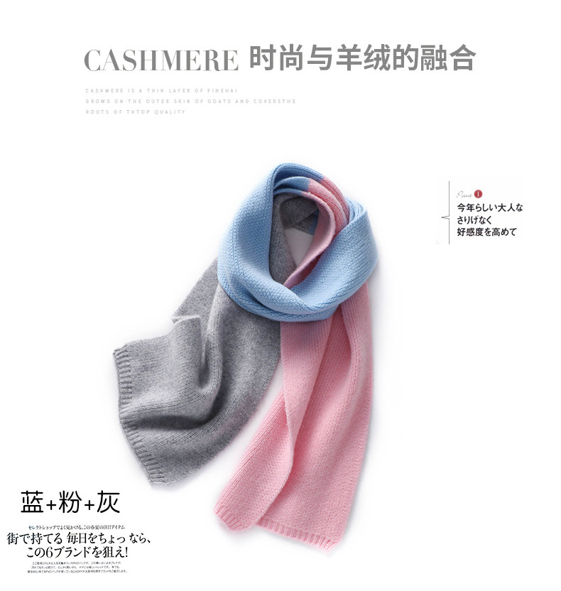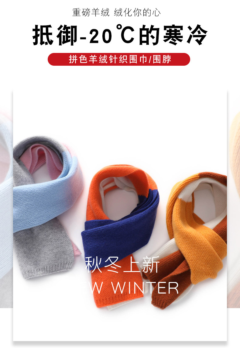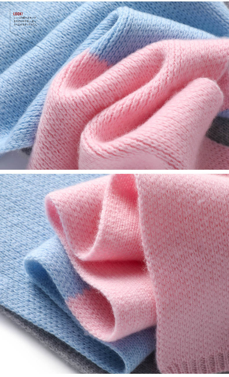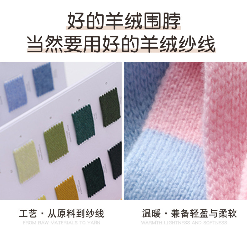 Autumn and Winter Cashmere Knitted Small Scarf for Women, Short Style, Color-Blocking, Cute, Warm Neck Protection, Versatile Wool Neck Warmer