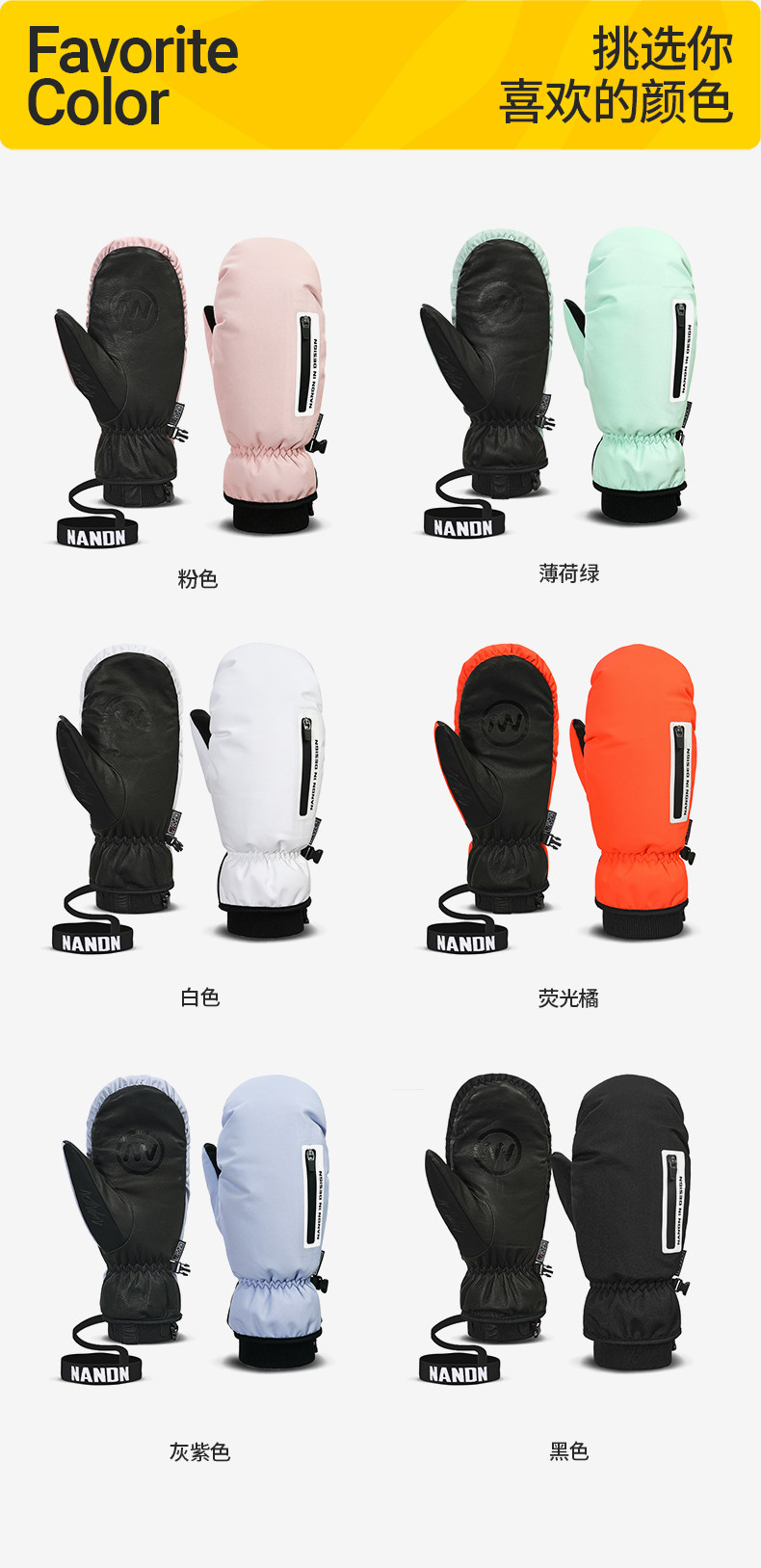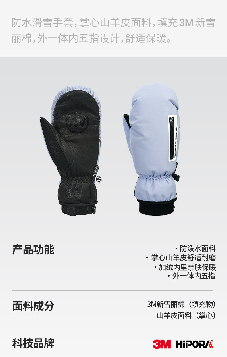 Nandn Ski Gloves for Women, Single and Double Board, Waterproof, Wear-Resistant, Split-Finger, Warm, Breathable Gloves for Men