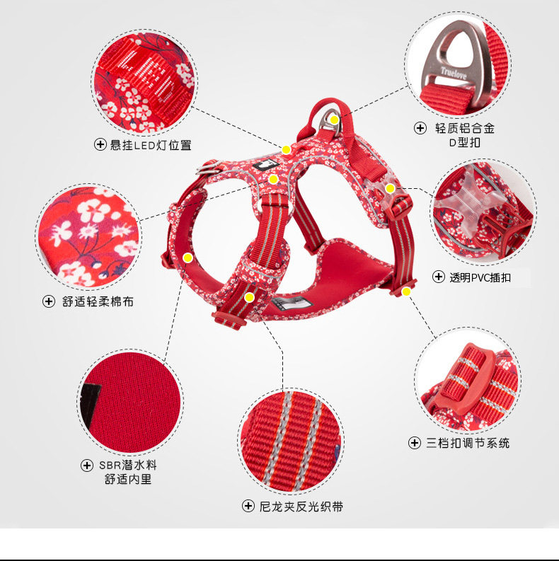 Truelove dog leash suit vest style dog walking rope small, medium and large dog harness golden retriever