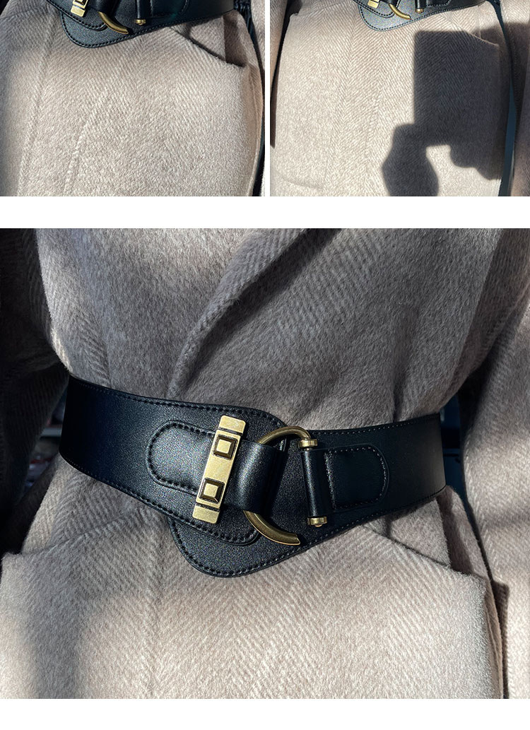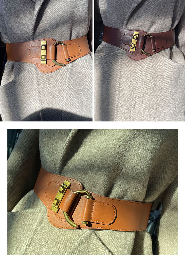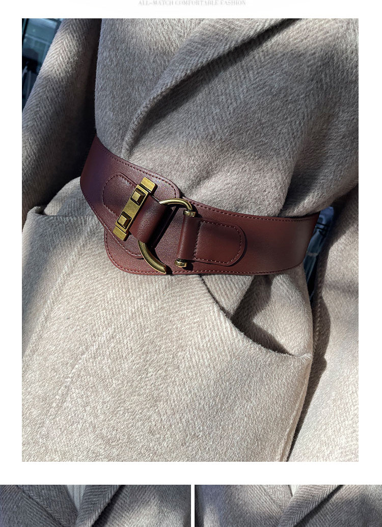 Burgundy Genuine Leather Wide Belt for Women, Decorative Accessory for Trench Coats, Sweaters, Blazers, Fashionable and Versatile Waist Belt