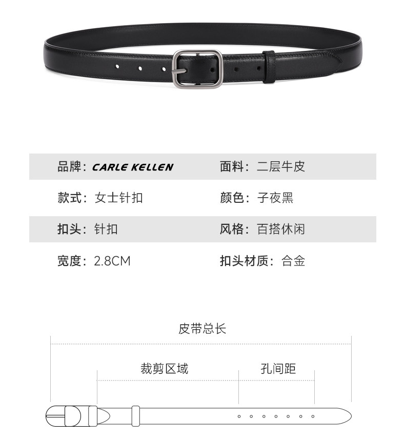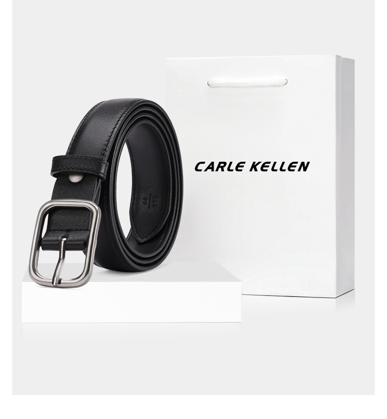 Carlekellen Women's Genuine Leather Fashion Versatile Black Belt Trendy Decorative Belt for Jeans
