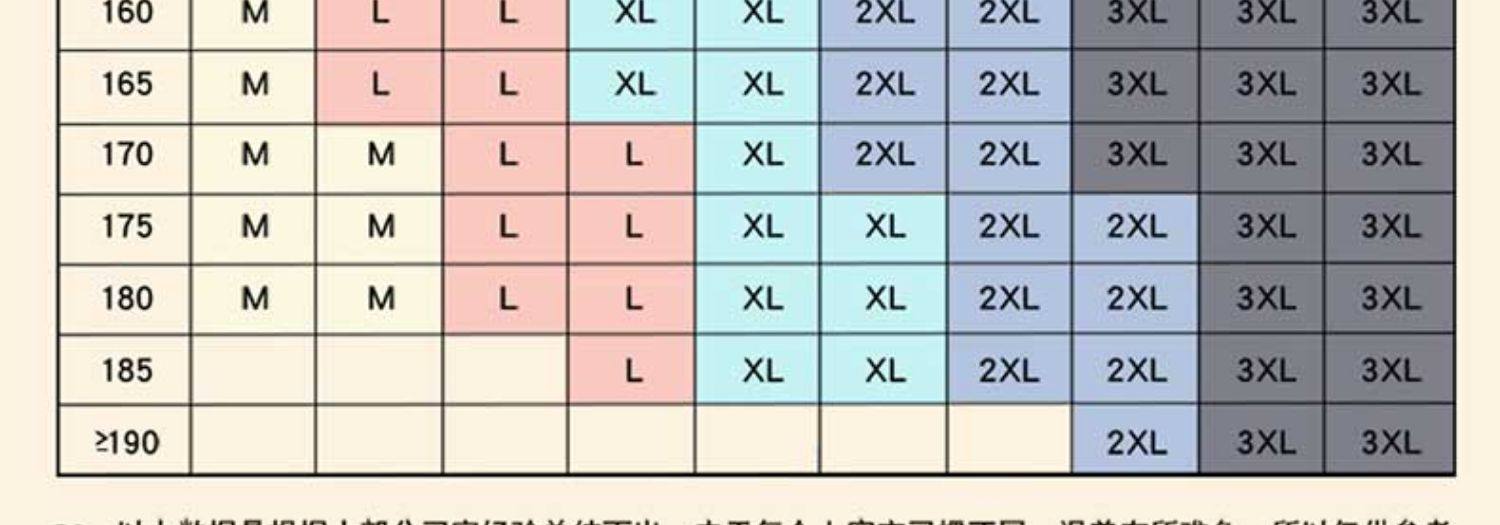 Size 165(m),170 (L),175 (XL),180 (XXL),185(XXXL)