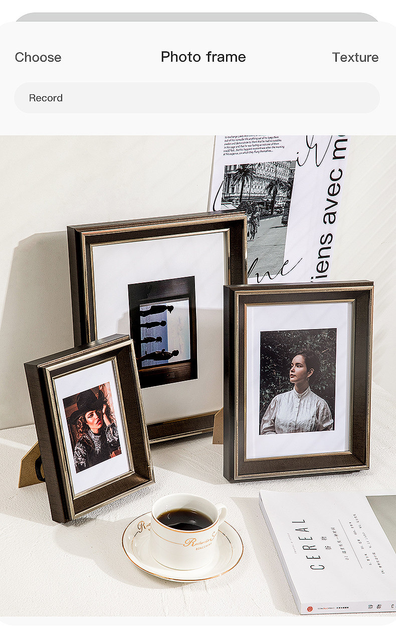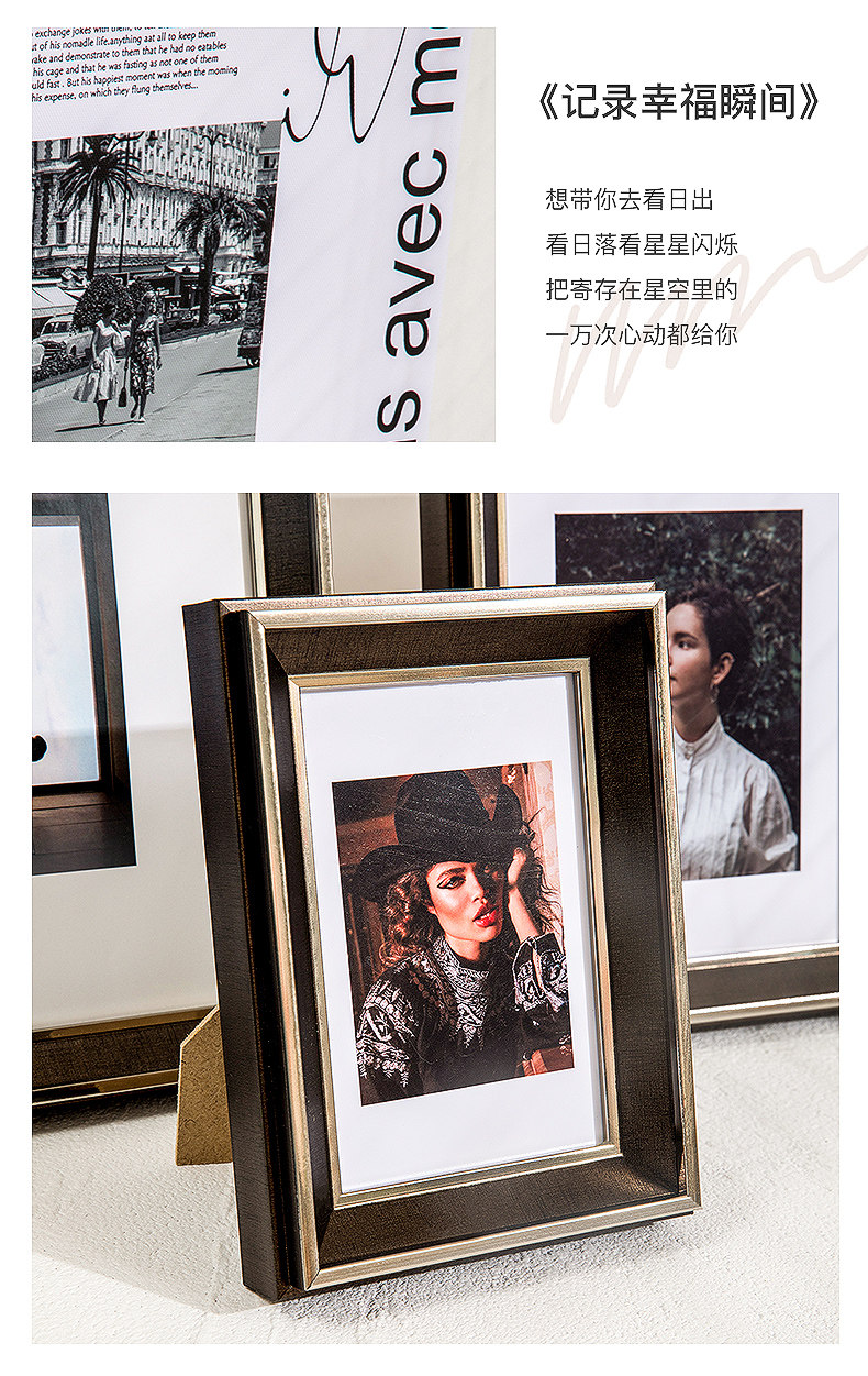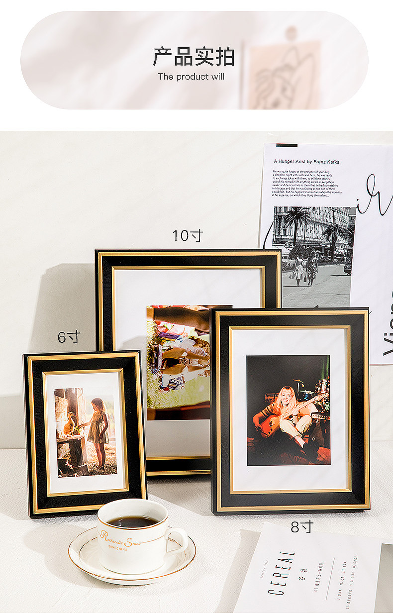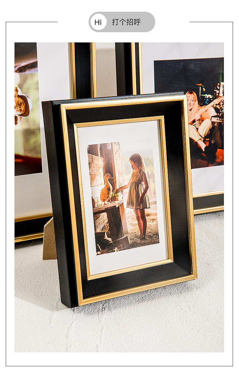 American-Style Light Luxury Black Gold Photo Frame Display Stand with a High-End Feel, 6, 7, 8, 10, 12 Inch Children's Photo Album, Photo Printing Frame, Wall Hanging