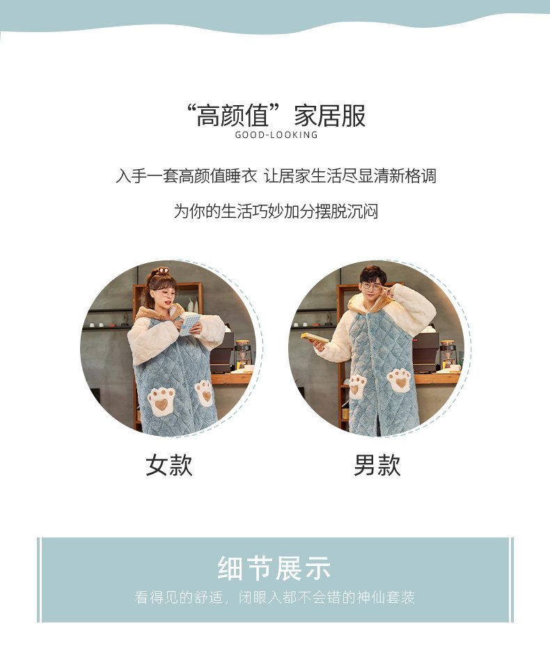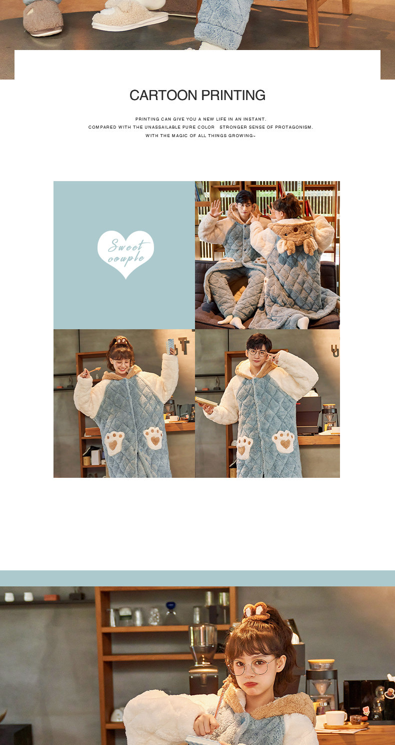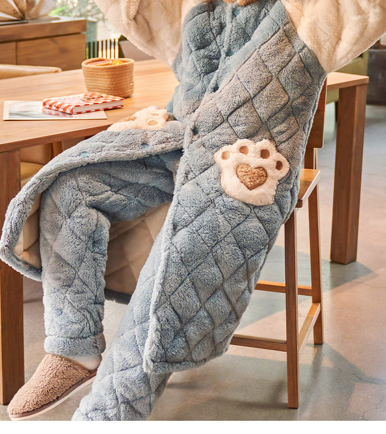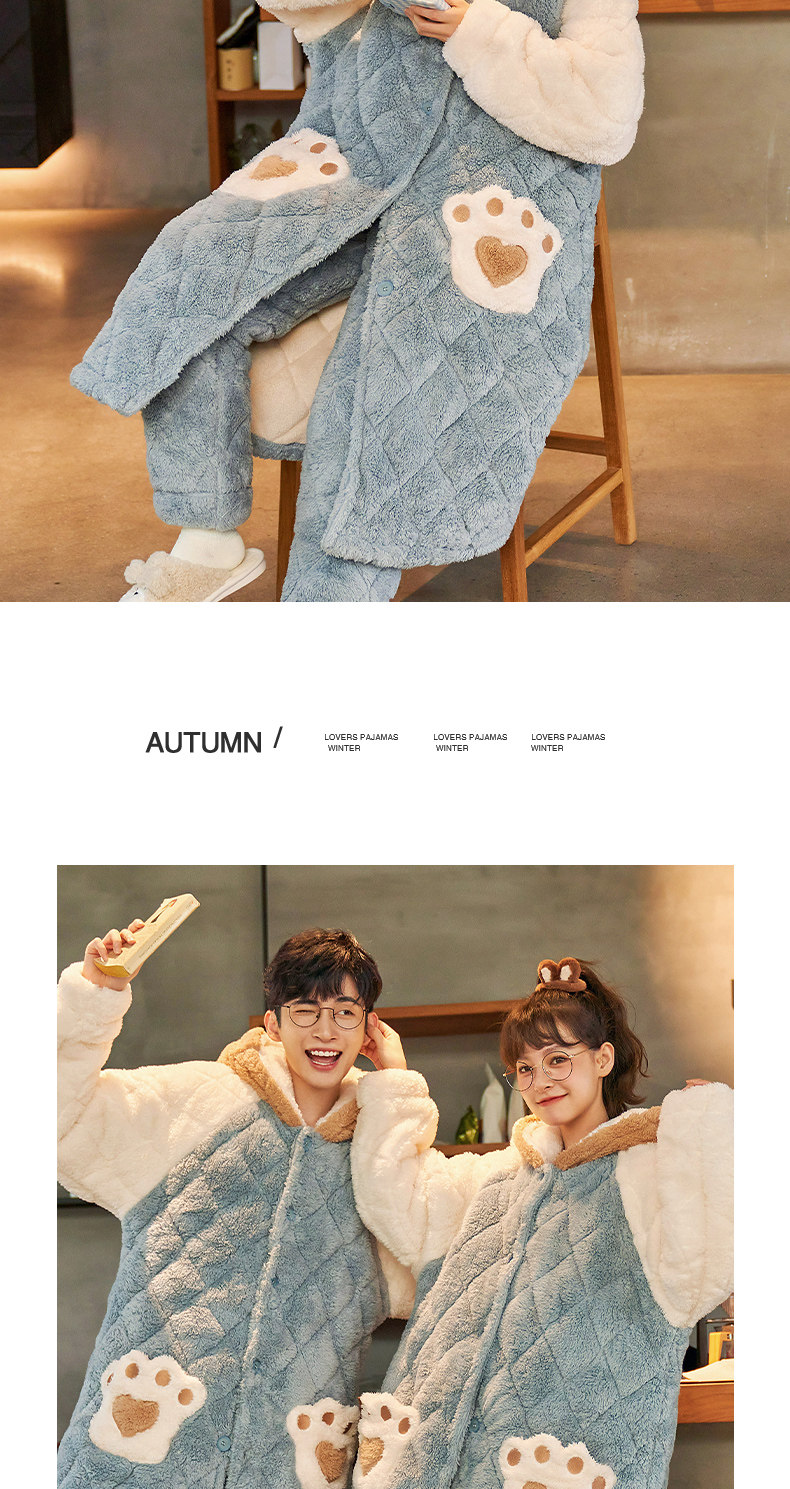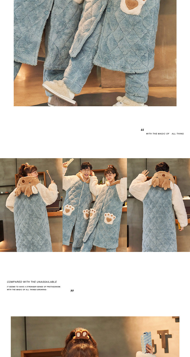 Couple's Pajamas for Women in Autumn and Winter, Men's Coral Velvet Three-Layer Quilted Pajamas, Fleece-Lined and Thickened Flannel Style Home Wear