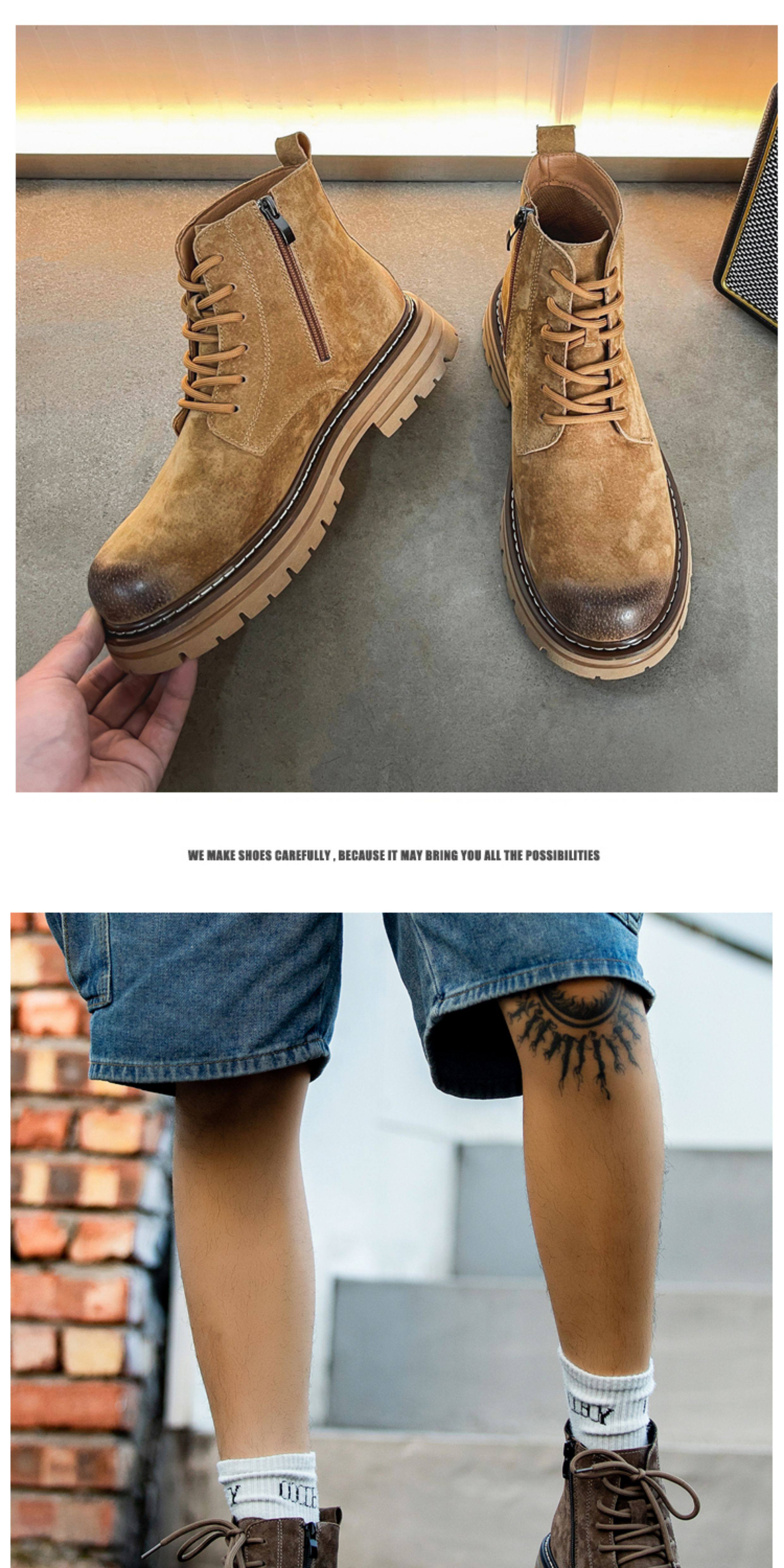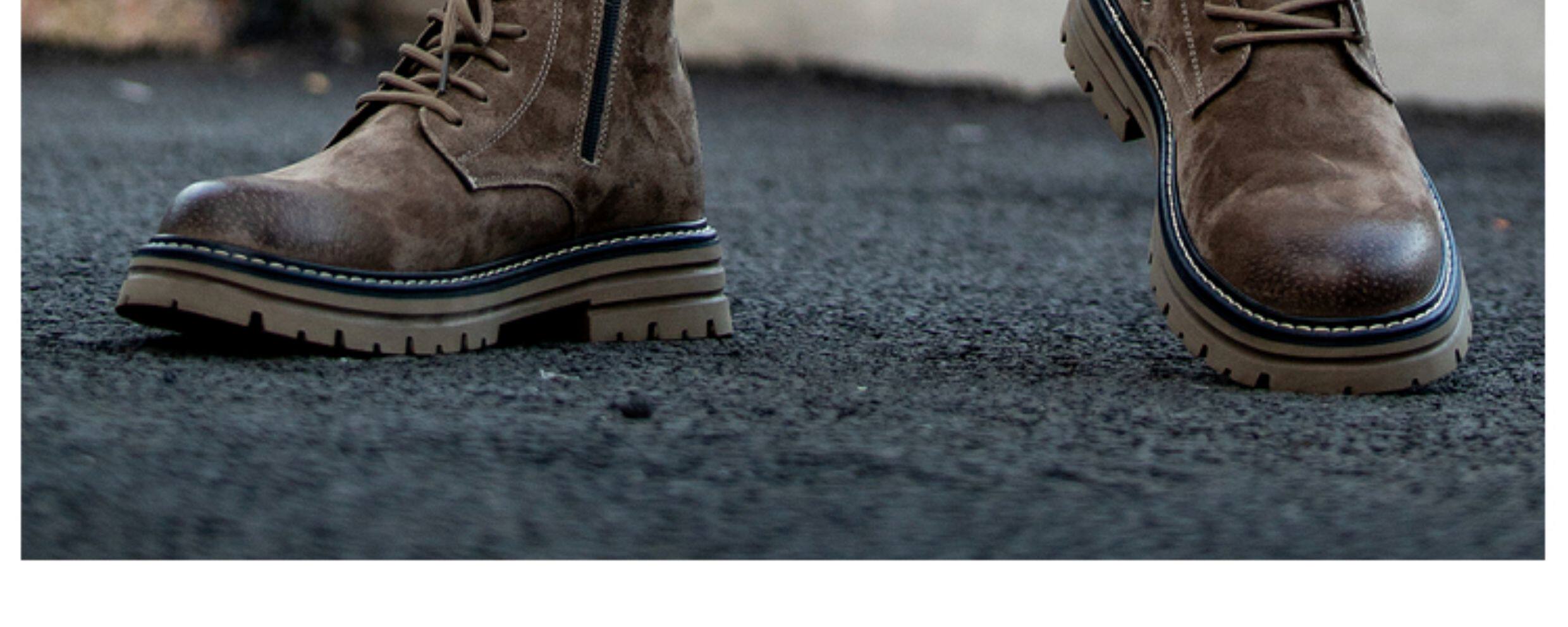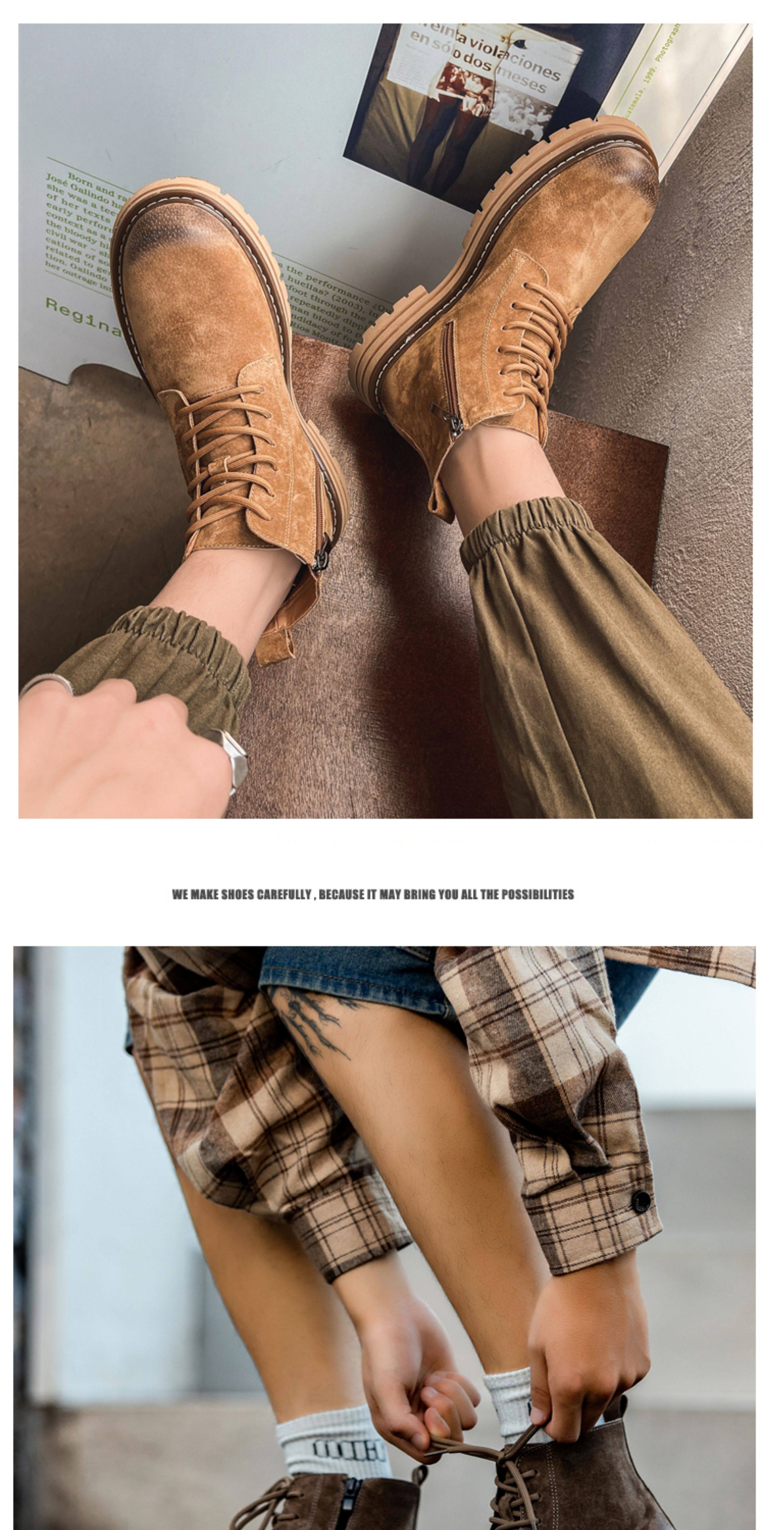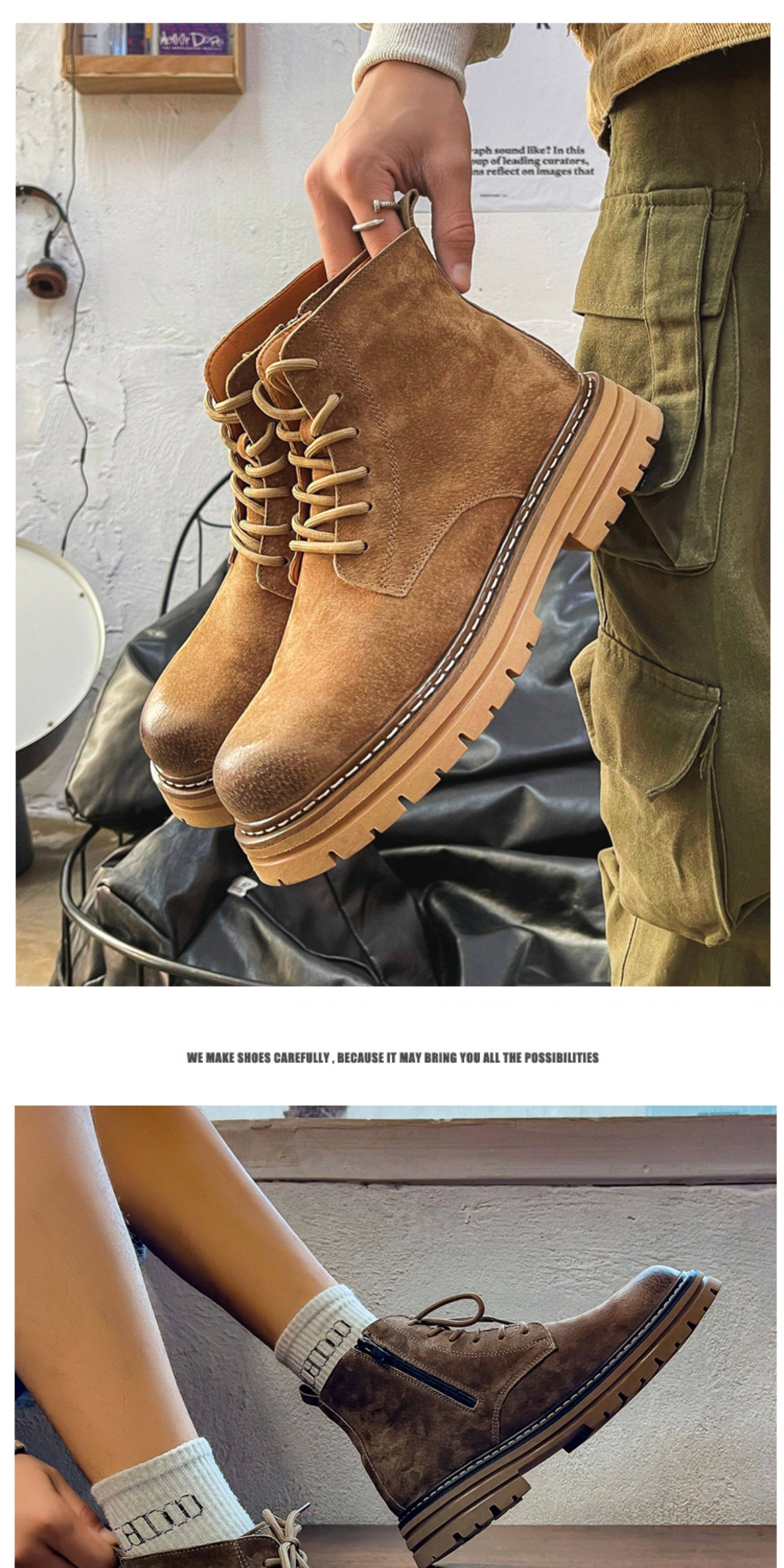 Martin Boots for Men, Winter Fleece-Lined High-Top Shoes, Genuine Leather Casual Retro Short Boots, Mid-Top British Style Thick-Soled Work Boots