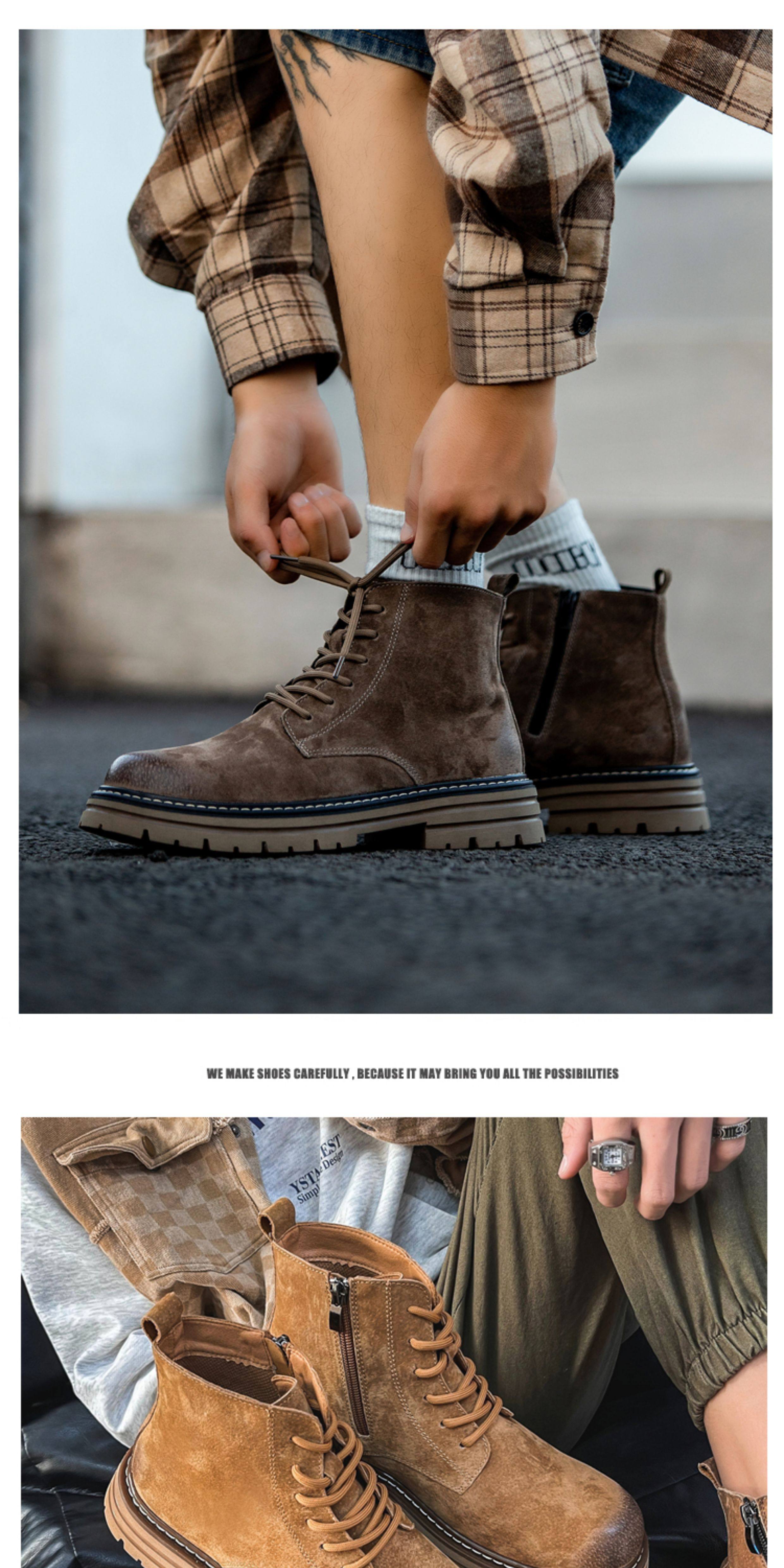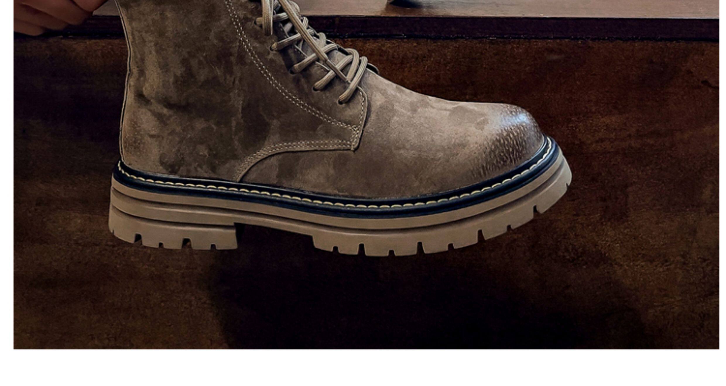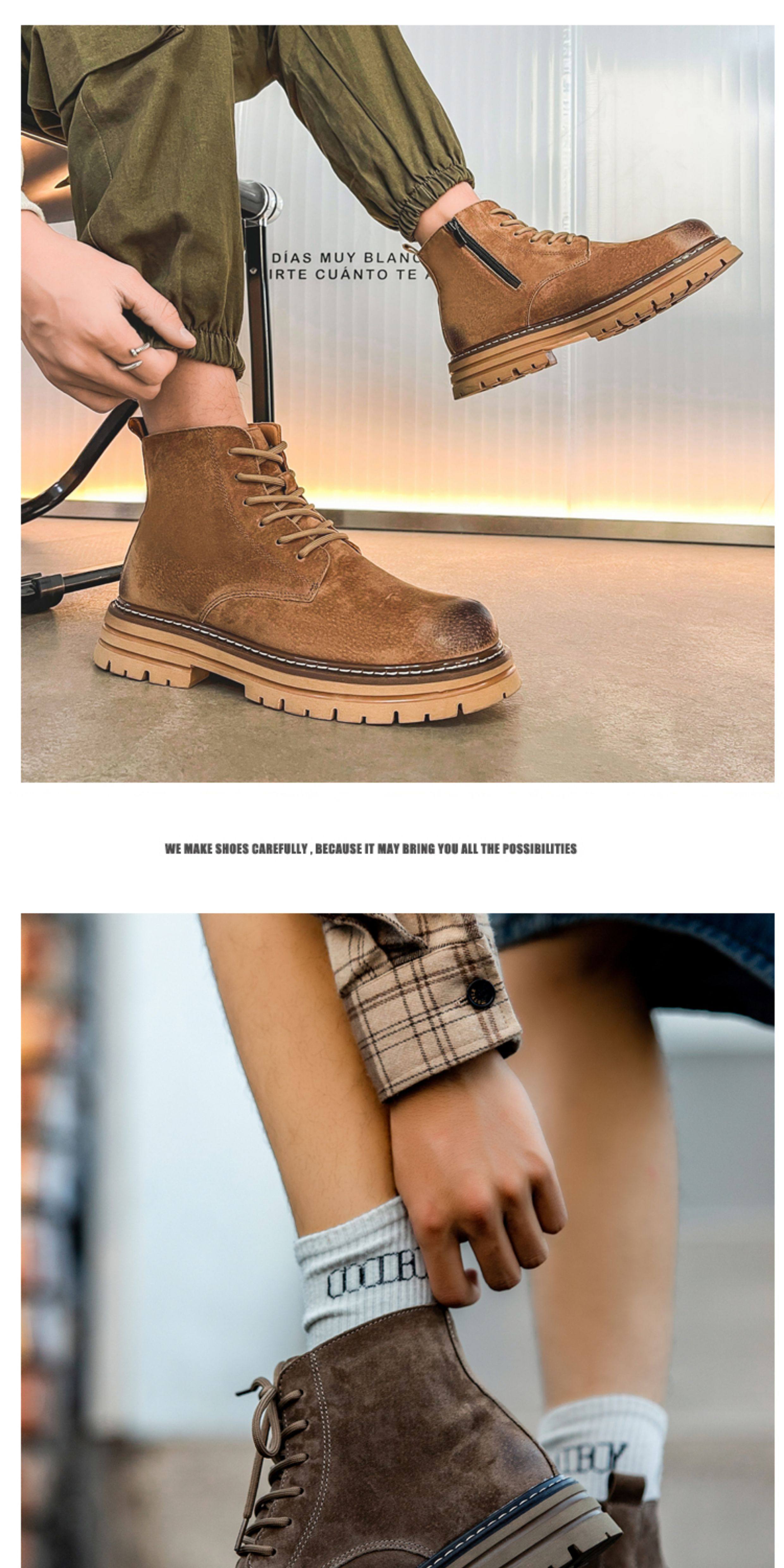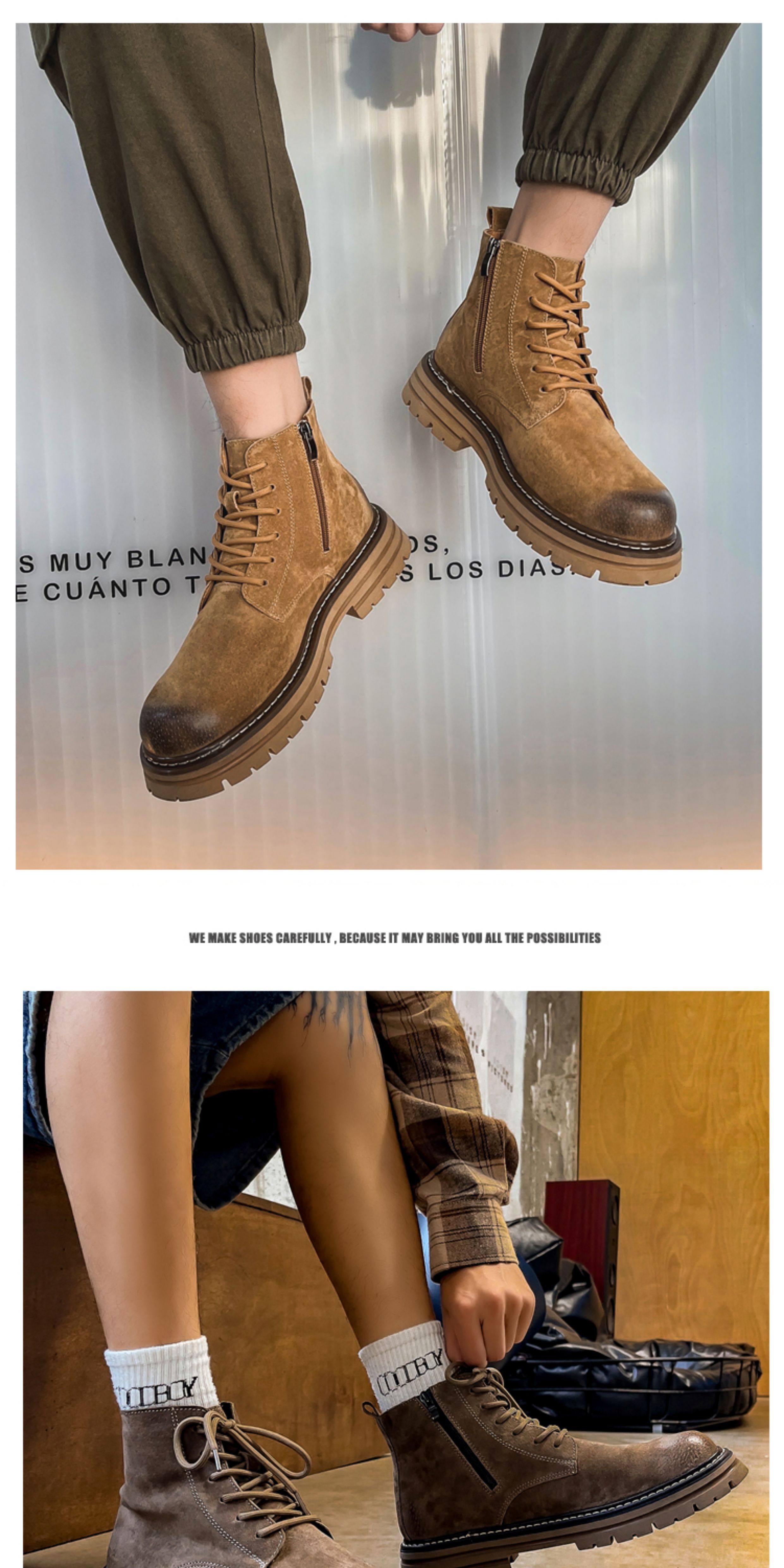 Martin Boots for Men, Winter Fleece-Lined High-Top Shoes, Genuine Leather Casual Retro Short Boots, Mid-Top British Style Thick-Soled Work Boots