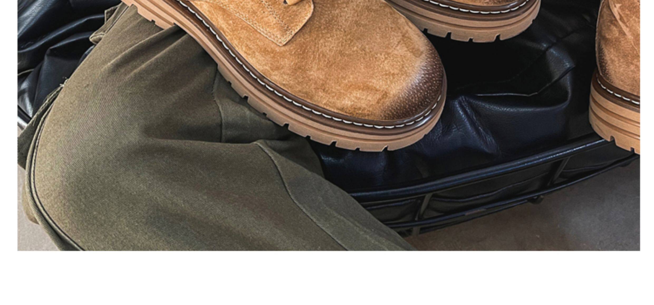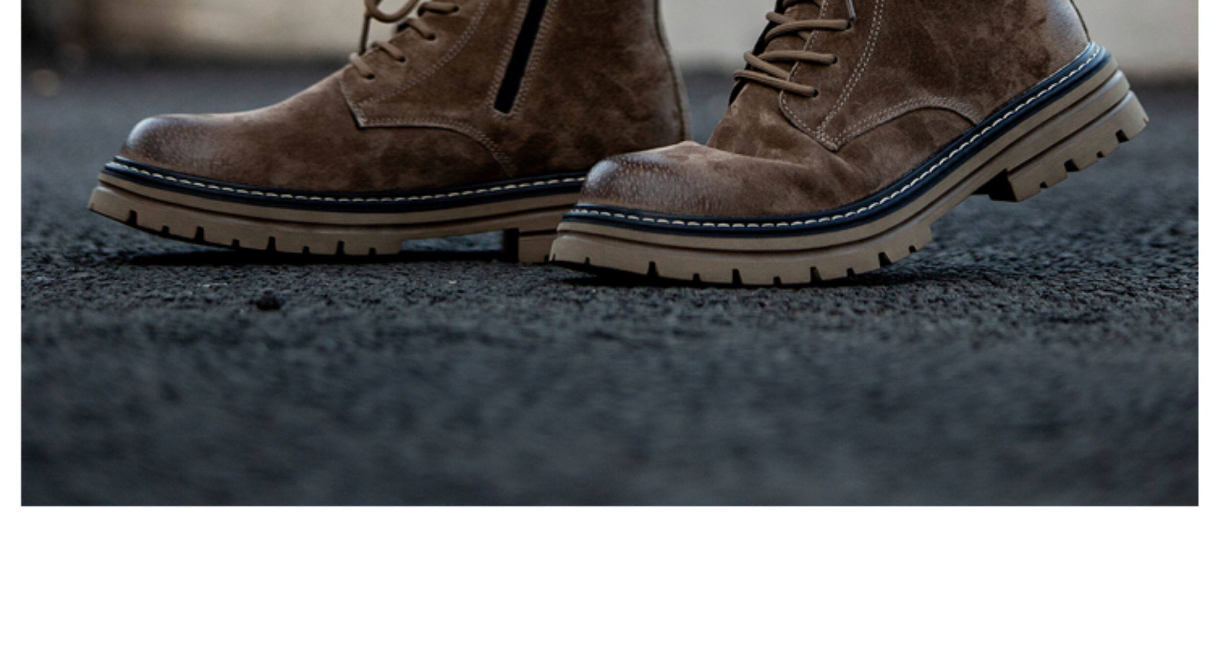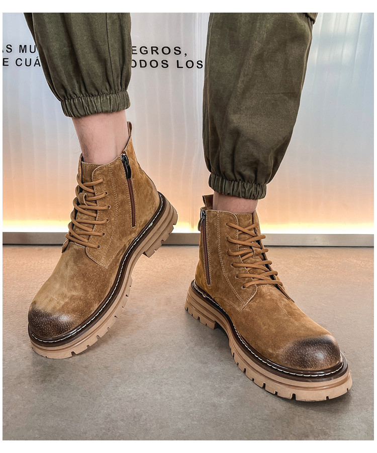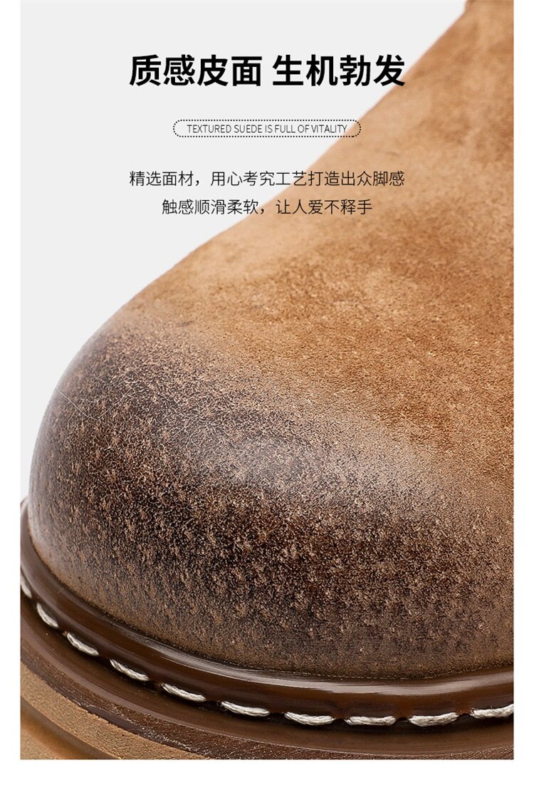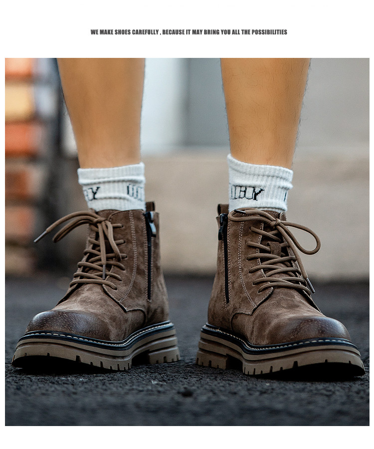 Martin Boots for Men, Winter Fleece-Lined High-Top Shoes, Genuine Leather Casual Retro Short Boots, Mid-Top British Style Thick-Soled Work Boots