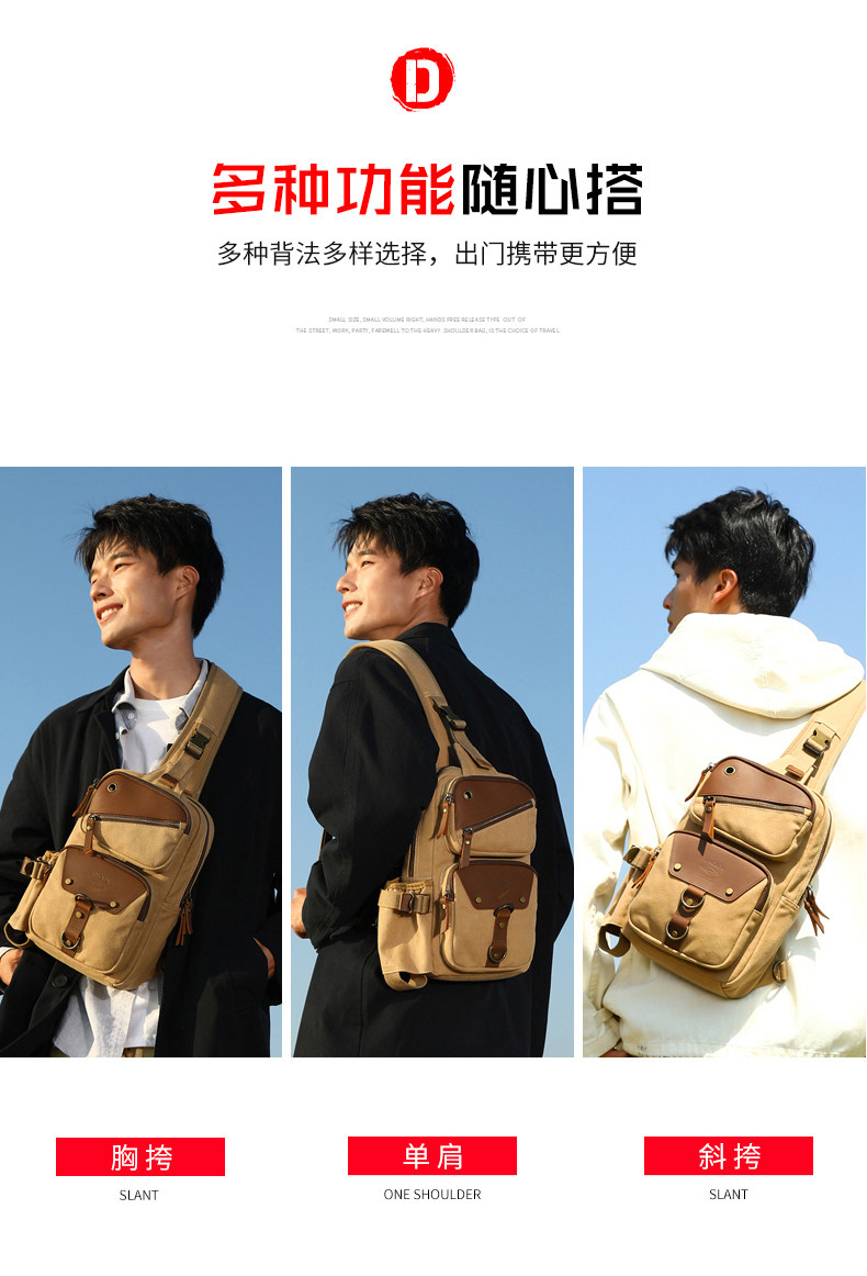2025 New Chest Bag Fashionable Multifunctional Waist Bag Travel Men's Crossbody Bag Canvas Shoulder Bag Men's Bag Women