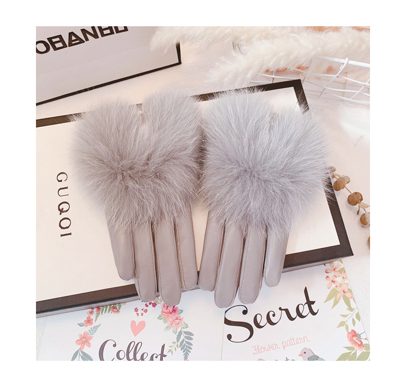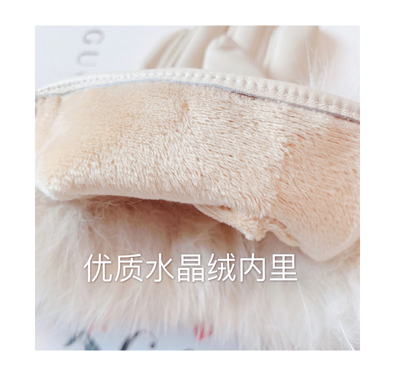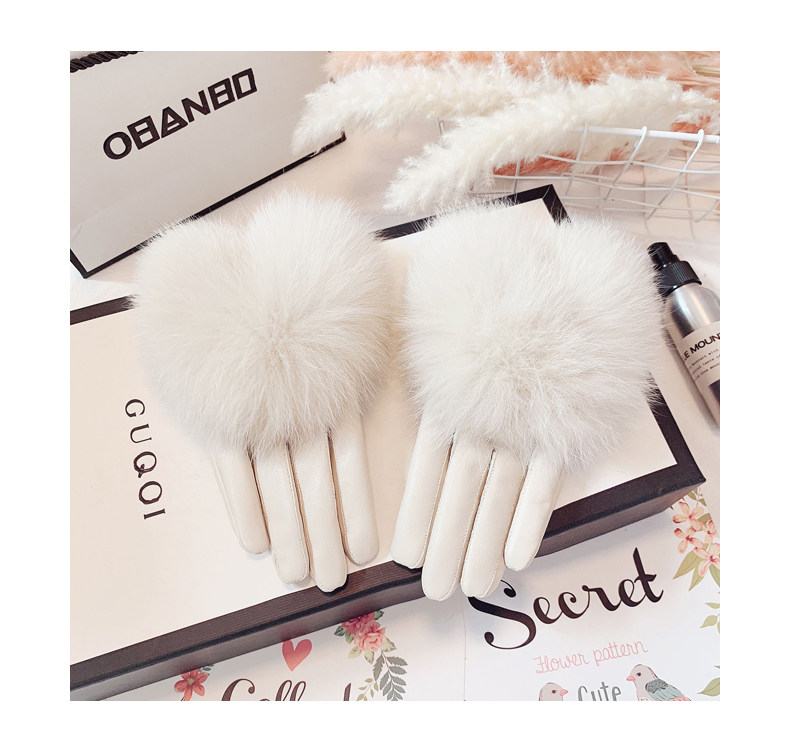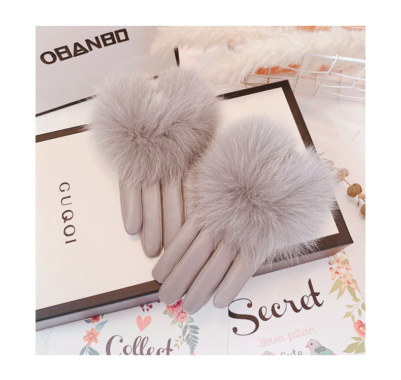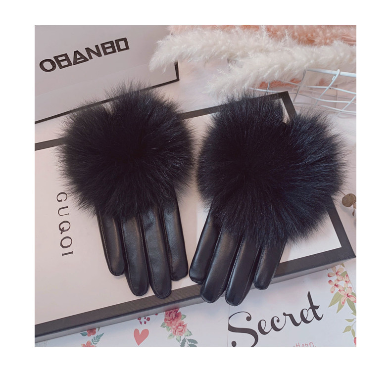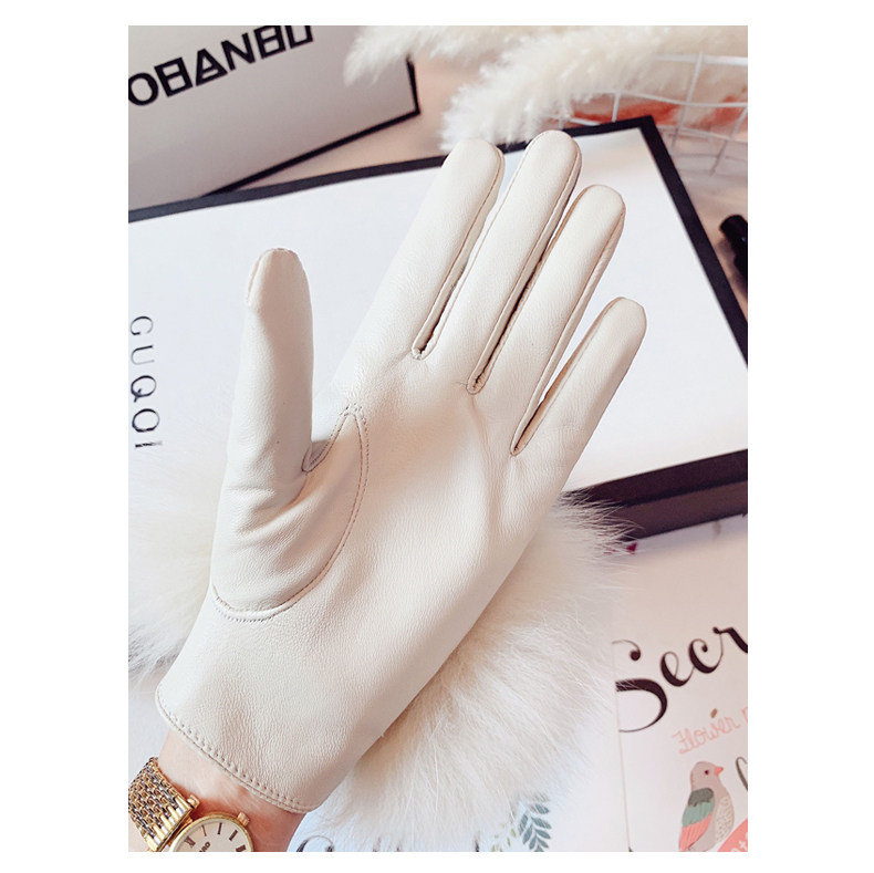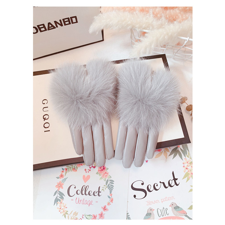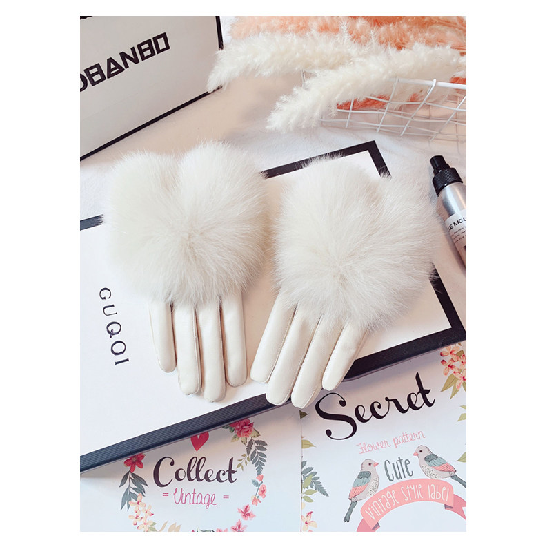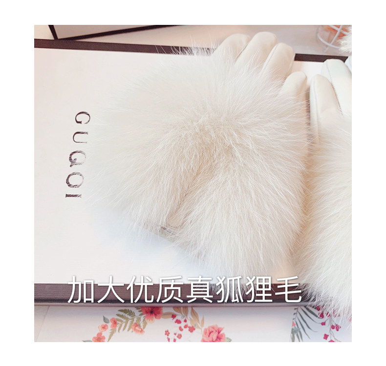 Hong Kong Bng Genuine Leather Gloves for Women Winter Goatskin Fleece-Lined Thickeneded Cold-Proof and Warm Fox Fur Touch Screen Driving Short Style