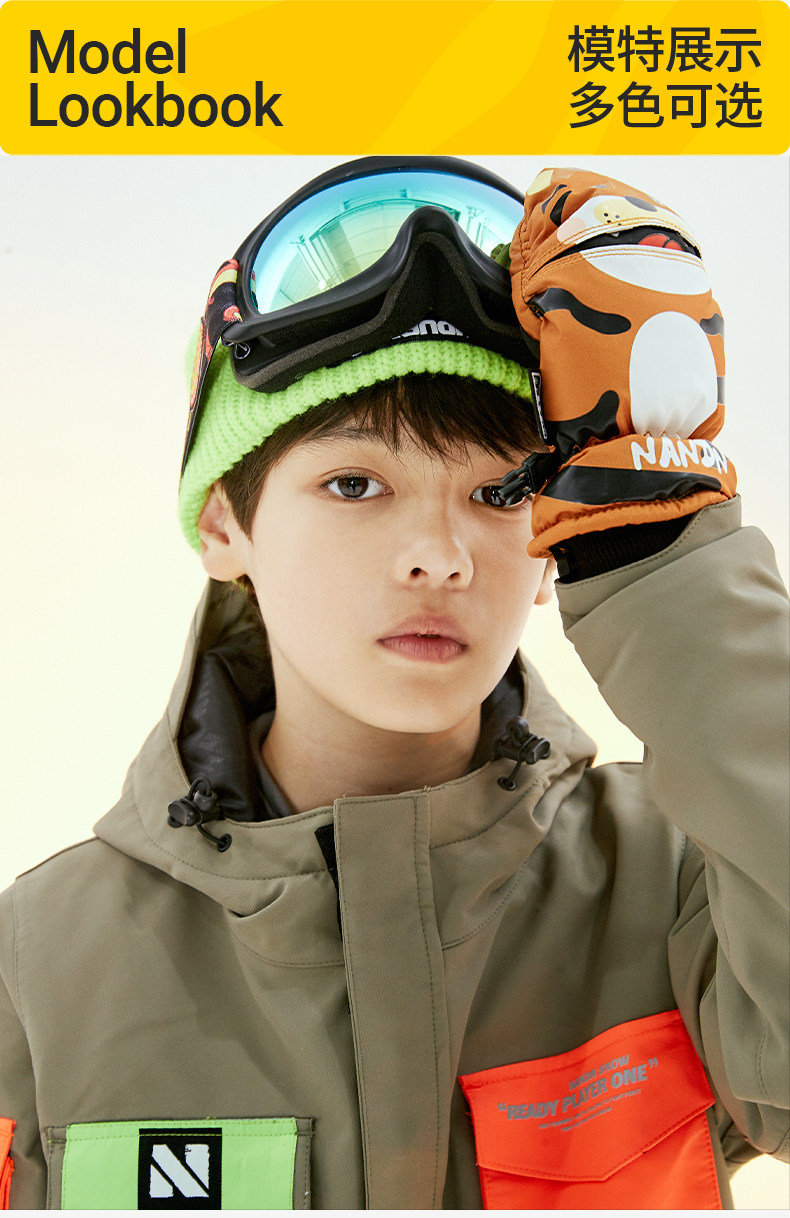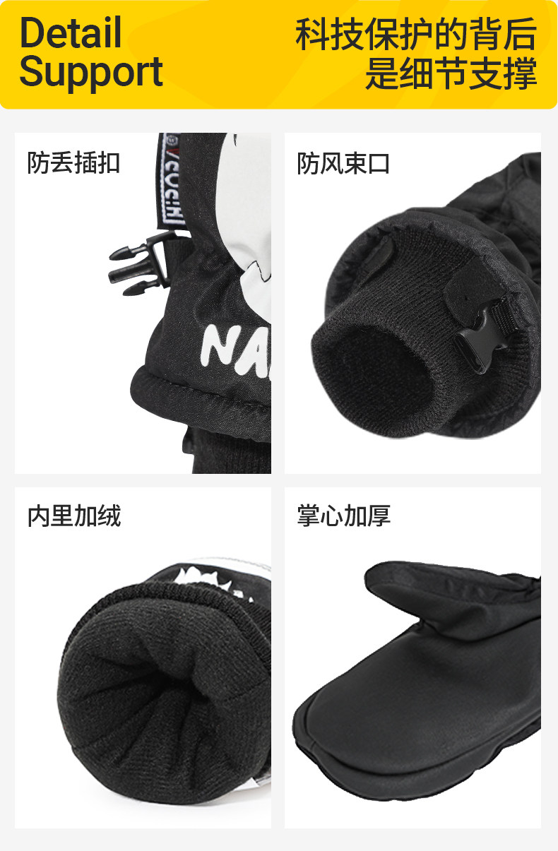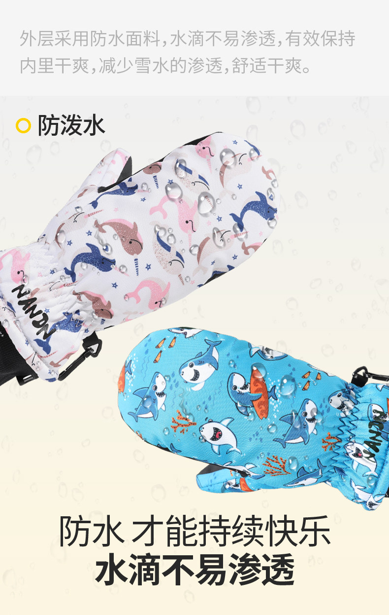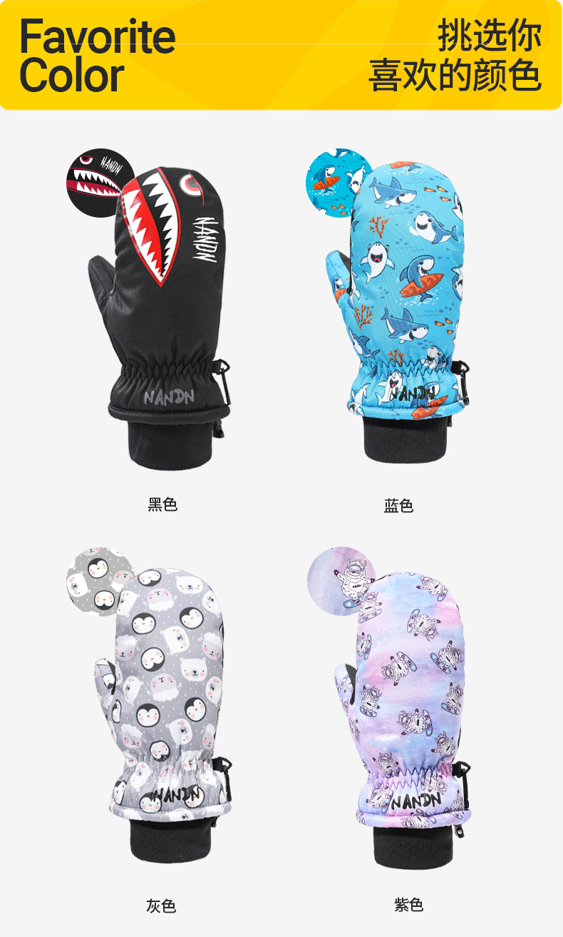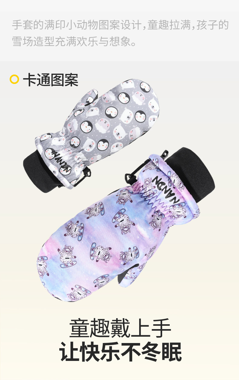 Nandn Nanen Children's Ski Gloves, Waterproof, Wear-Resistant, Warm, Thick Cartoon Winter Gloves for Boys and Girls