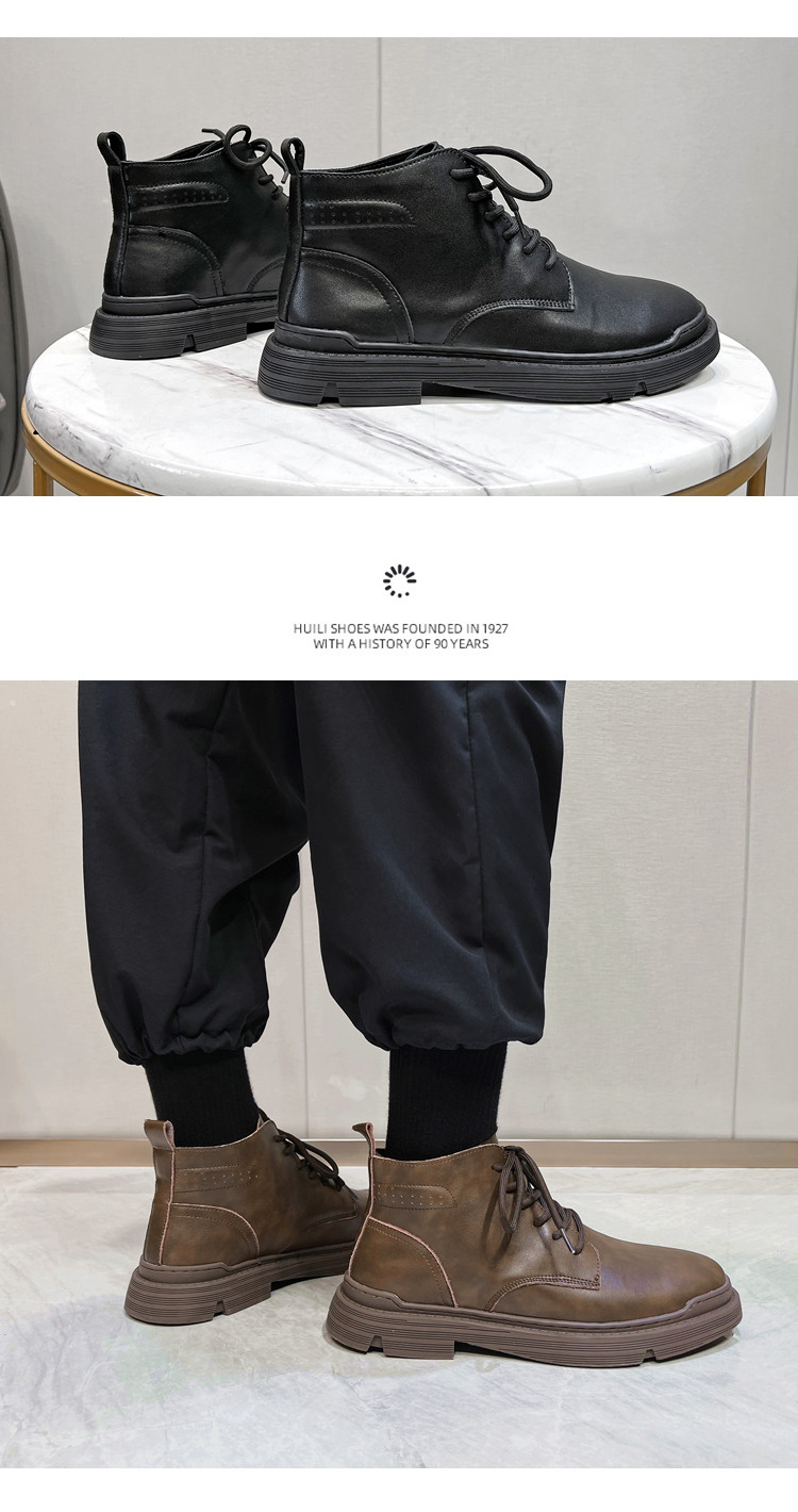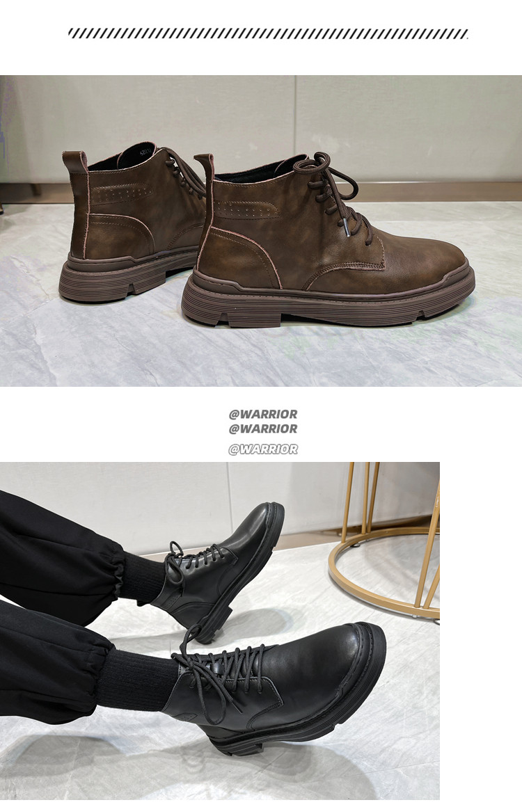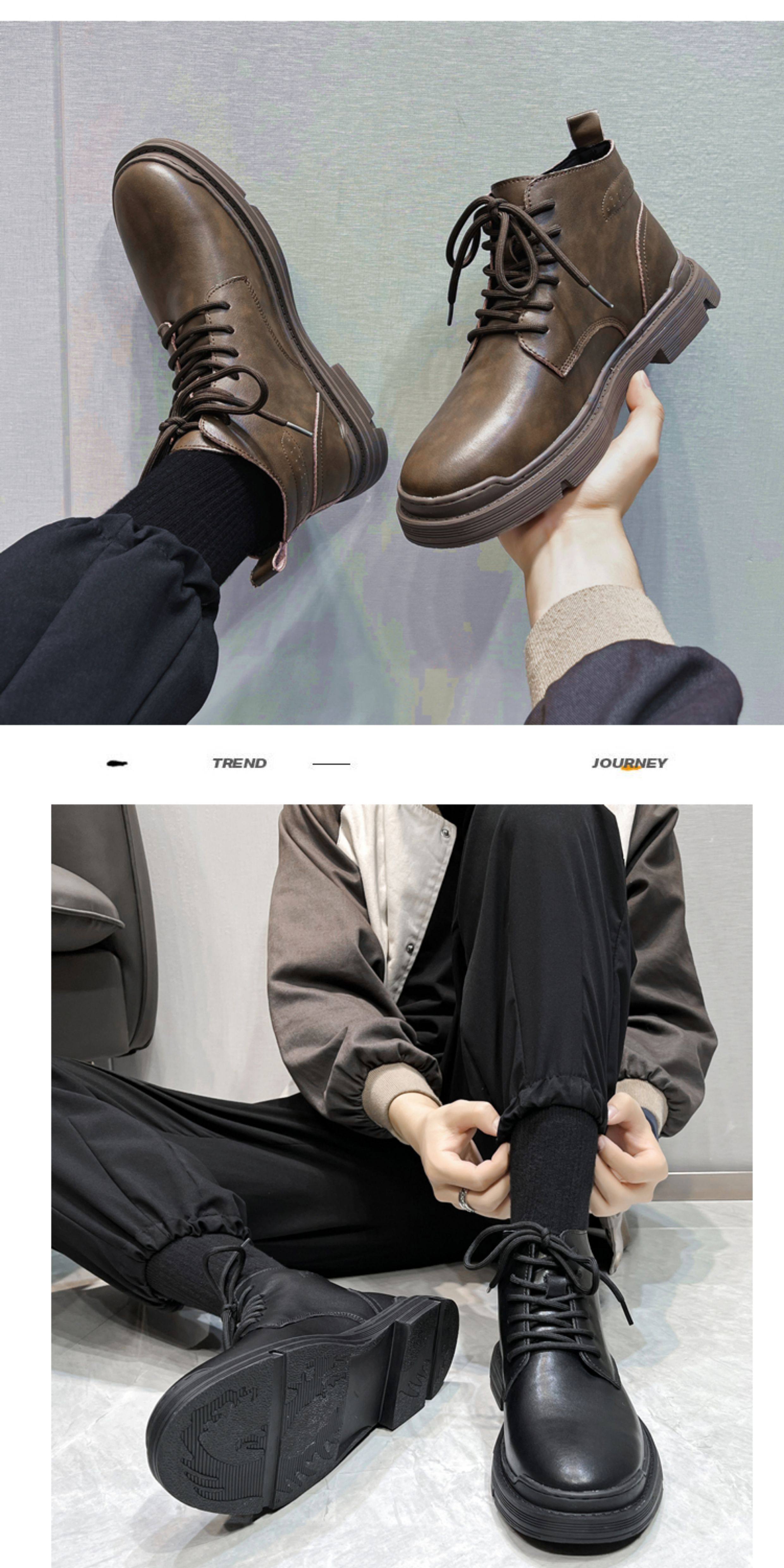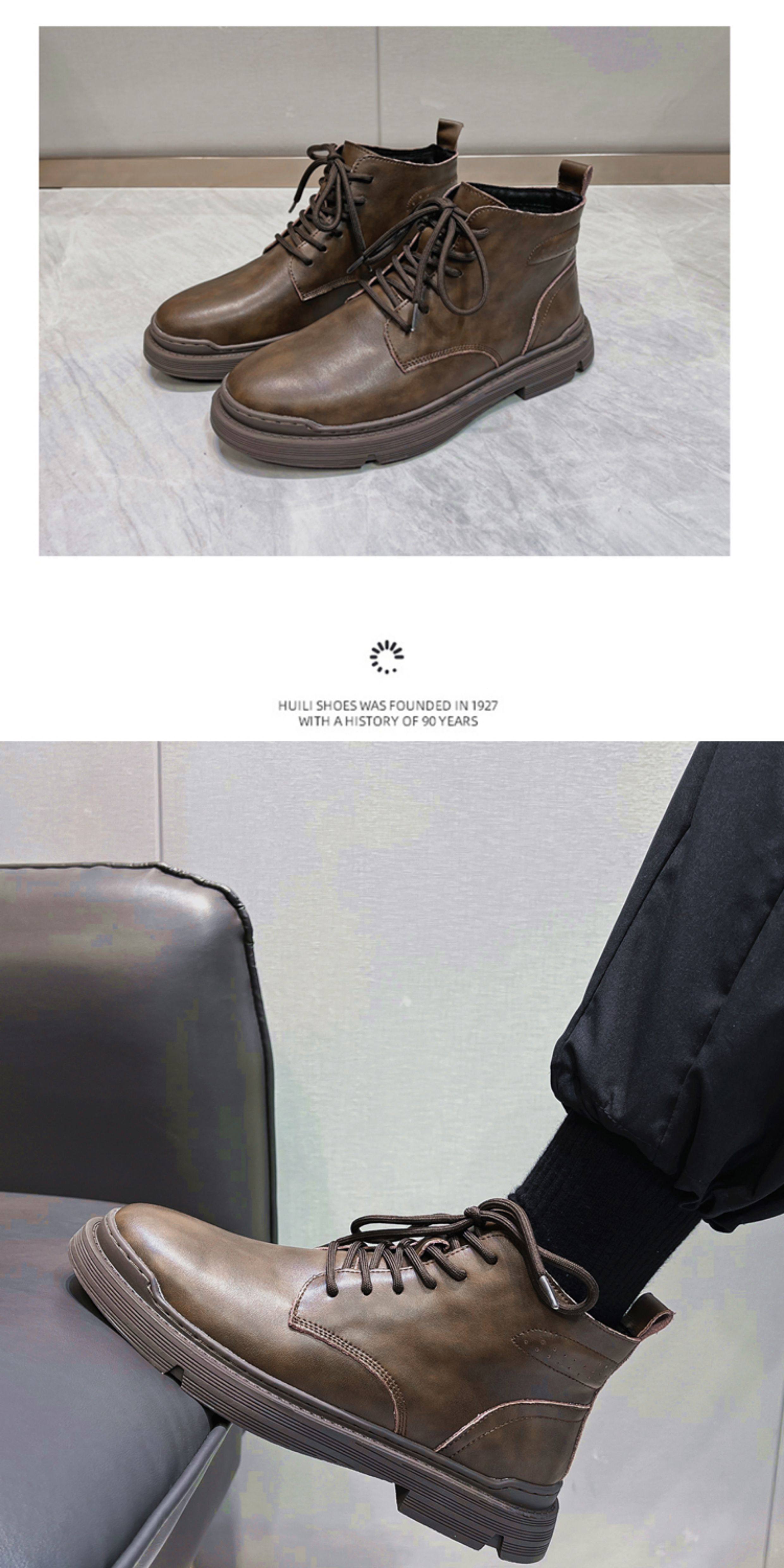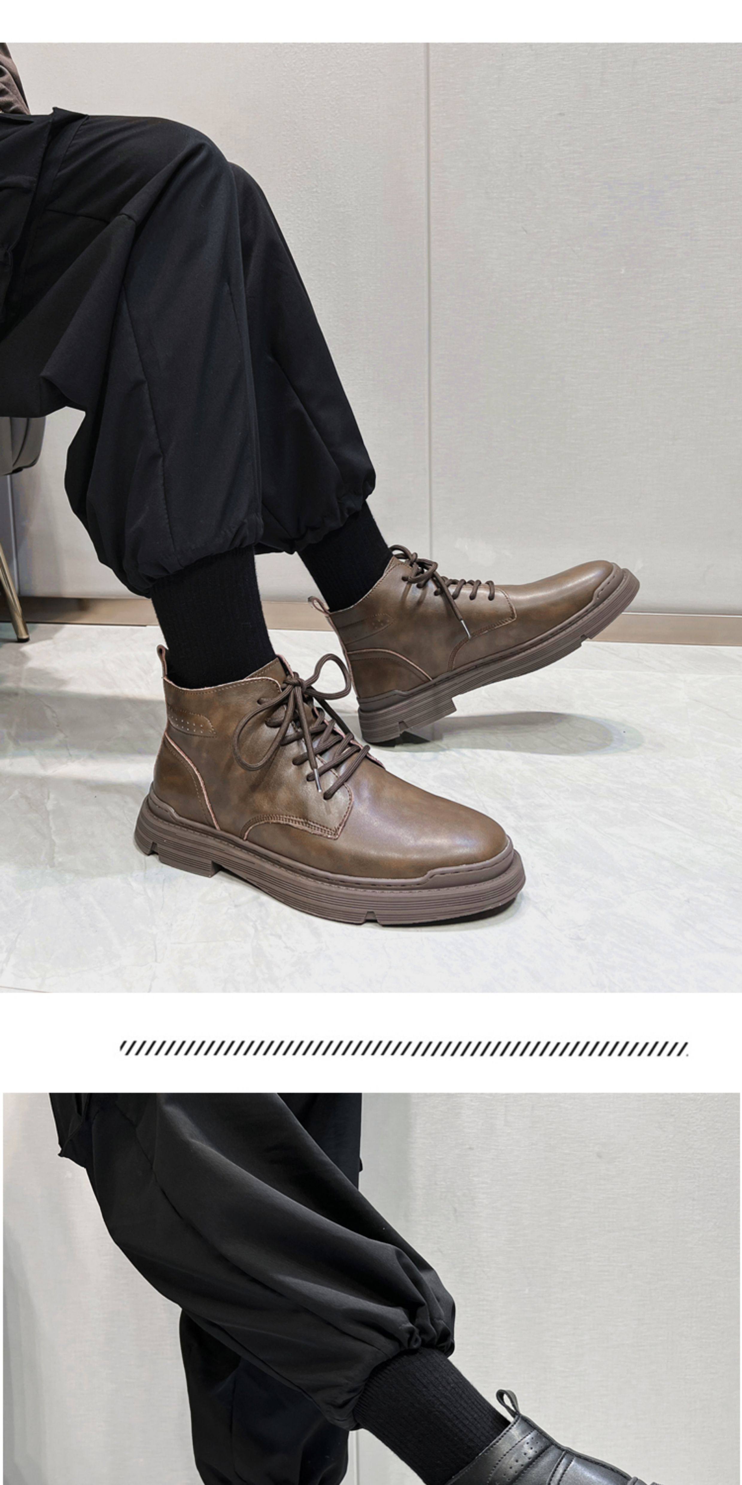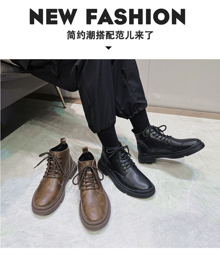 Martin Boots for Men, Winter Fleece-Lined High-Top Shoes, Genuine Leather, Trendy New Retro Short Boots, Mid-Top British Style Work Boots