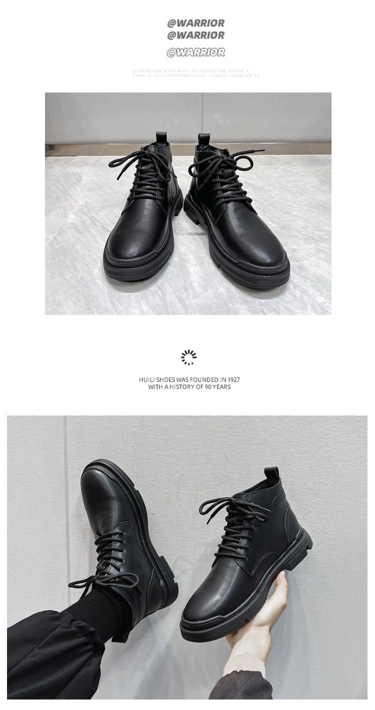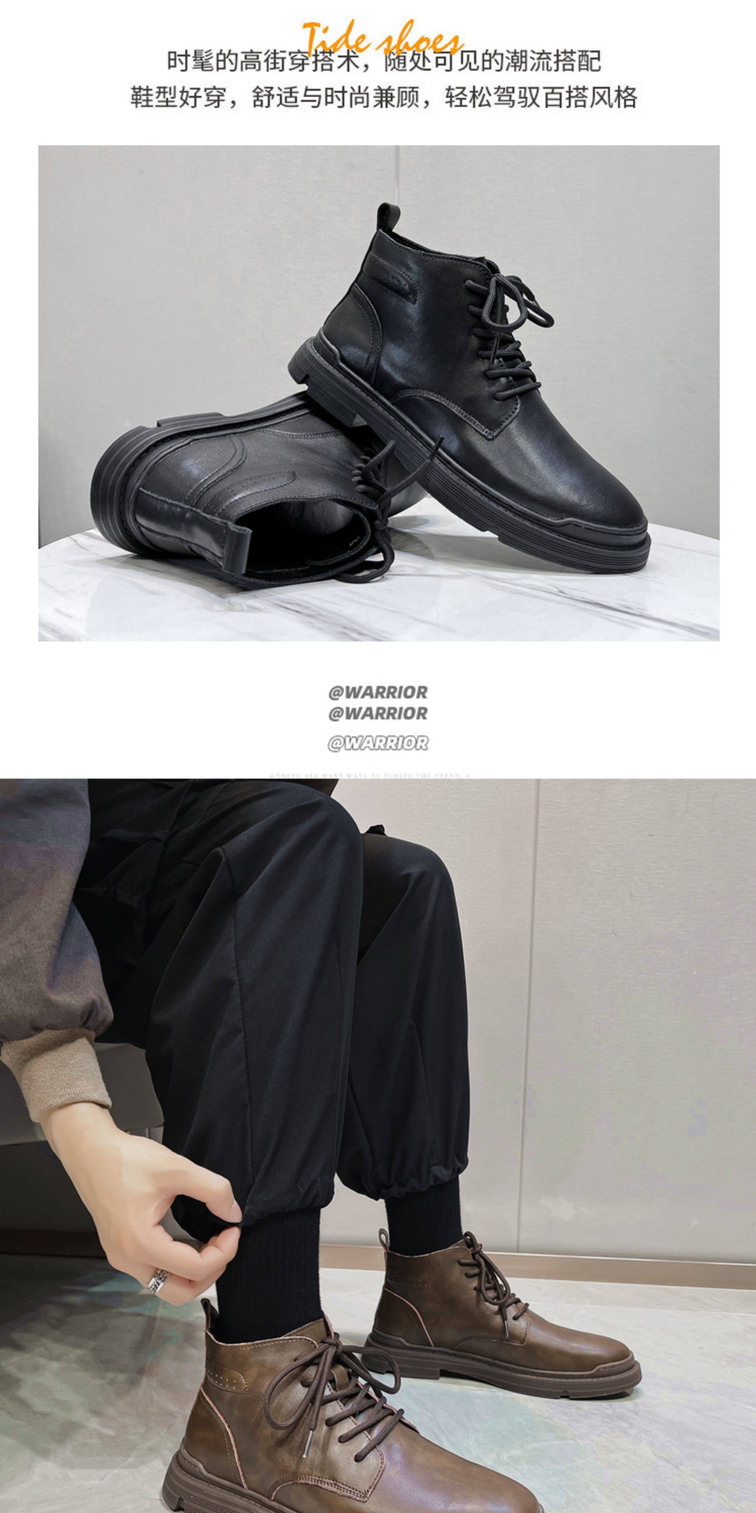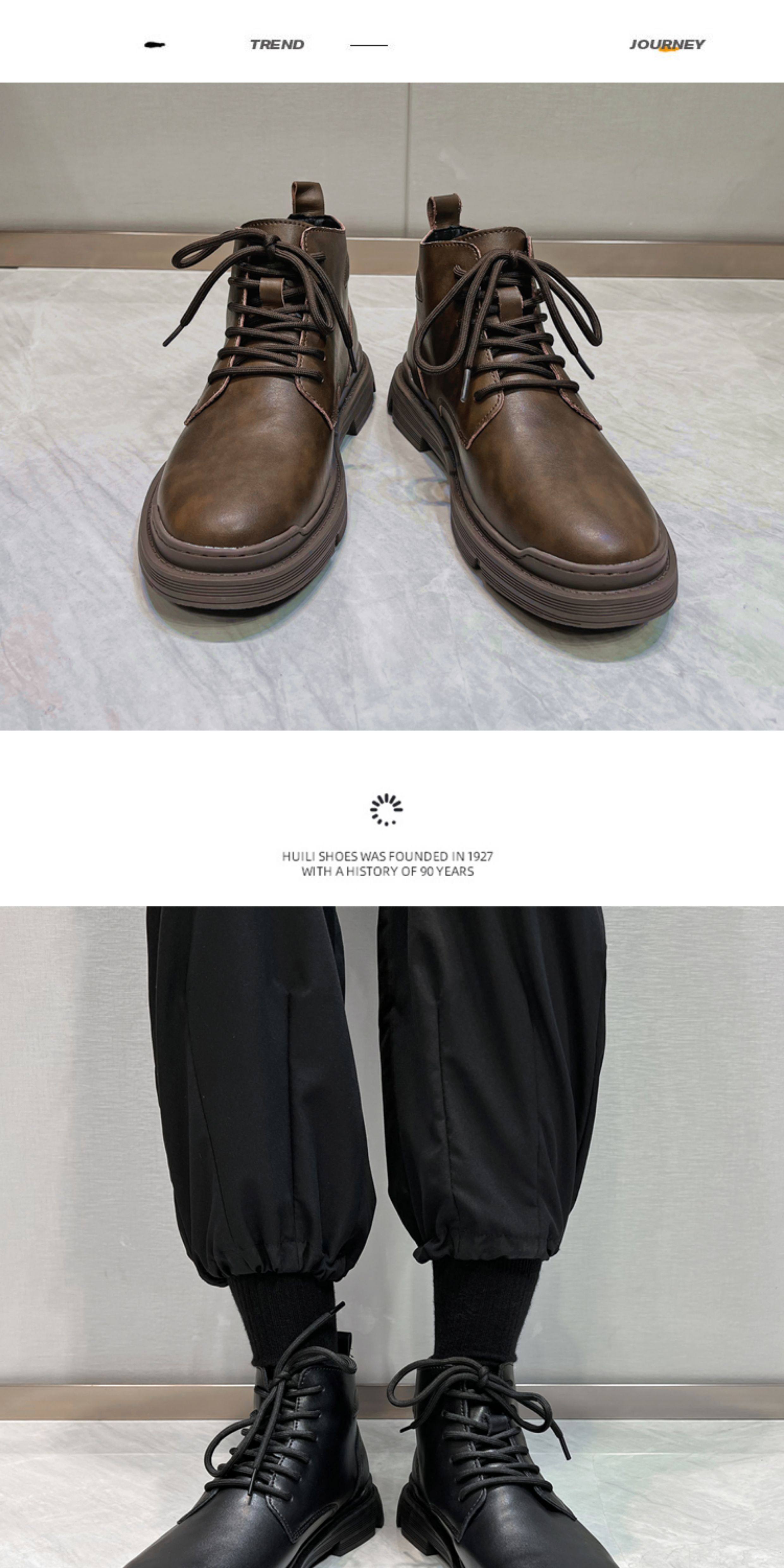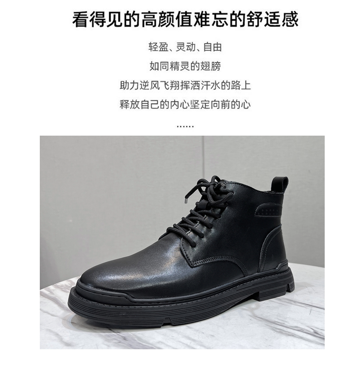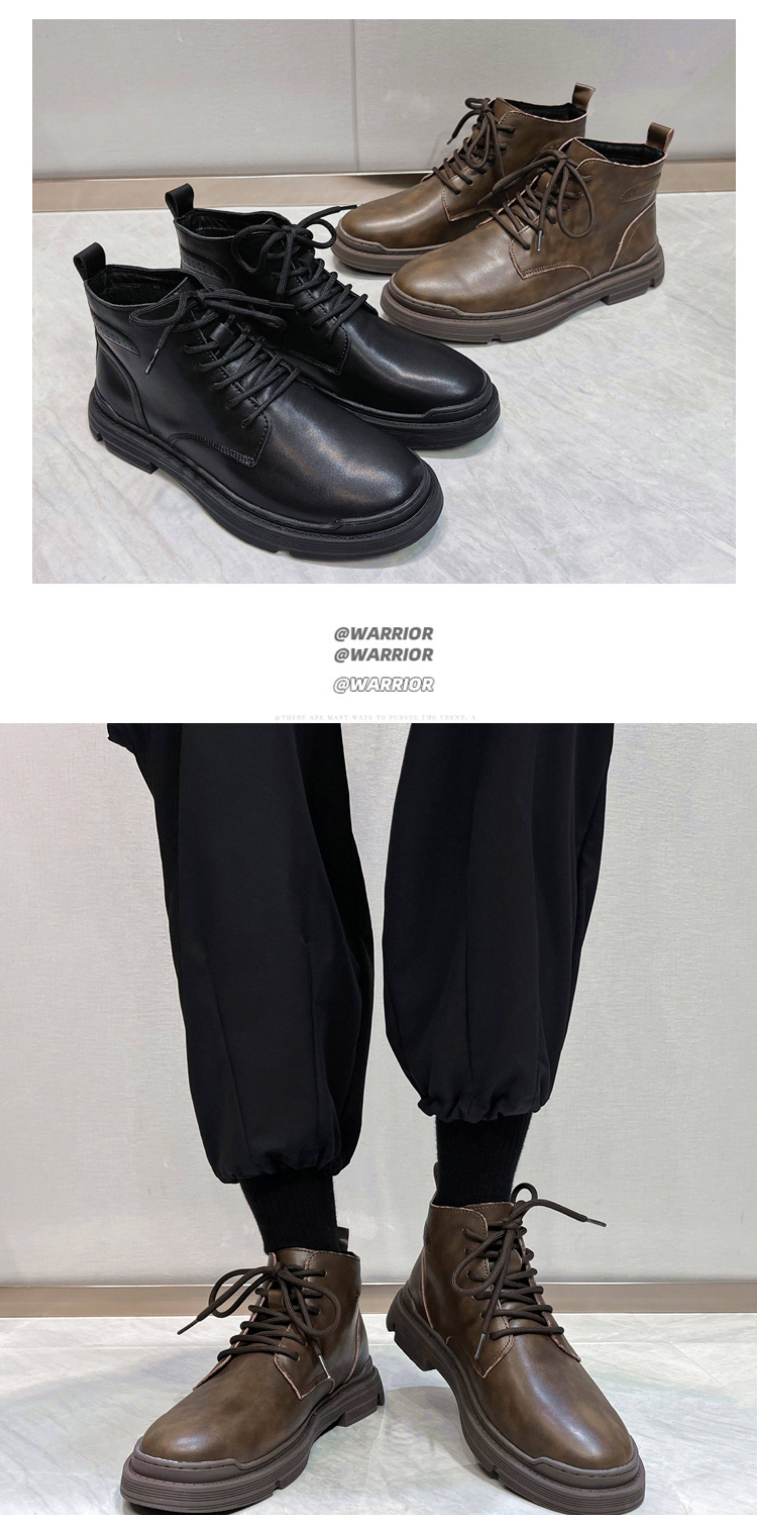 Martin Boots for Men, Winter Fleece-Lined High-Top Shoes, Genuine Leather, Trendy New Retro Short Boots, Mid-Top British Style Work Boots