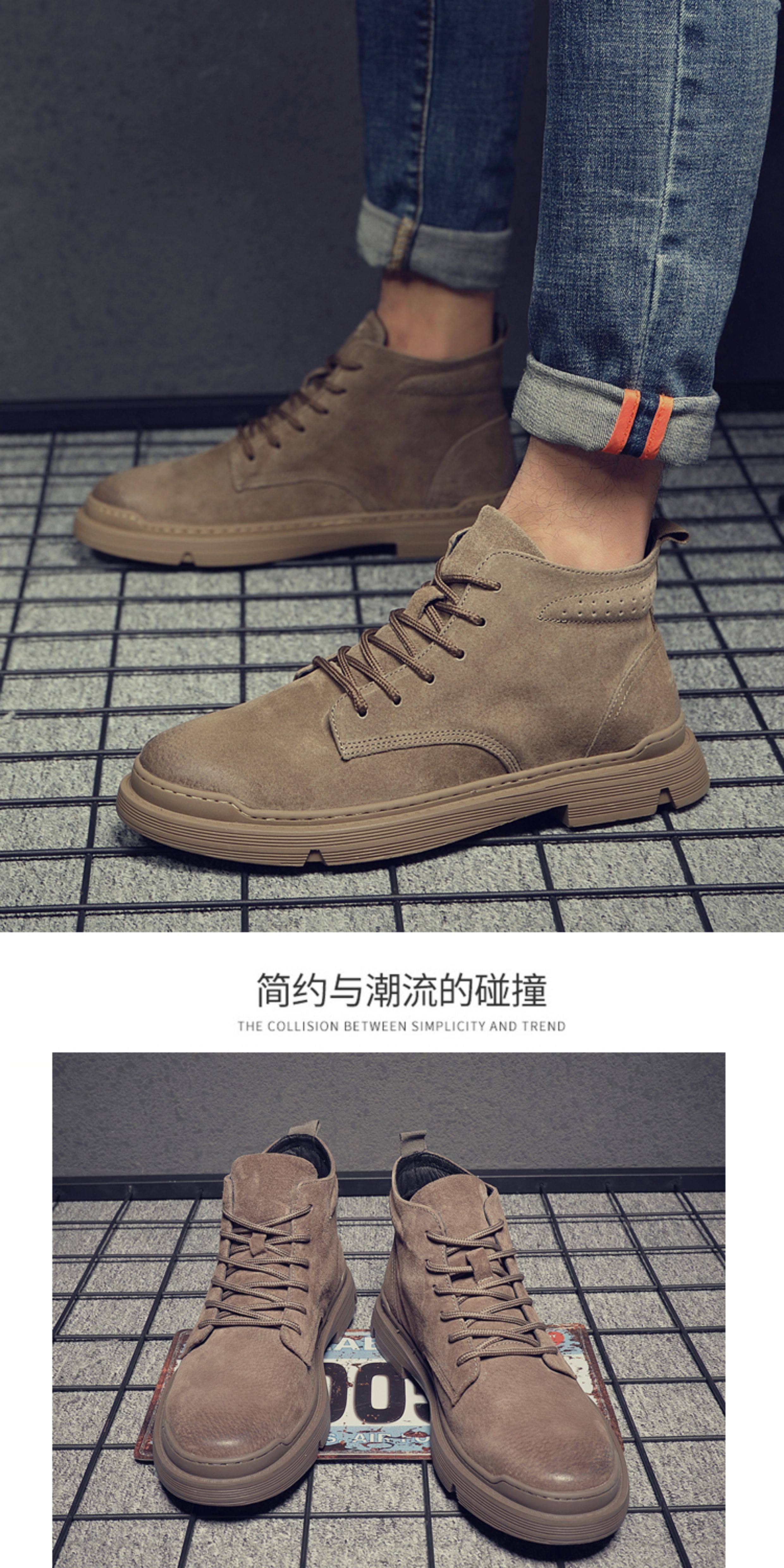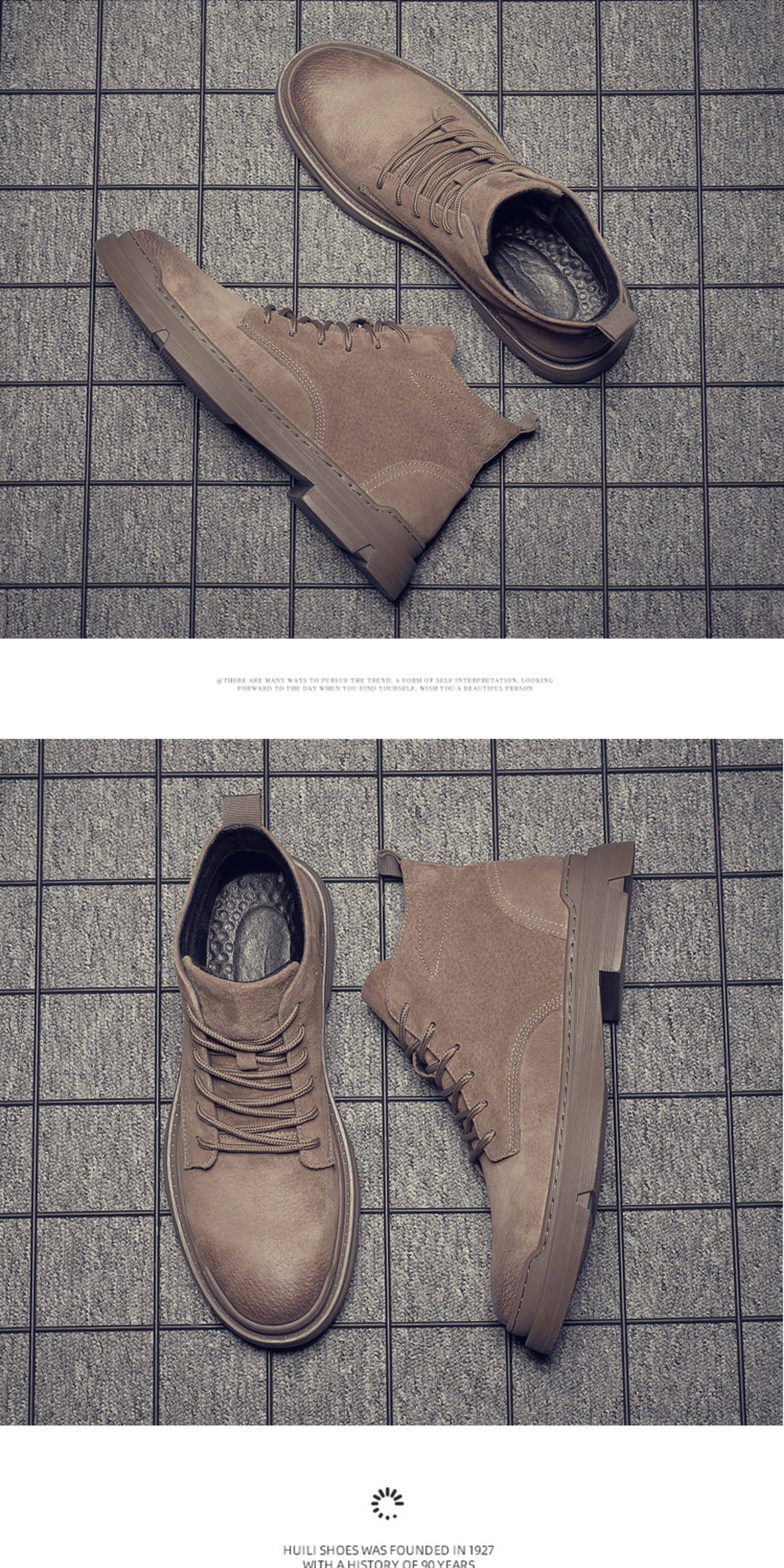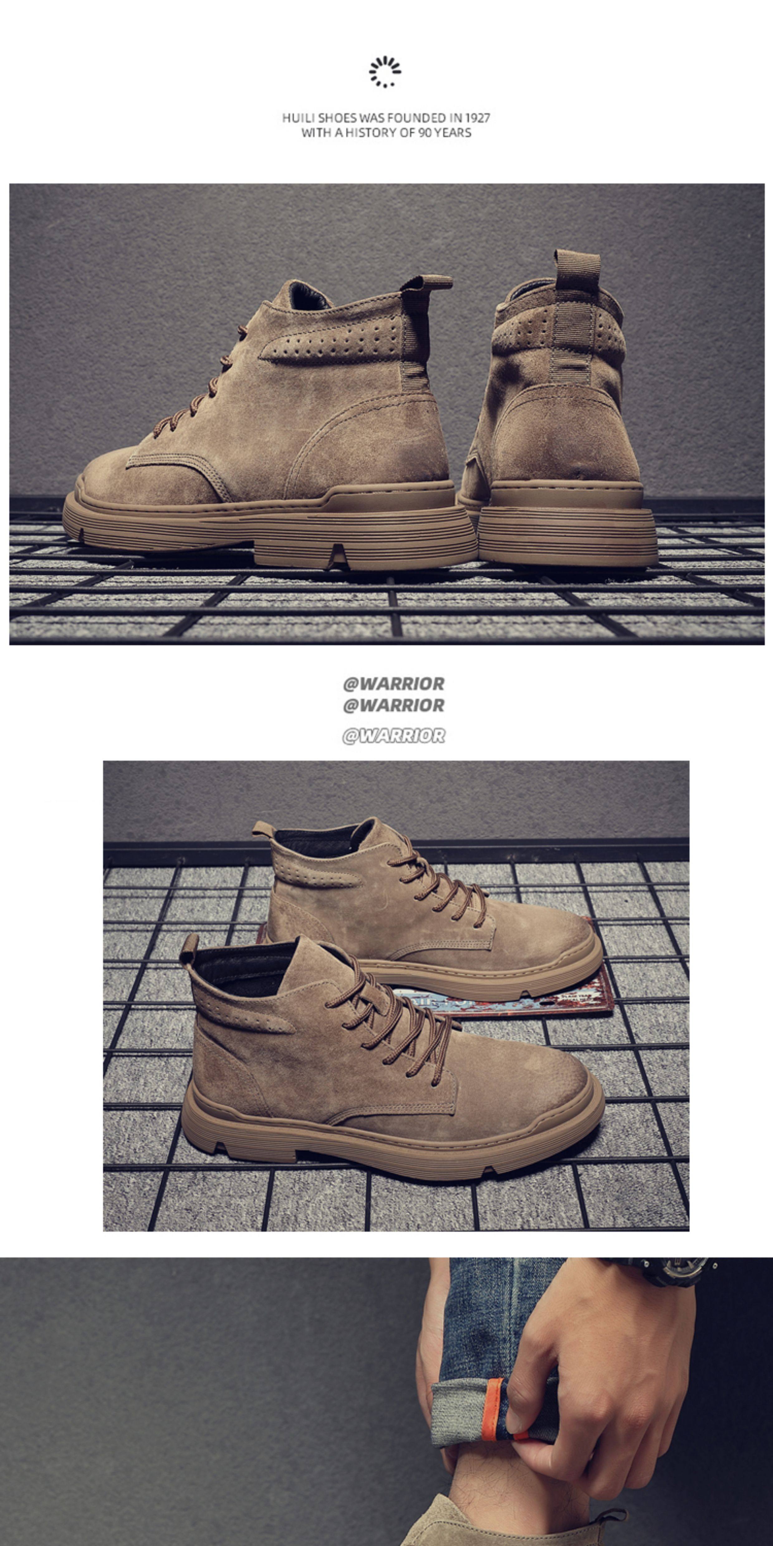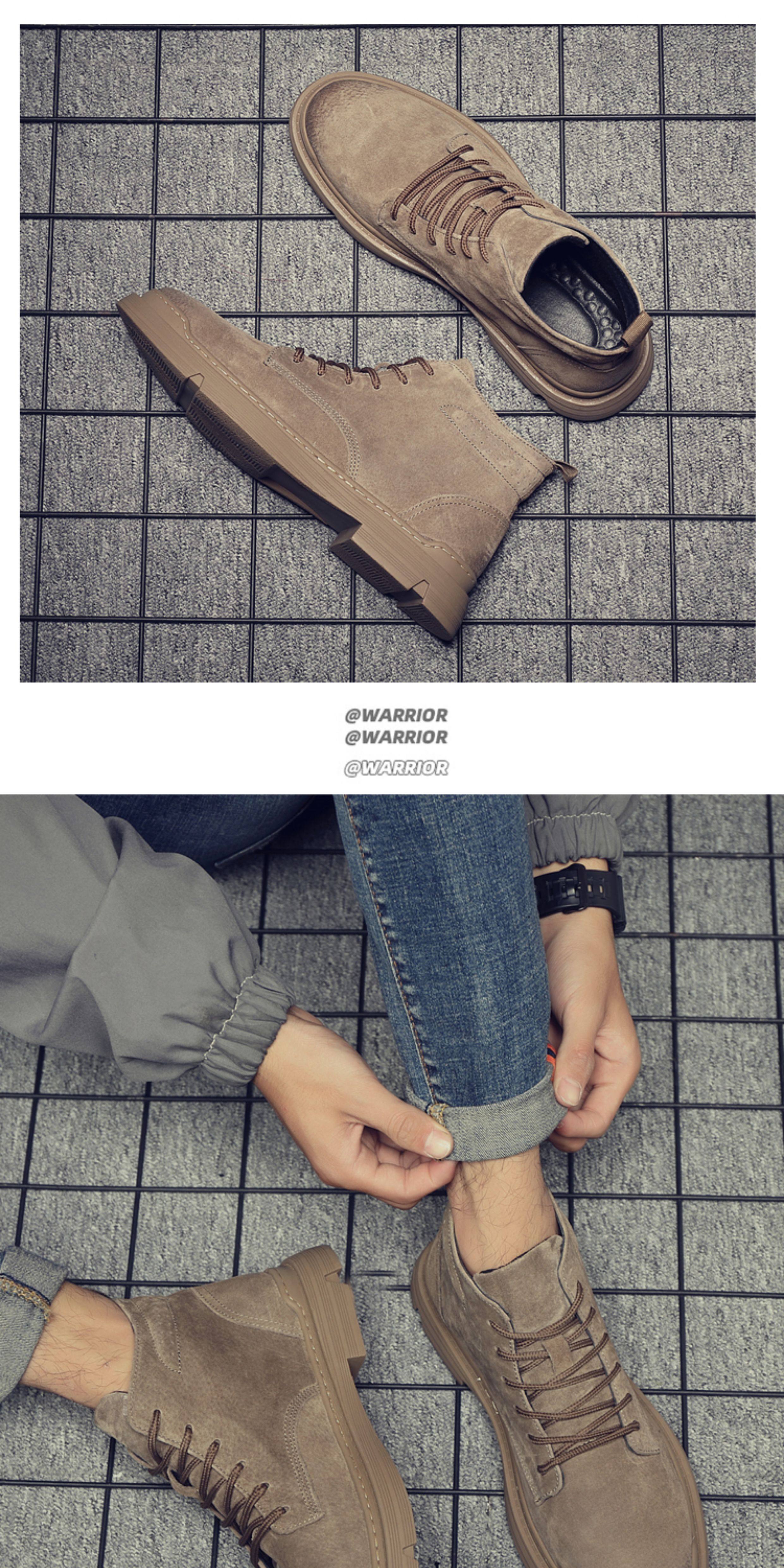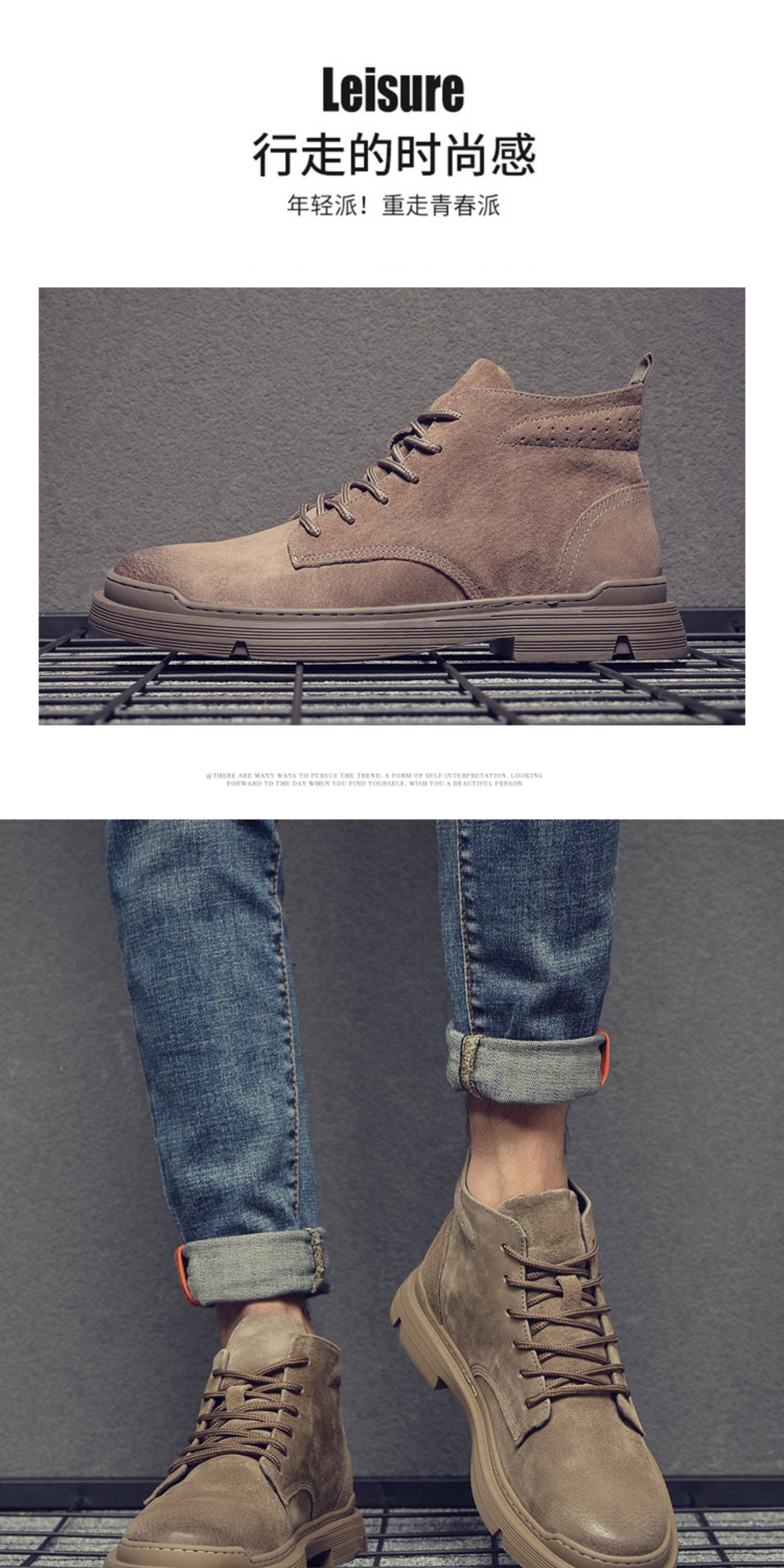 Martin Boots for Men, Winter Fleece-Lined High-Top Shoes, Genuine Leather British Style Short Boots, Trendy Korean Style Mid-Top Retro Work Boots
