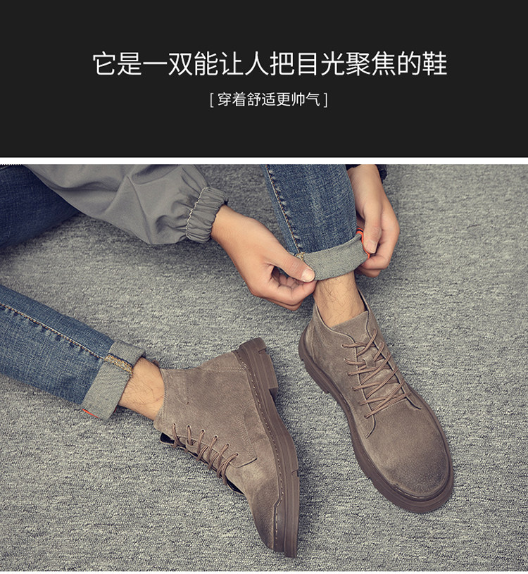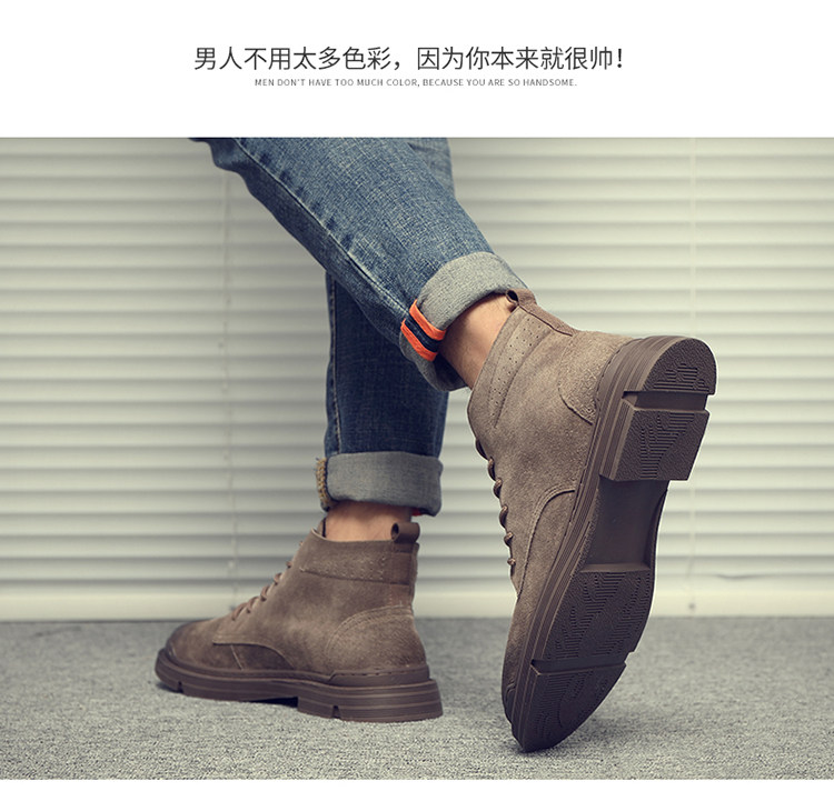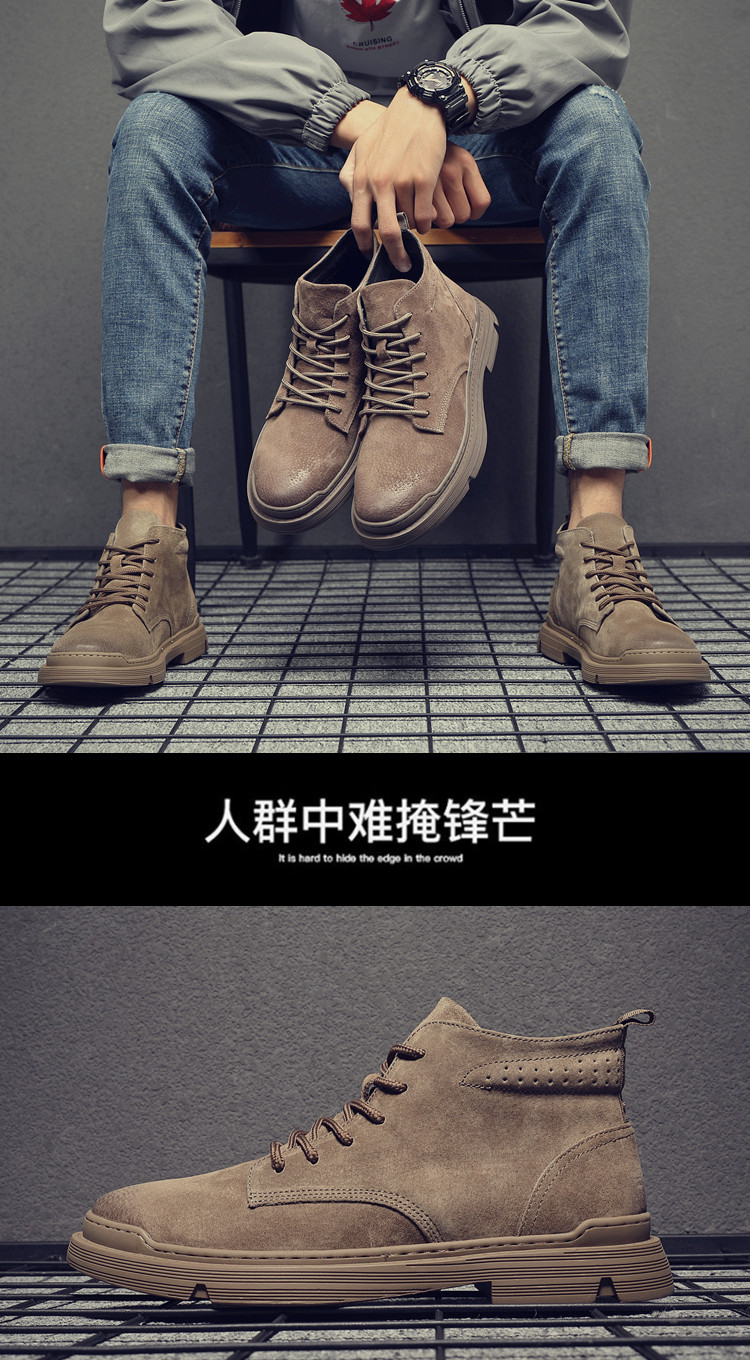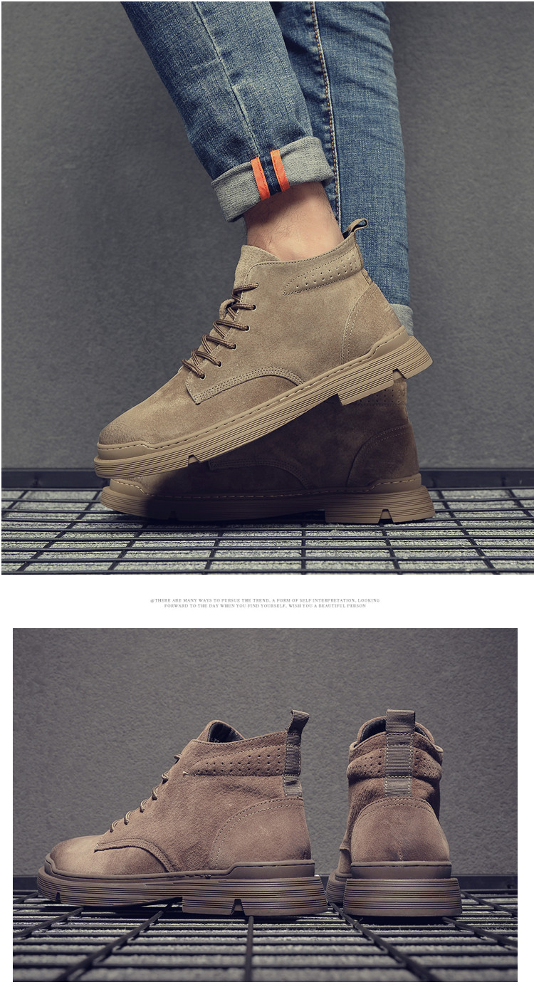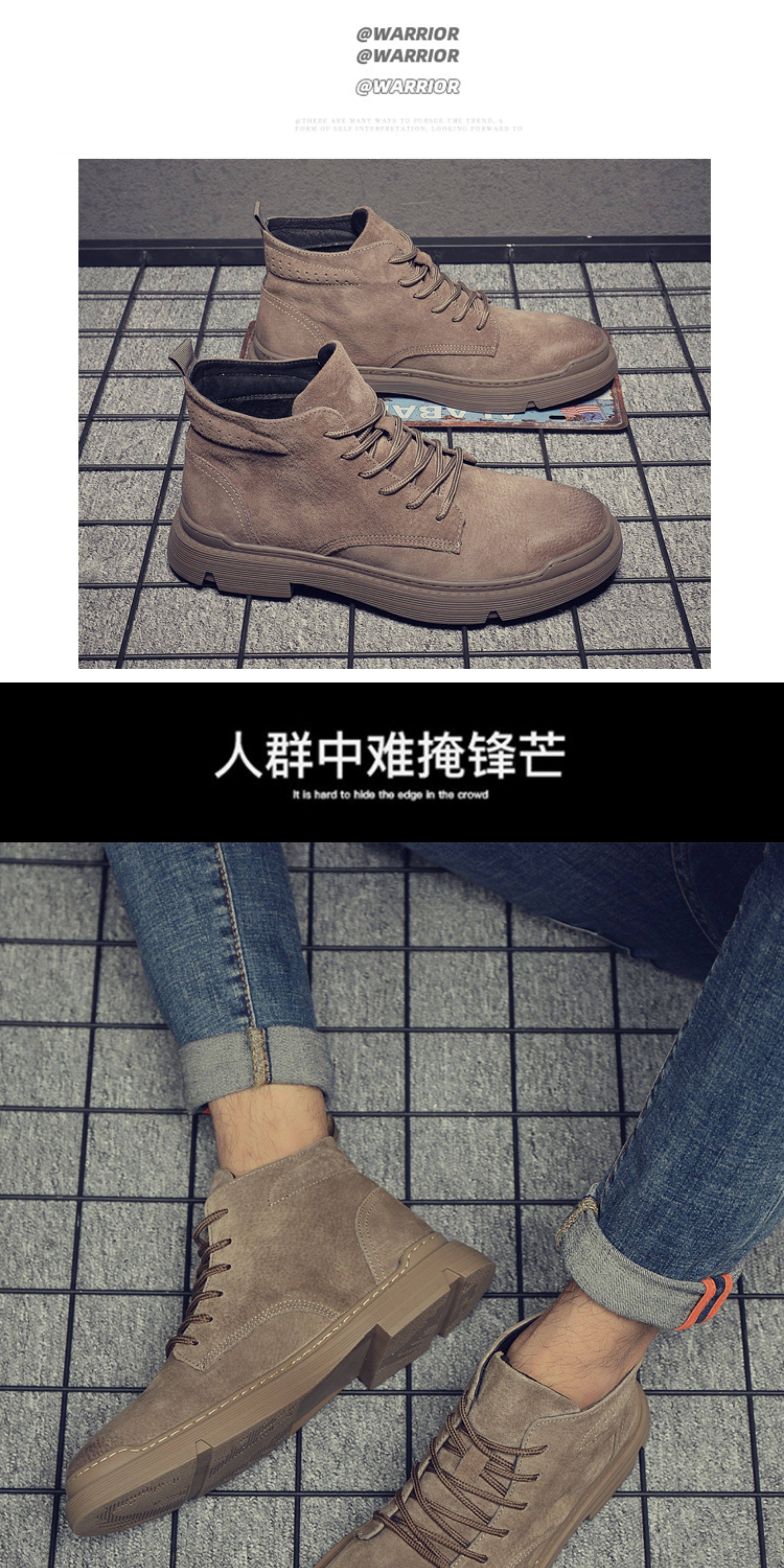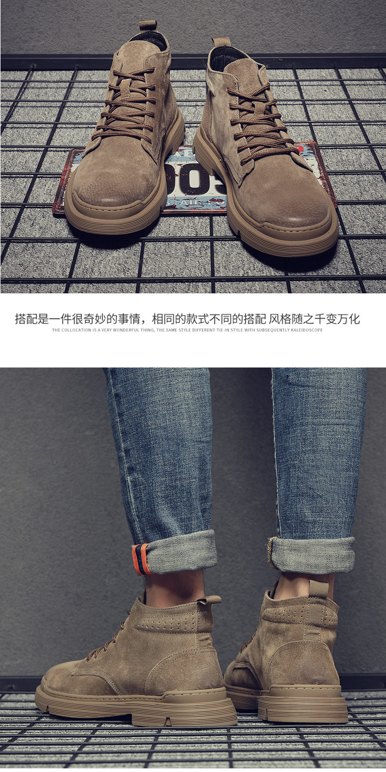 Martin Boots for Men, Winter Fleece-Lined High-Top Shoes, Genuine Leather British Style Short Boots, Trendy Korean Style Mid-Top Retro Work Boots
