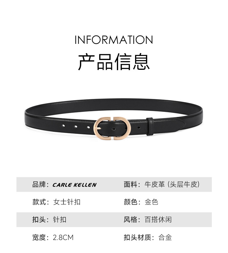 CARLE KELLEN belt women's genuine leather black fashion versatile decorative jeans with pure cowhide new belt
