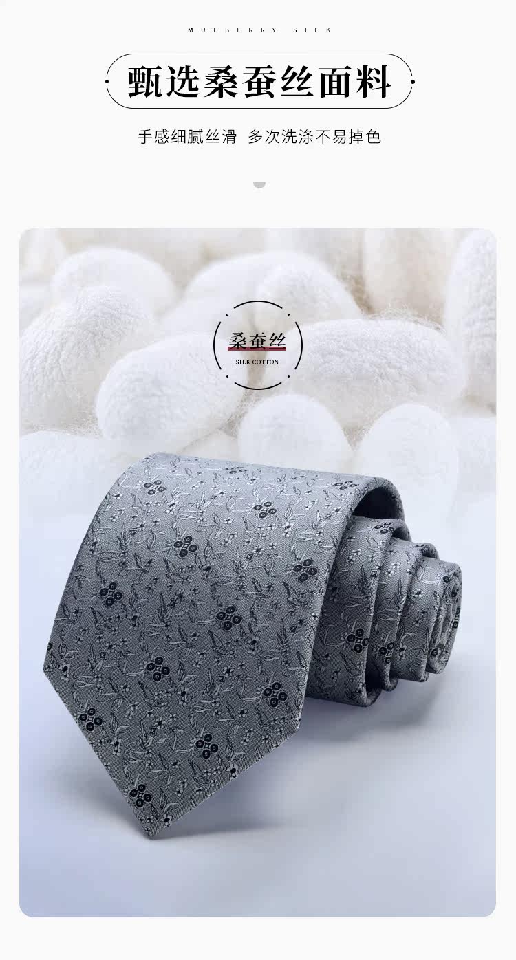 Silver-Gray Silk Tie for Men, Formal Business Attire, Mulberry Silk, High-End Suit, Premium Hand-Tied, Luxury Gift Box, Light Luxury