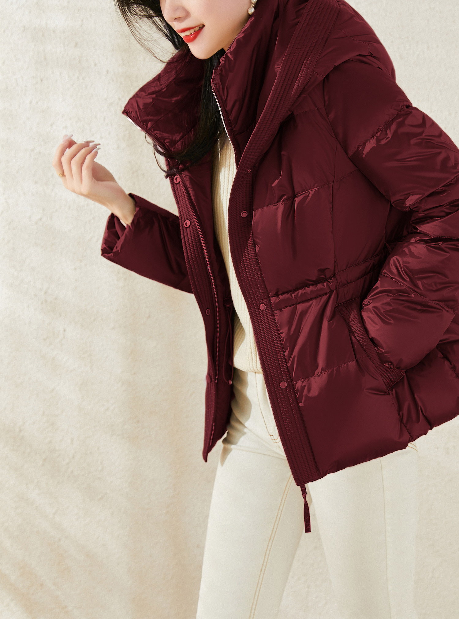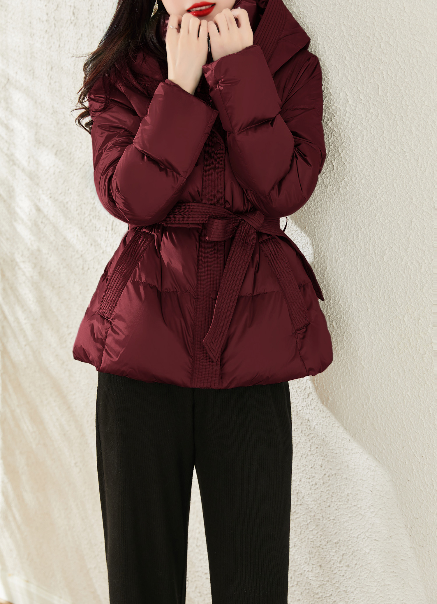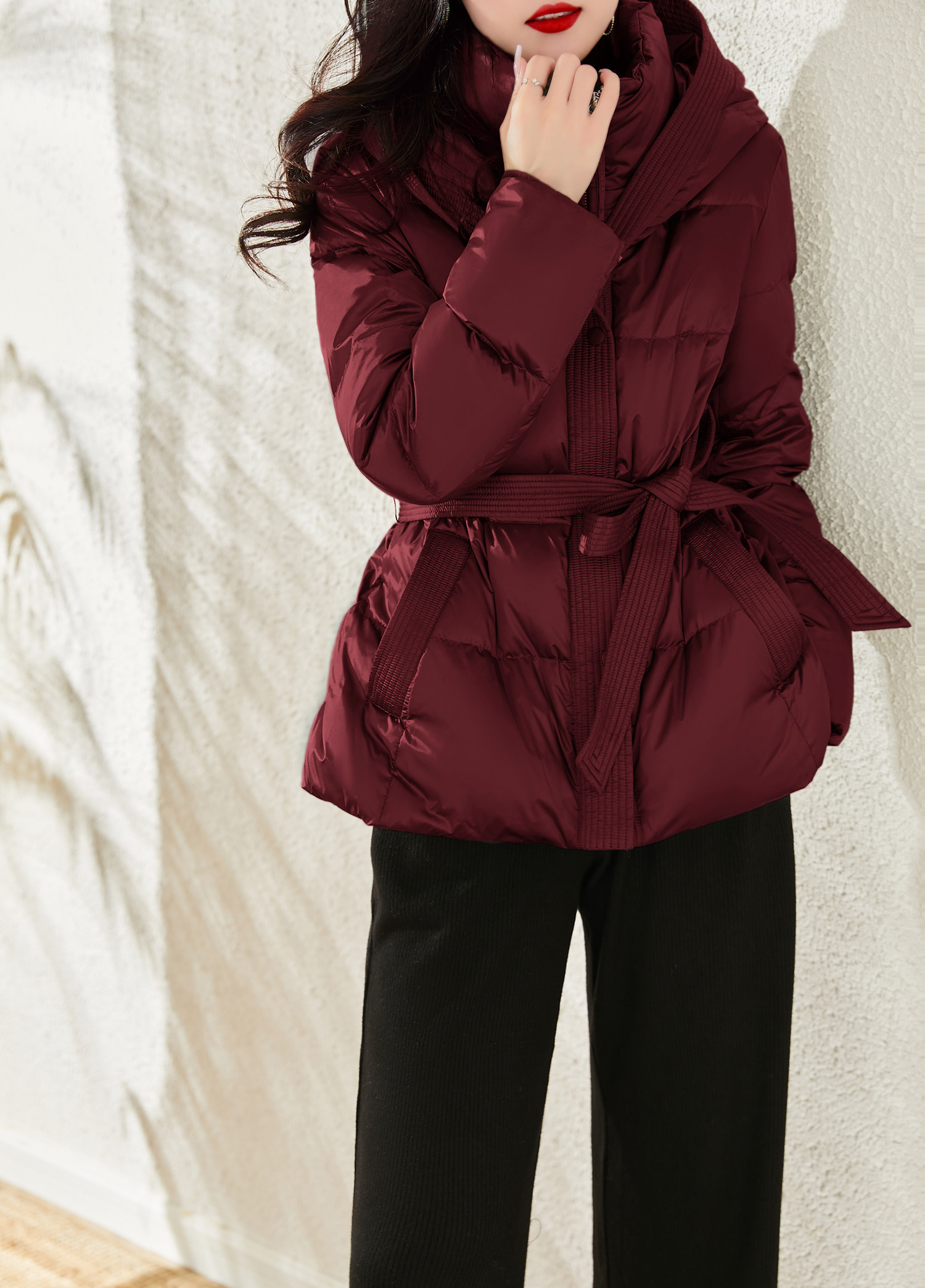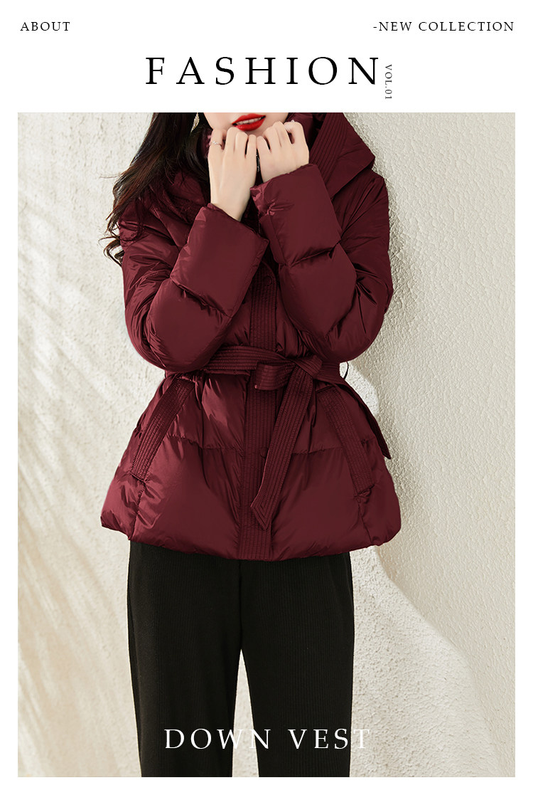 Jianman lightweight body-feeling literary retro red shiny hooded lace-up short real white goose down thickened down jacket winter