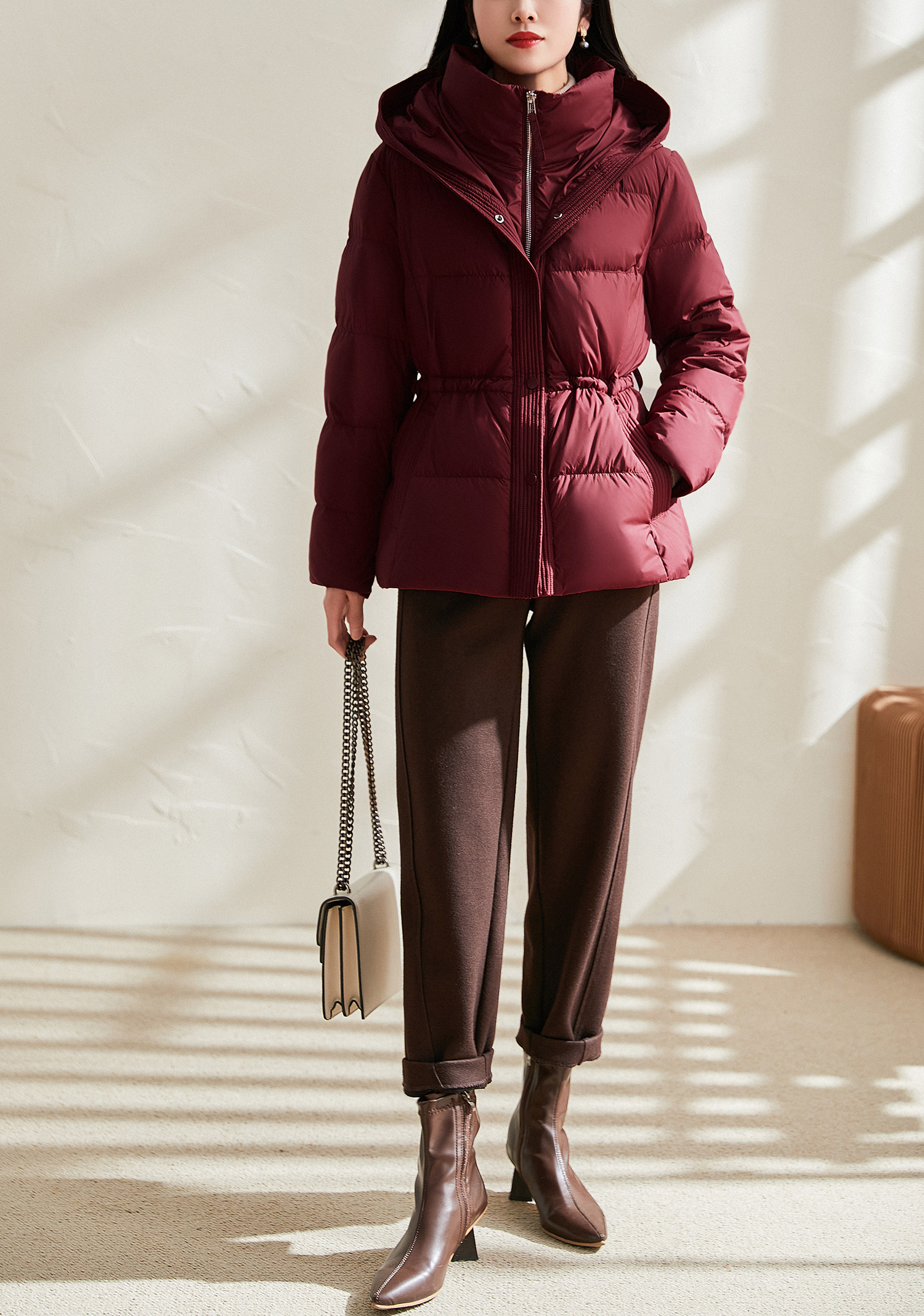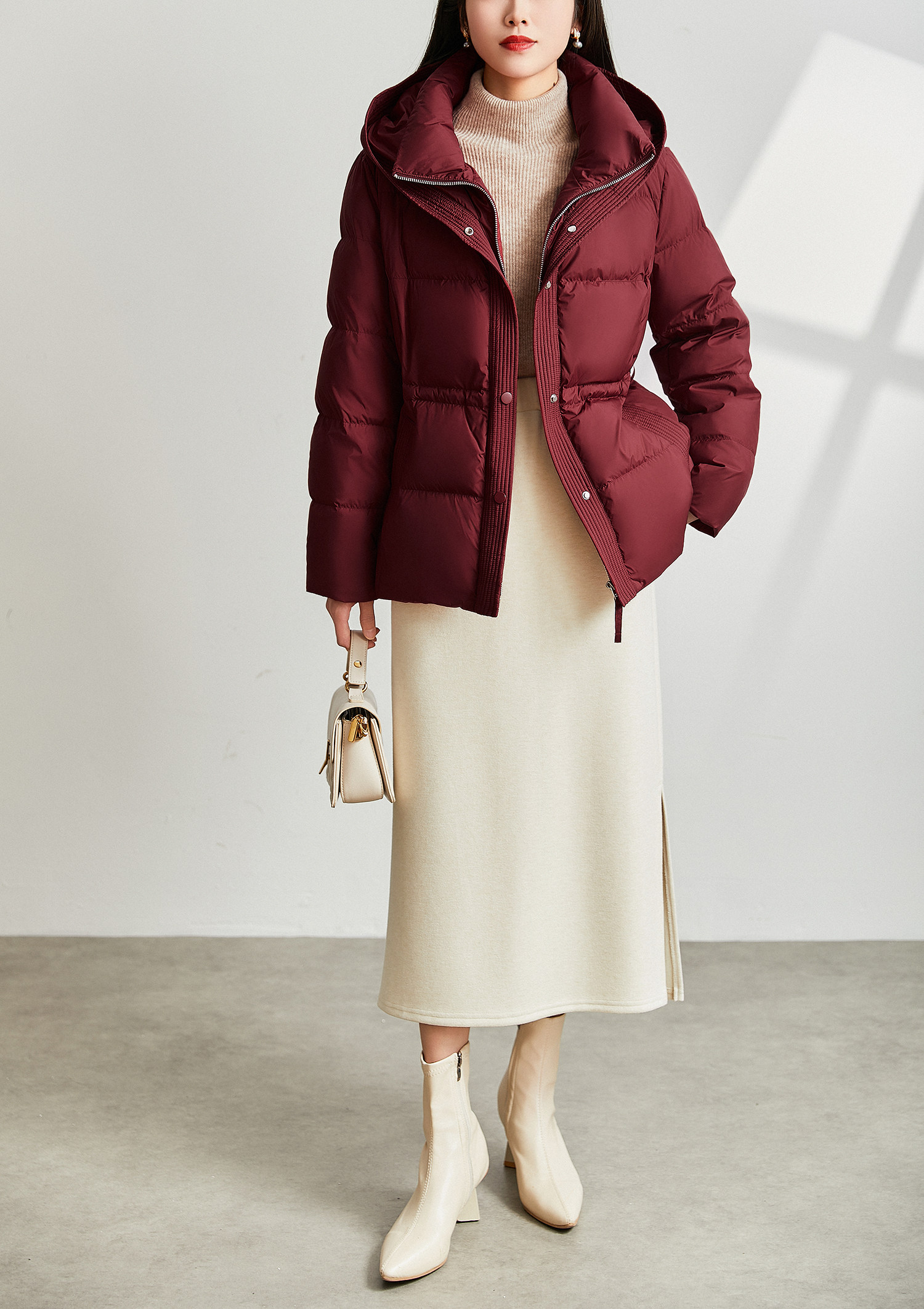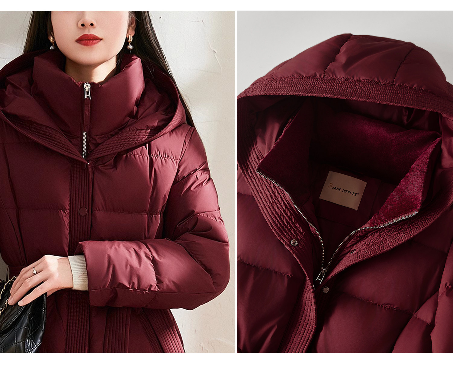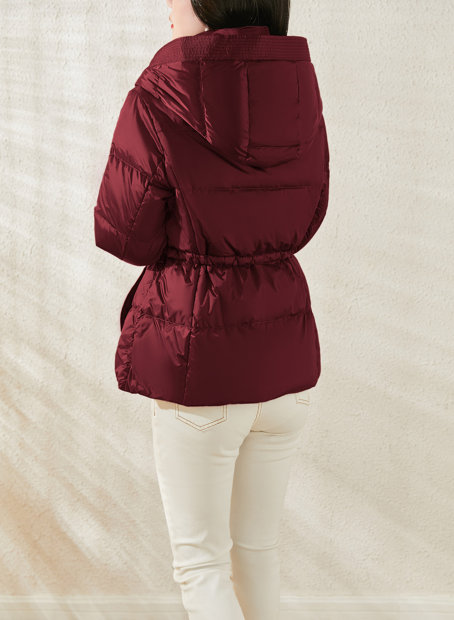 Jianman lightweight body-feeling literary retro red shiny hooded lace-up short real white goose down thickened down jacket winter