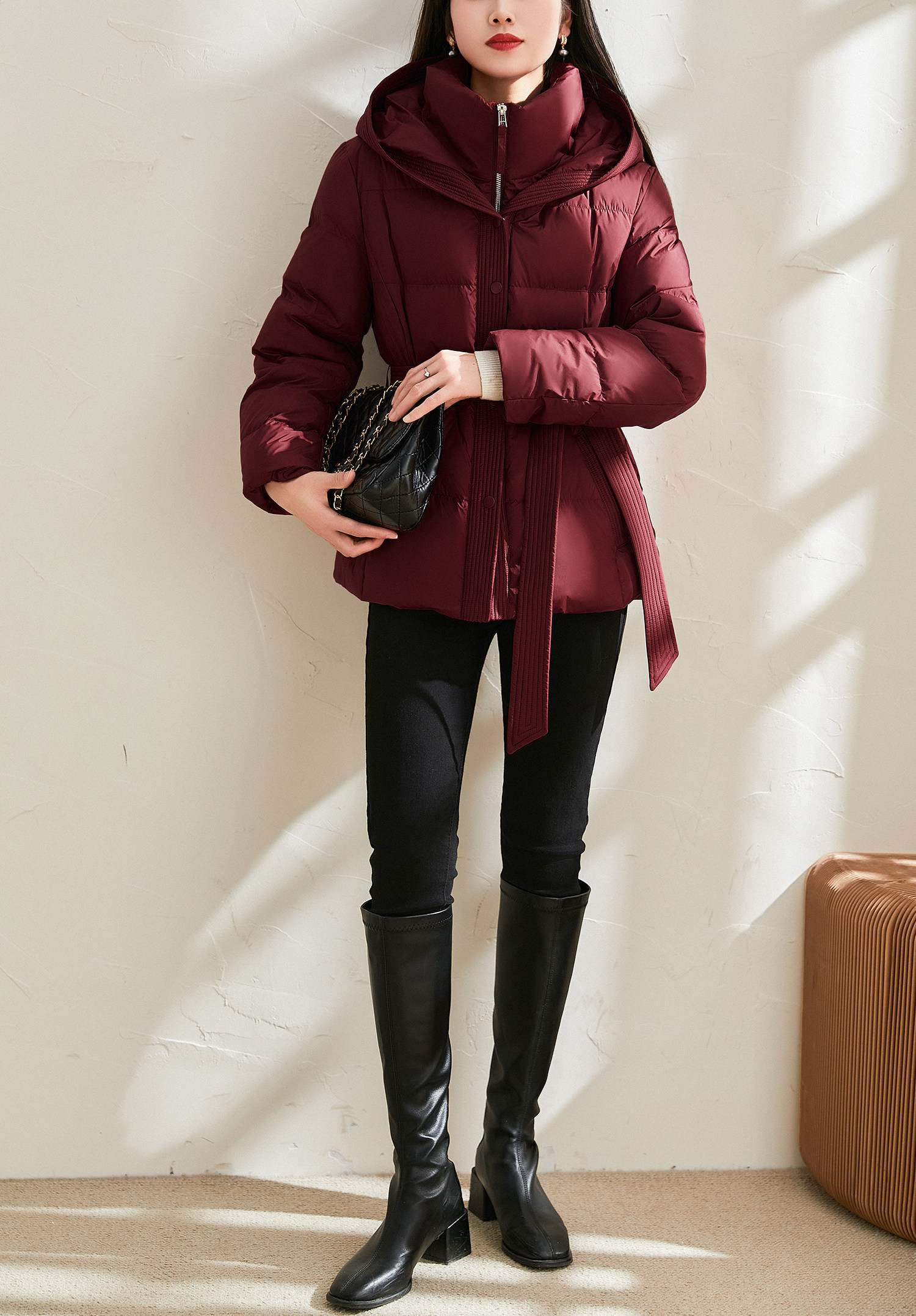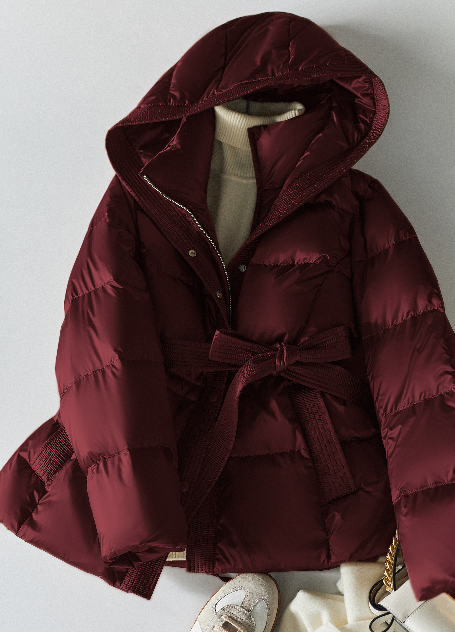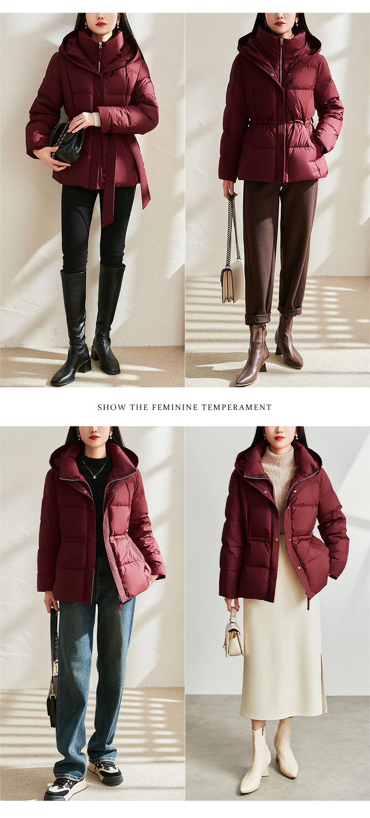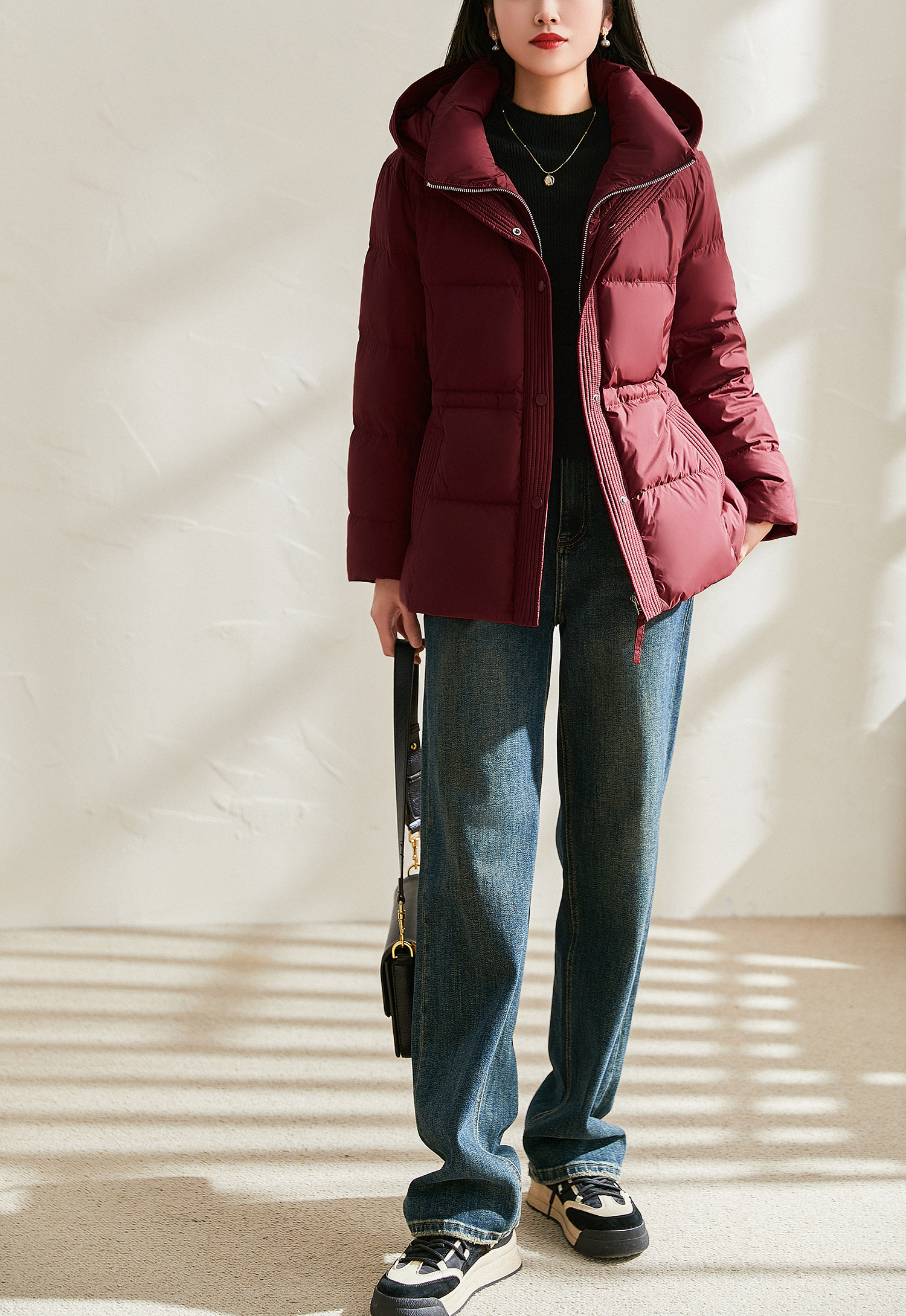 Jianman lightweight body-feeling literary retro red shiny hooded lace-up short real white goose down thickened down jacket winter