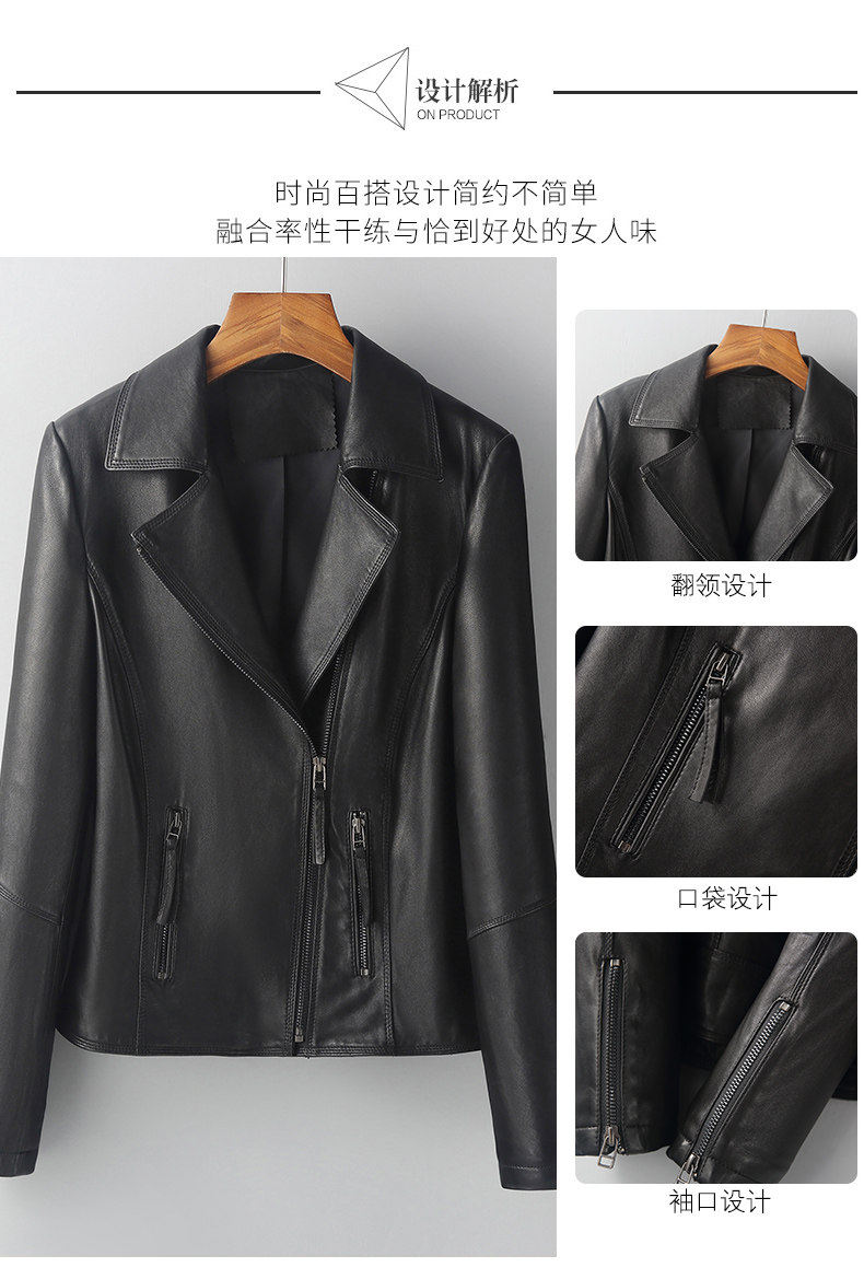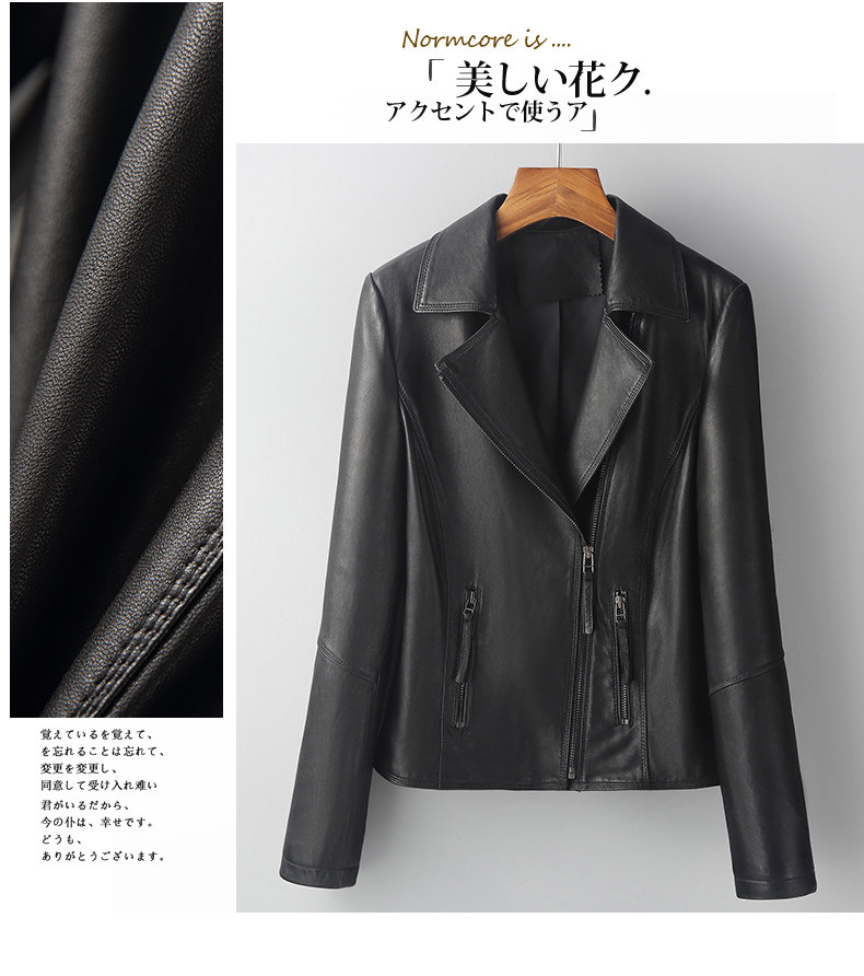 Imported lambskin motorcycle jacket 2022 spring, autumn and winter genuine leather jacket for women sheepskin slim jacket