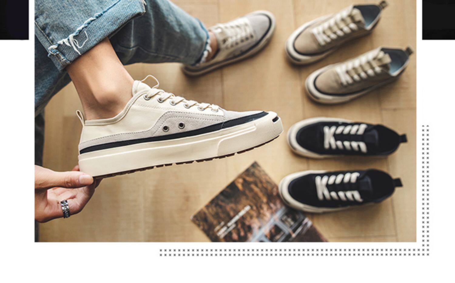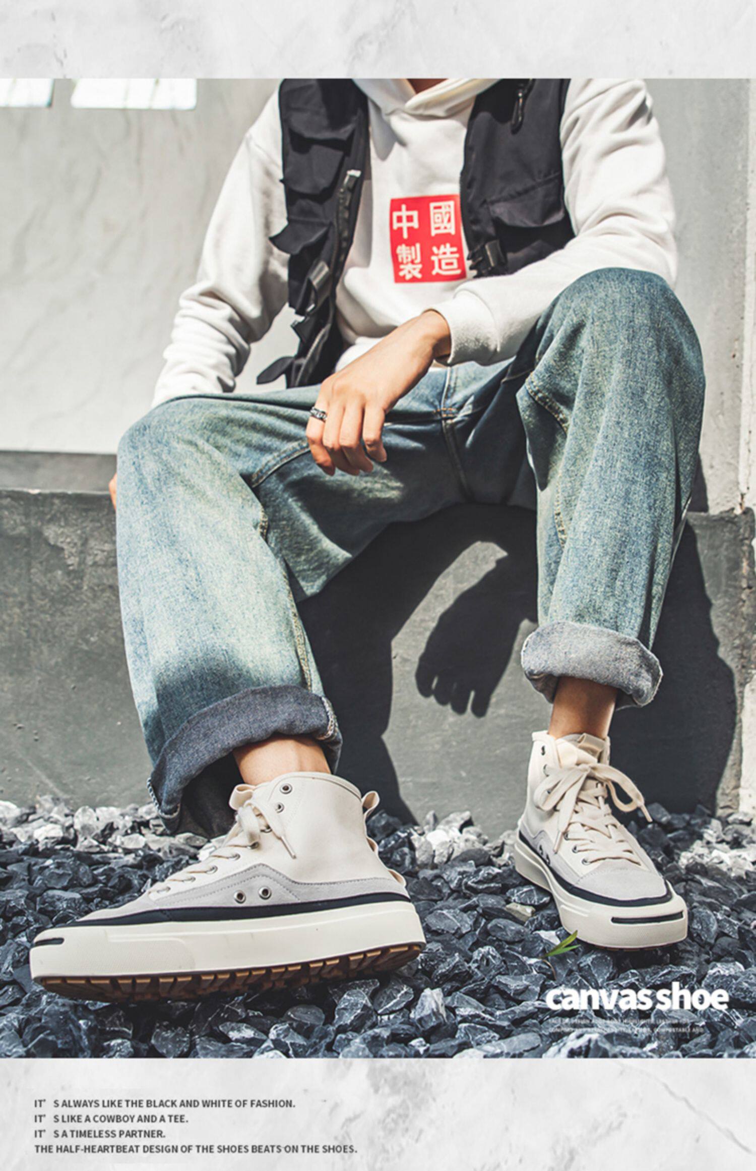 High-Top Canvas Shoes for Men, Summer Trendy Breathable New Casual Shoes, Mid-Top Korean Style Versatile Low-Top White Sneakers