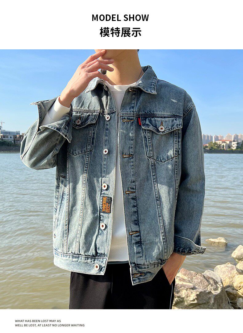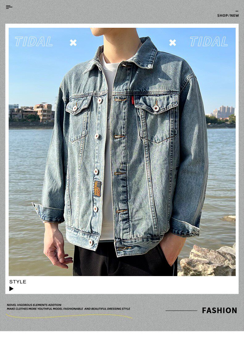 Korean style chic jacket for boys spring and autumn new ins trendy retro high street style jacket handsome denim jacket for men