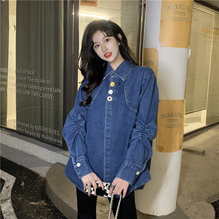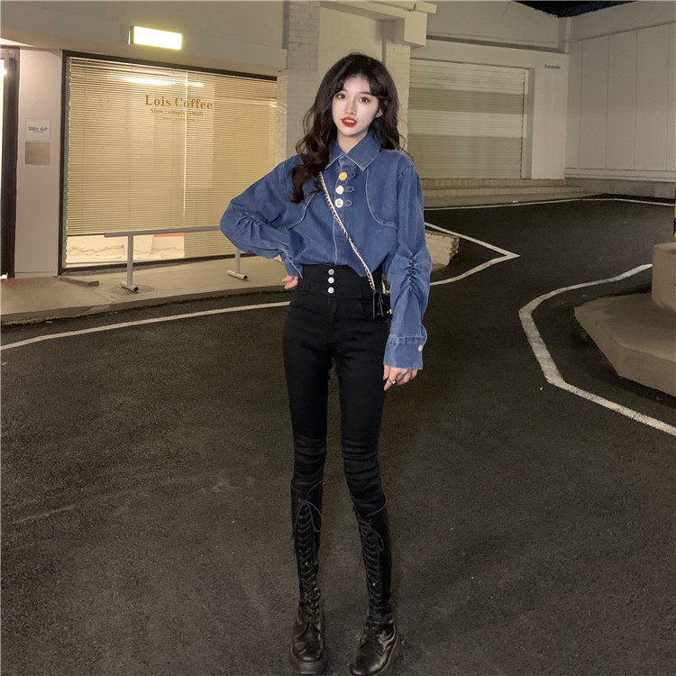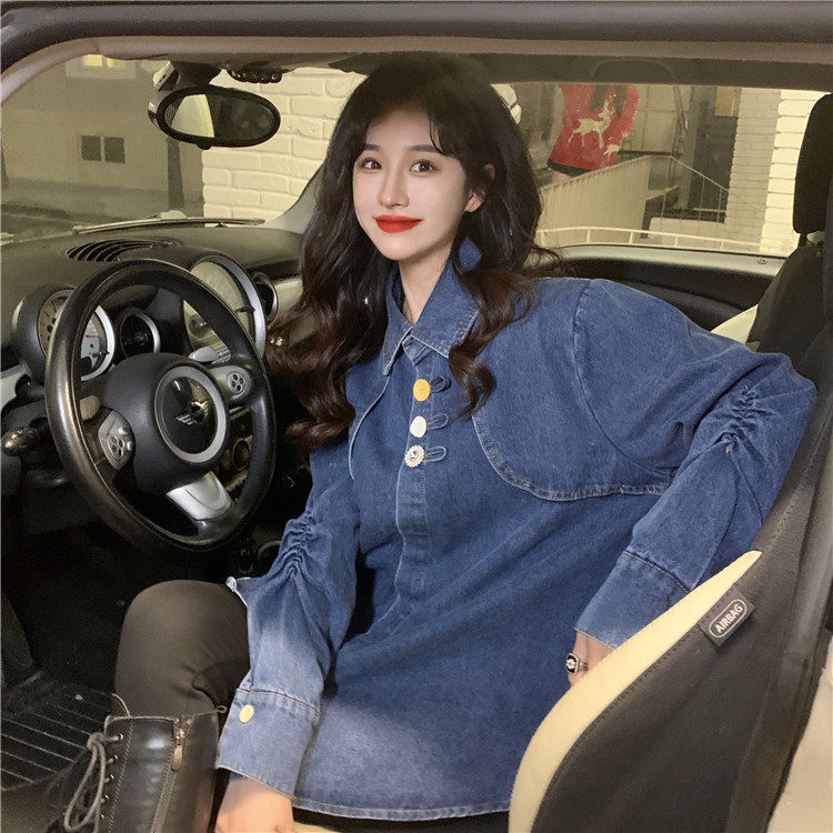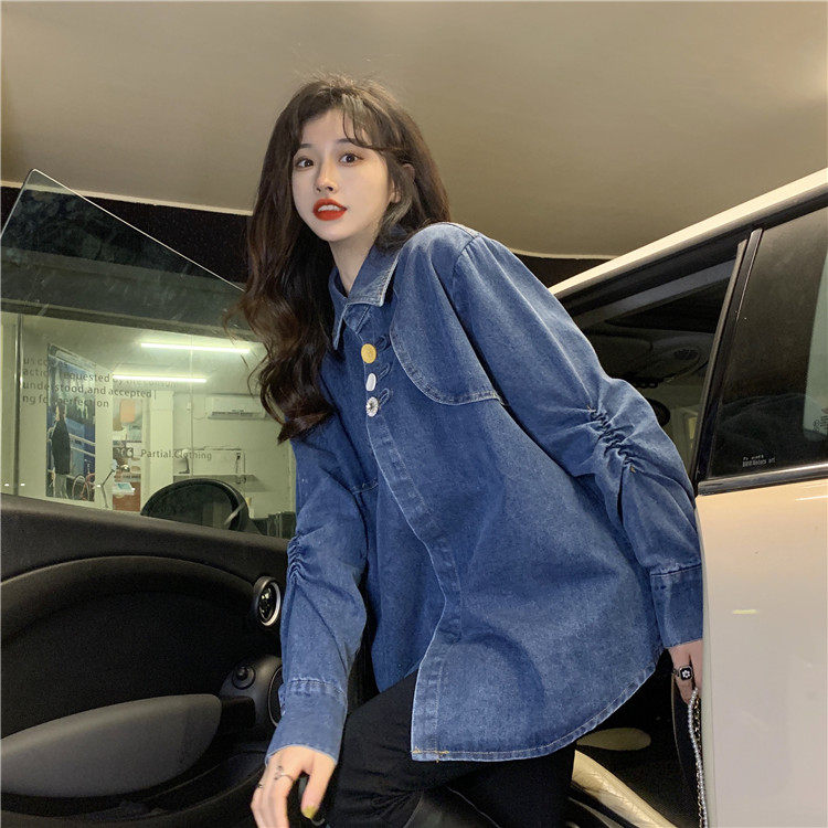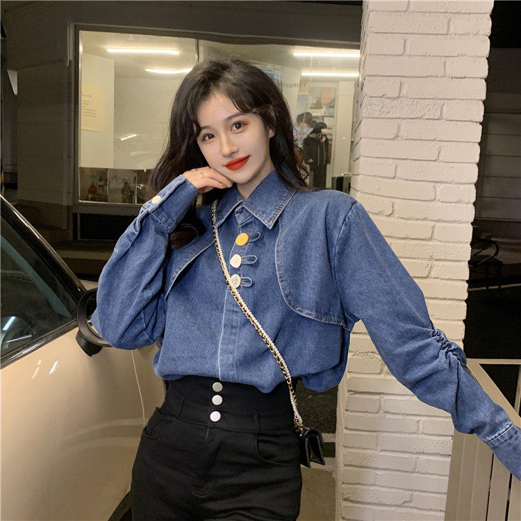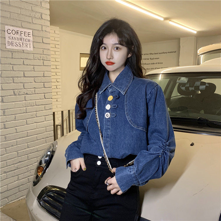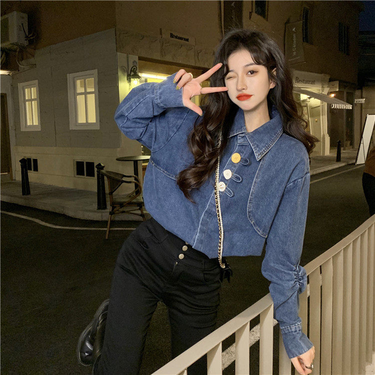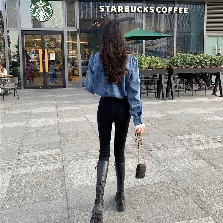 Джинсовая куртка-рубашка с кружевной отделкой для женщин, весенне-осенний дизайн, нишевый стиль, стильный французский шик, топ с воротником-стойкой.