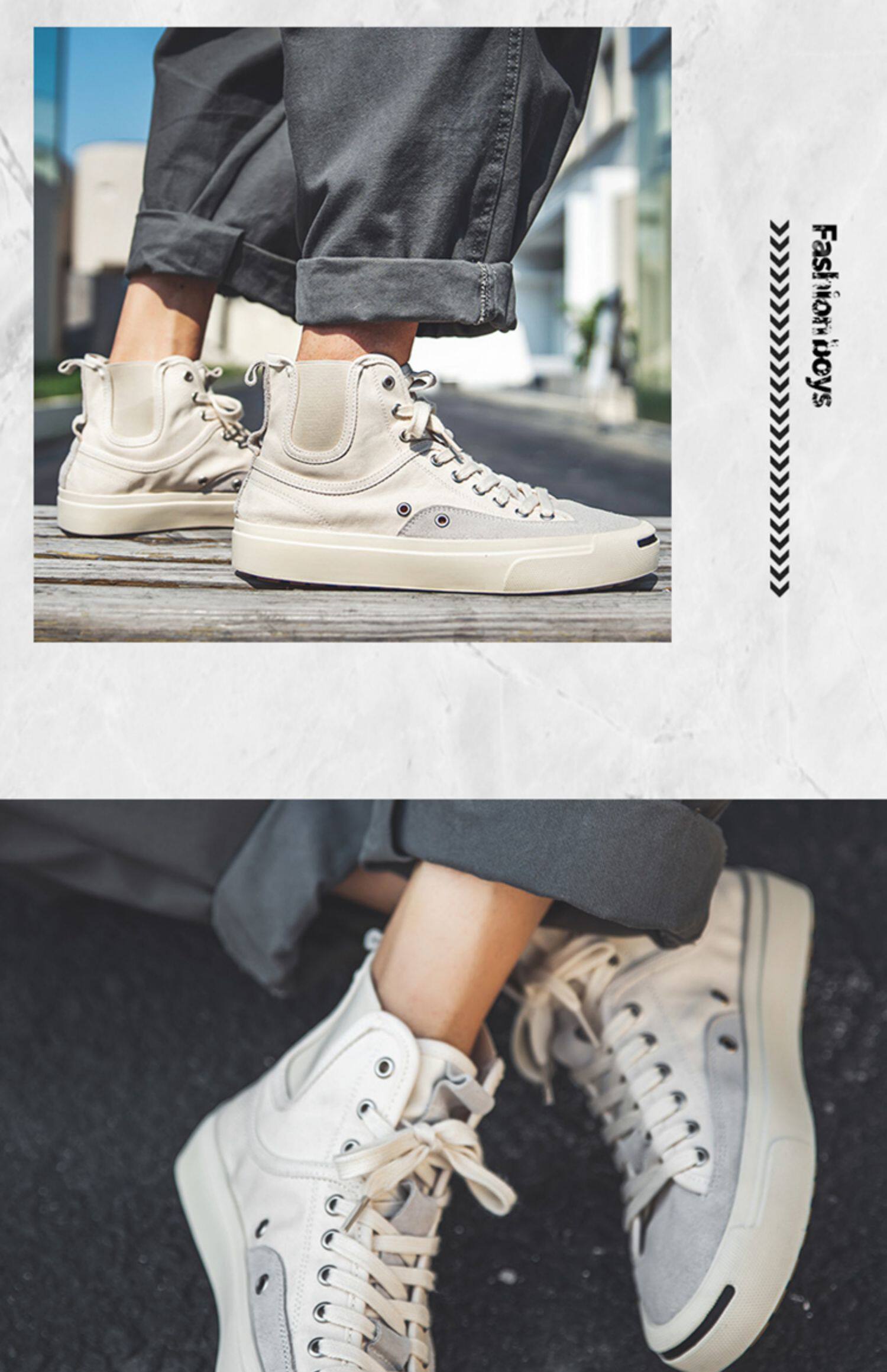 Canvas Shoes for Men, Summer High-Top Trendy Versatile Casual Shoes, Mid-Top Breathable New Korean Style Low-Top White Sneakers