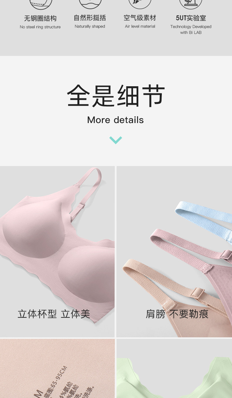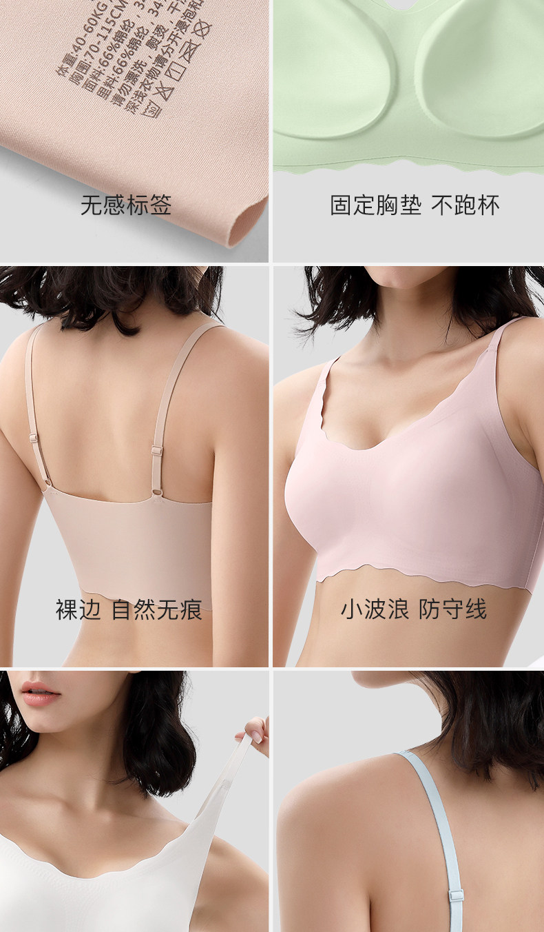 Seamless underwear for women with small breasts, push-up, sports and beautiful back, no rims, breast-shrinking vest-style girly spaghetti strap bra