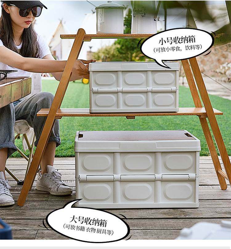 Outdoor Camping Storage Box Folding Box Camping Organizer Car Trunk Storage Box Wooden Cover Clothes Storage Box