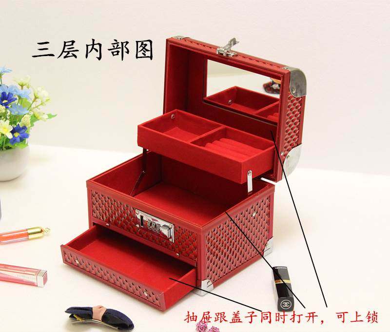 便携式手提化妆箱带密码锁多层首饰盒网红带镜大容量化妆品收纳盒
