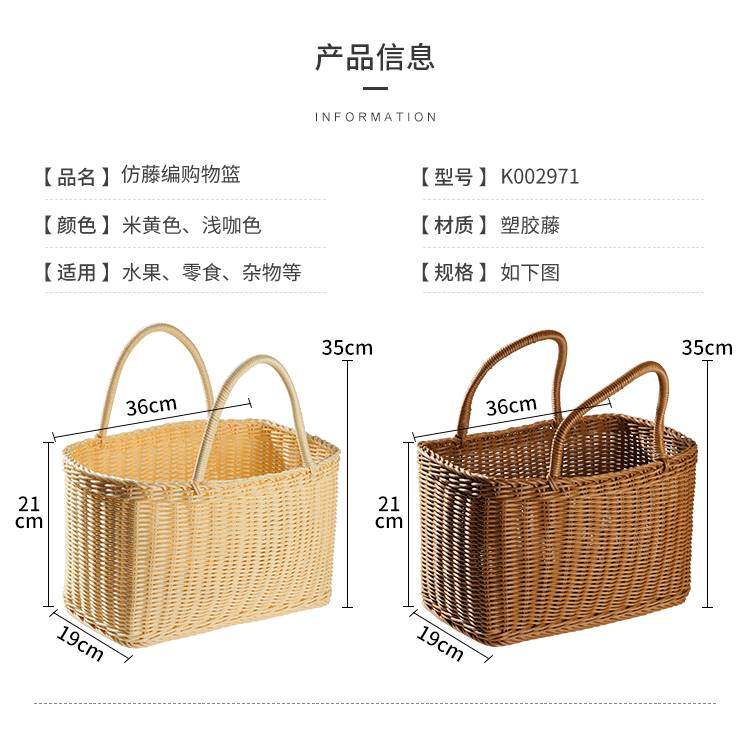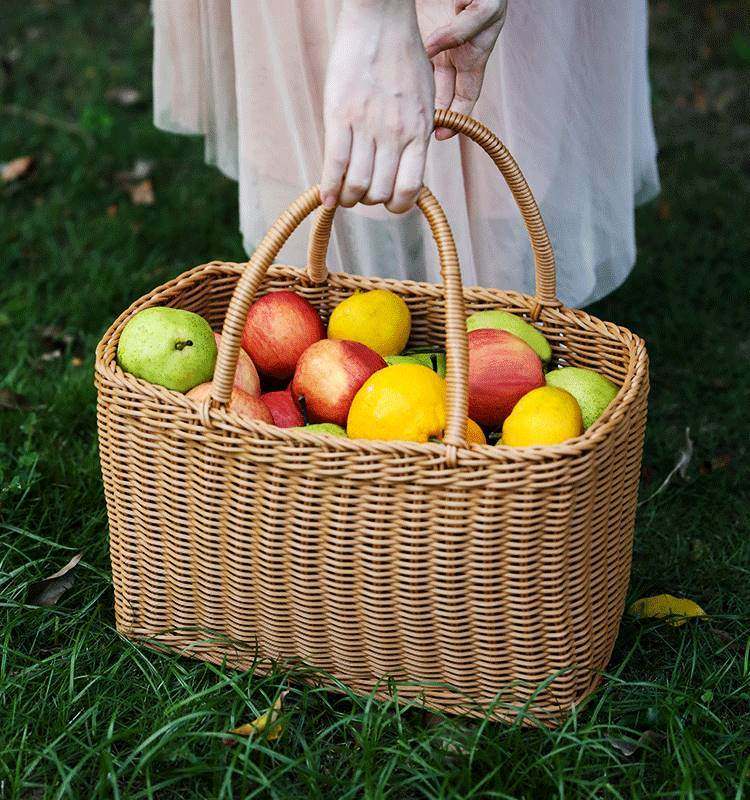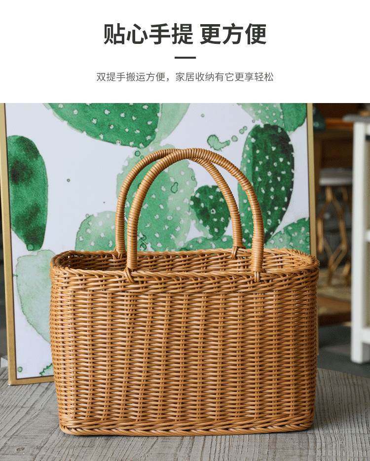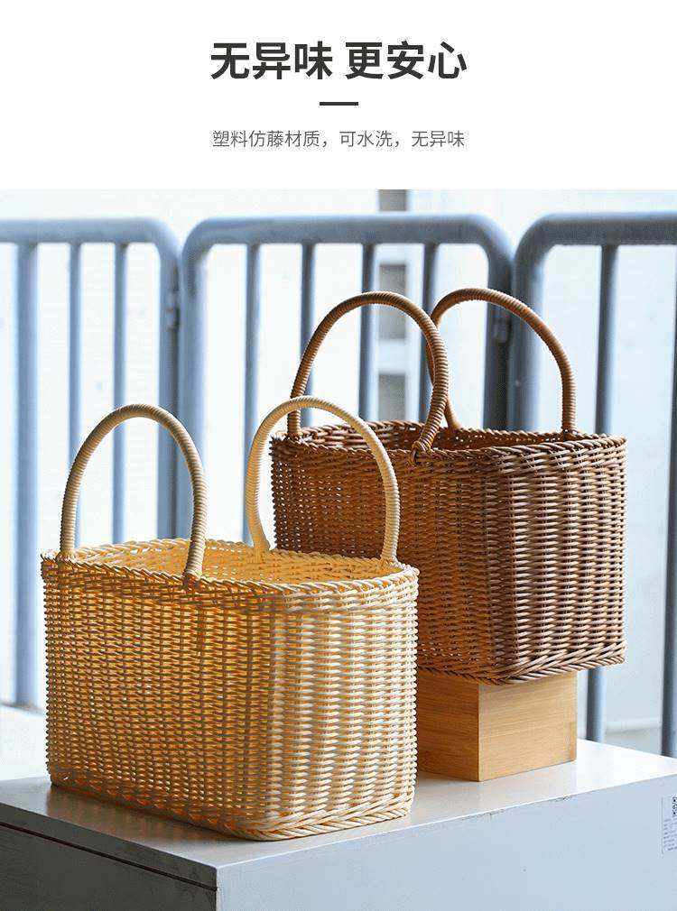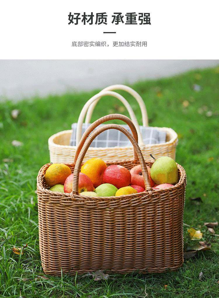 Floral Blue Woven Basket Bamboo Basket Storage Basket Picnic Basket ins Large Portable Rattan Shopping and Picking Basket