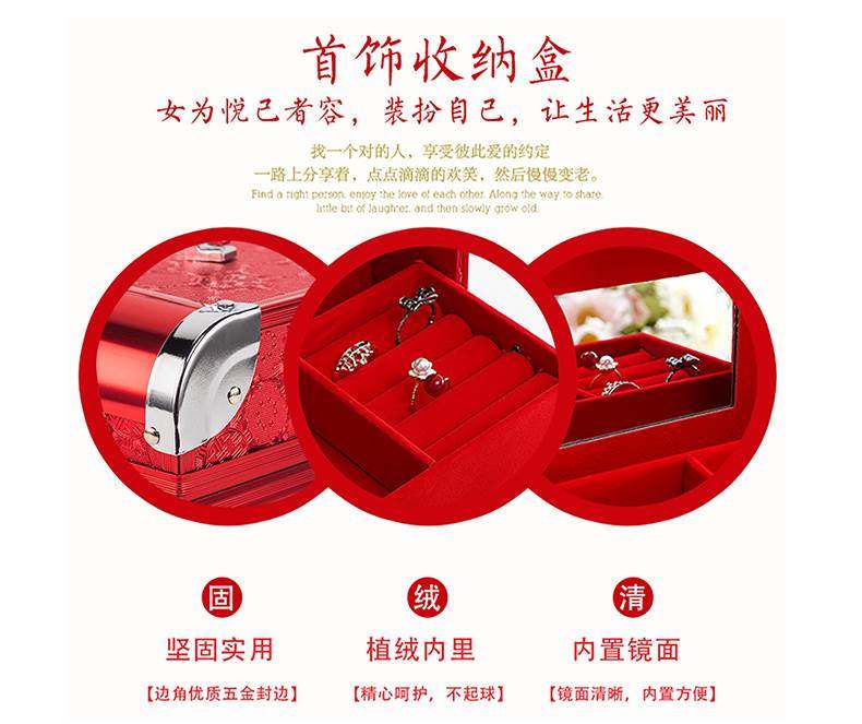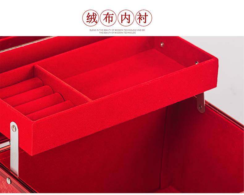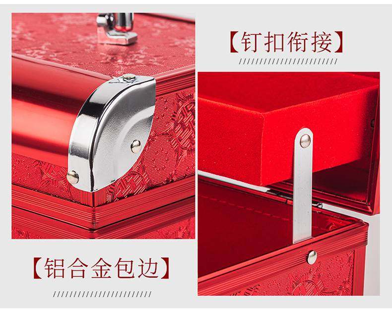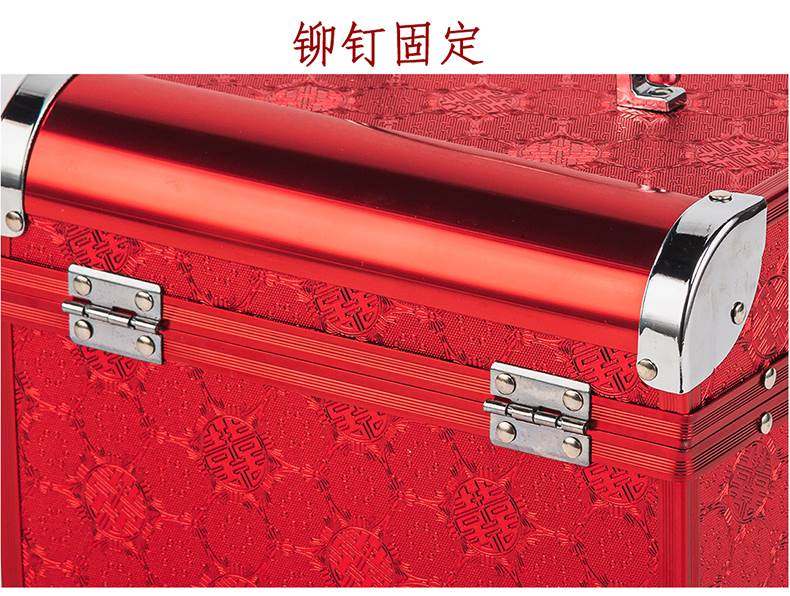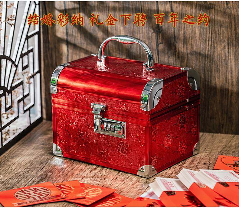 Bride's Dowry, Betrothal Gift, Storage Box, Betrothal Gold Box, Password Box, Red Three-Hardware Wedding Jewelry Box