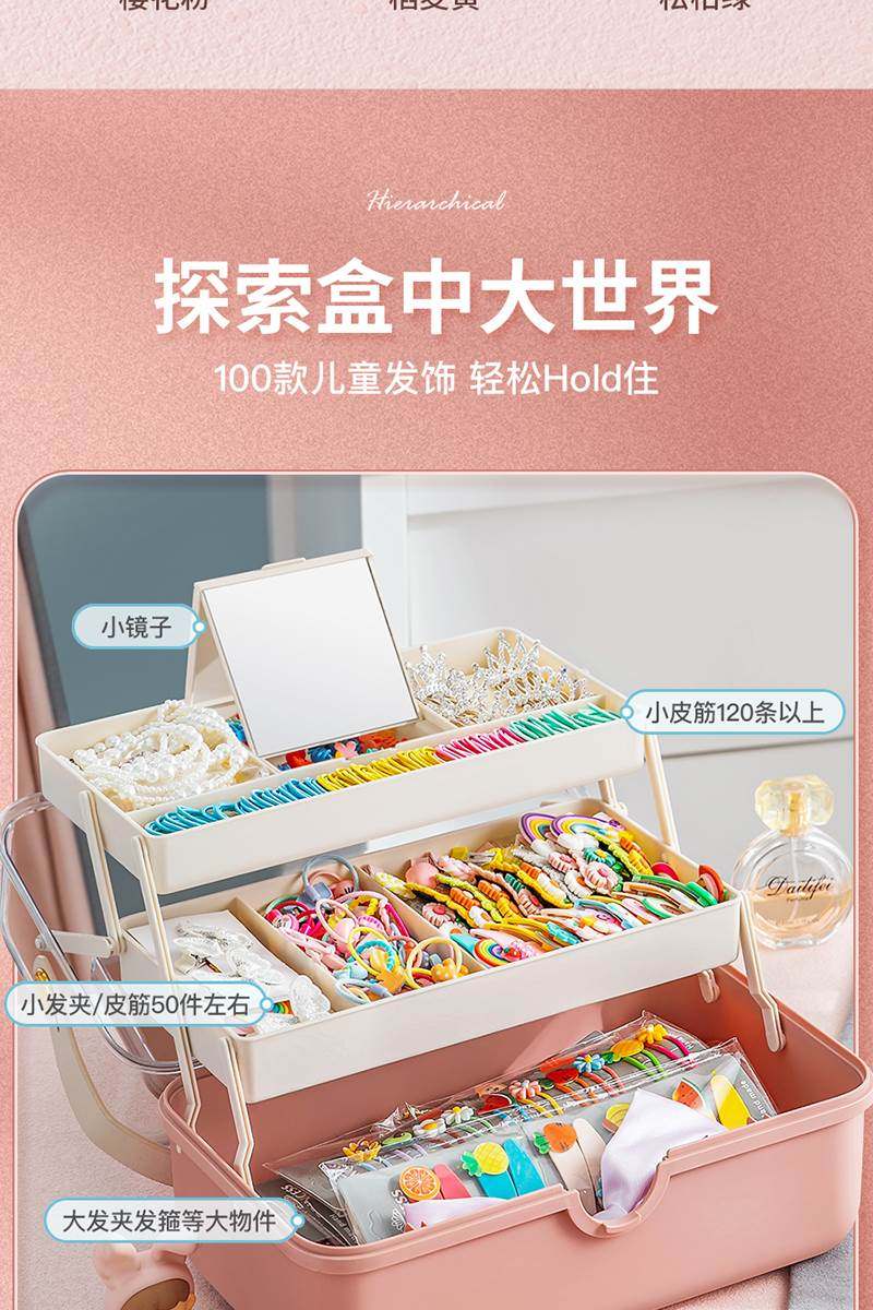 Children's Hair Accessories Storage Box Little Girl's Rubber Band Hair Tie Hairpin Baby Jewelry Storage Box with Mirror Jewelry Box