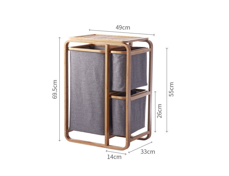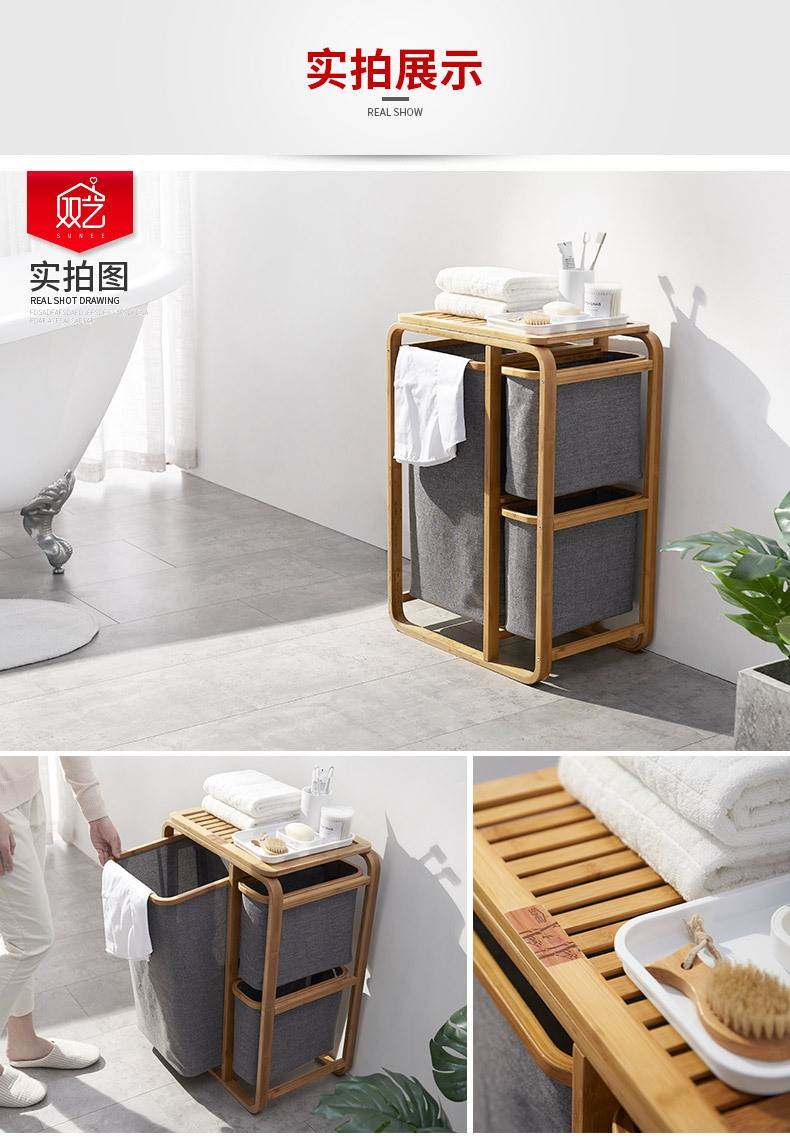 Bathroom Fabric Multifunctional Laundry Basket, Dirty Clothes Storage Bin, Large Bedroom Laundry Hamper, Bamboo Wood Storage Rack, Ins Style