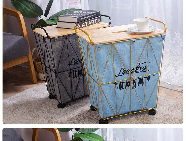Nordic Ins Style Light Luxury Iron Laundry Basket, Laundry Hamper, Storage Basket for Clothes, Toys, and Miscellaneous Items, Bathroom Laundry Bin with Lid