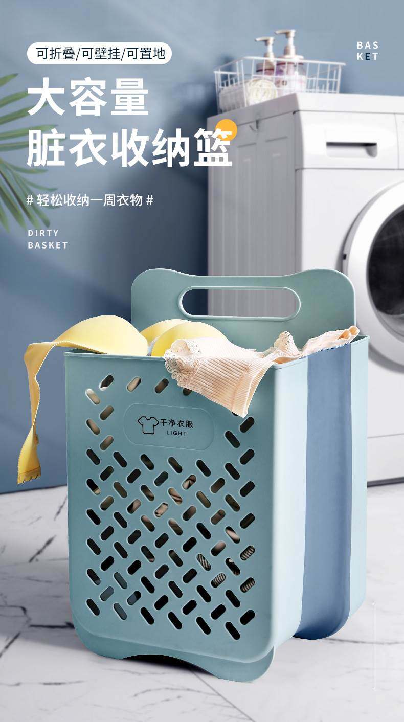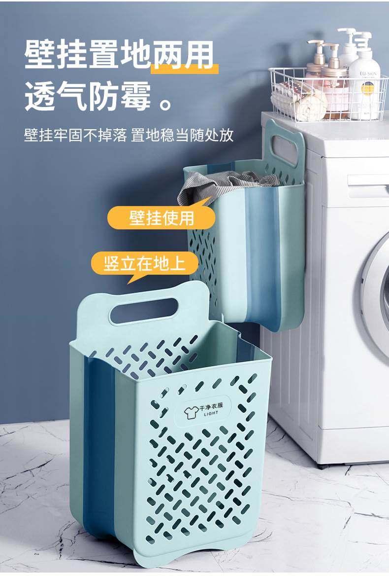 Wall-Mounted Dirty Clothes Basket Household Foldableing Laundry Basket Storage Large Storage Basket Plastic Punch-Free Wall-Mounted Bathroom Dirty Clothes Basket