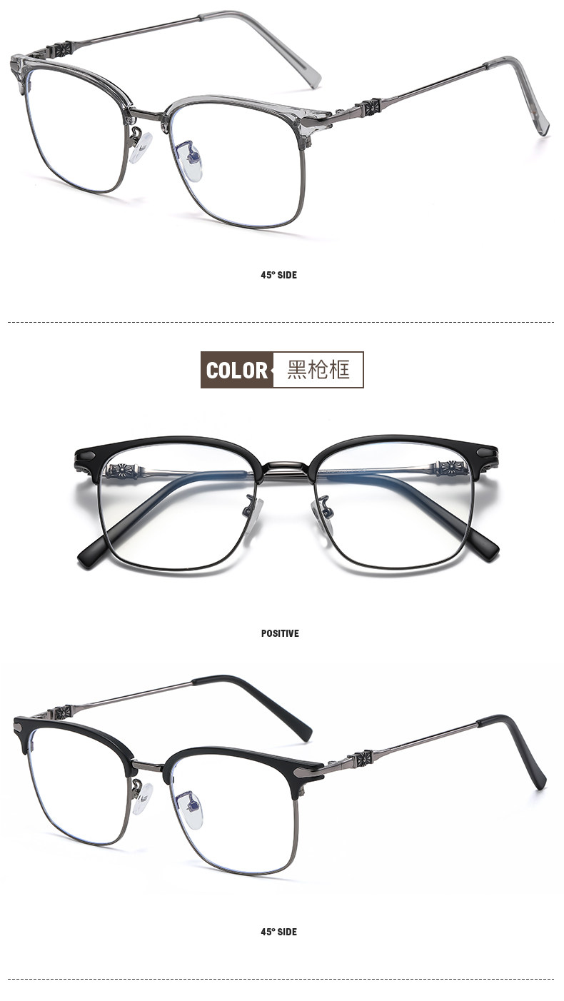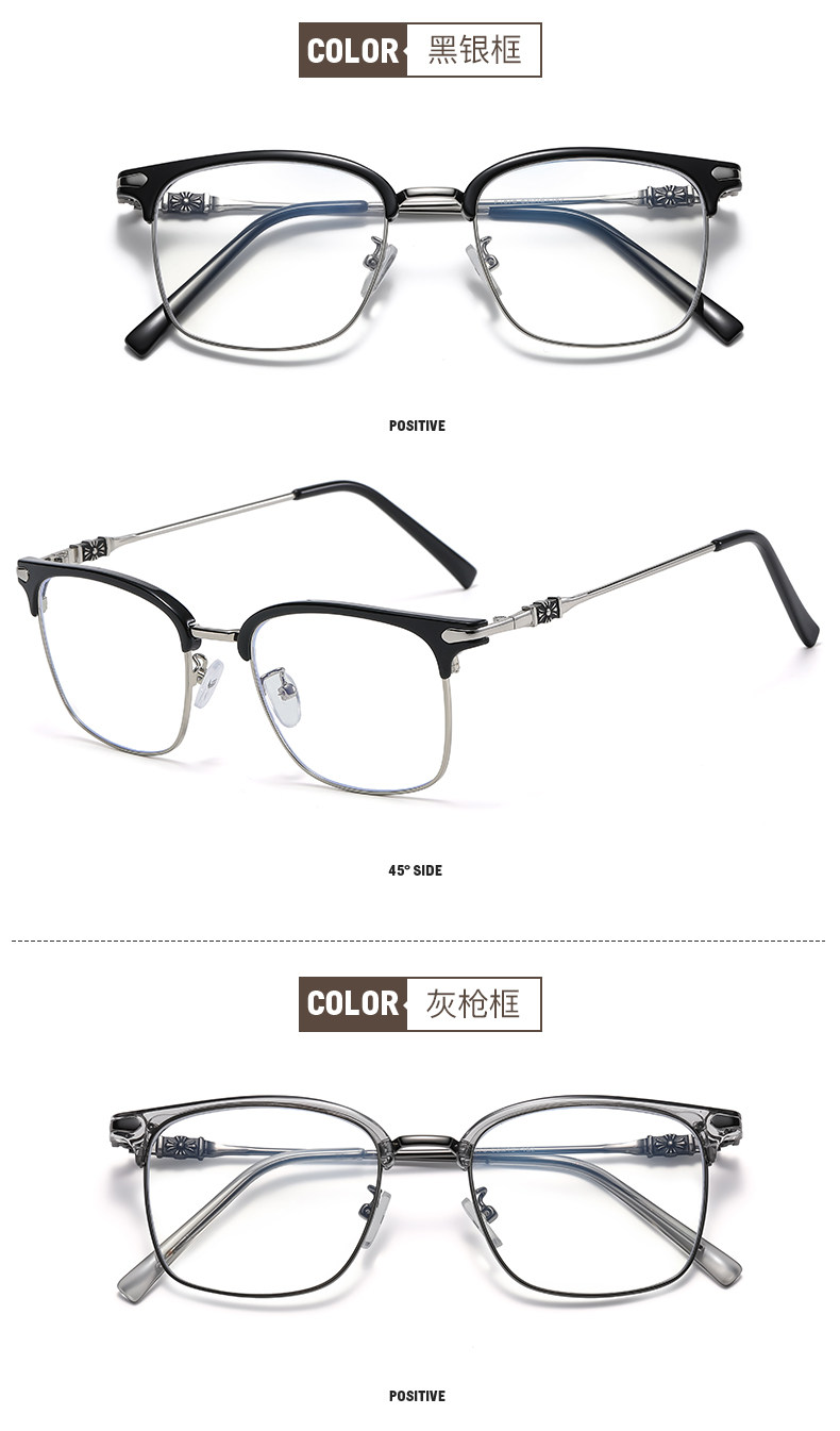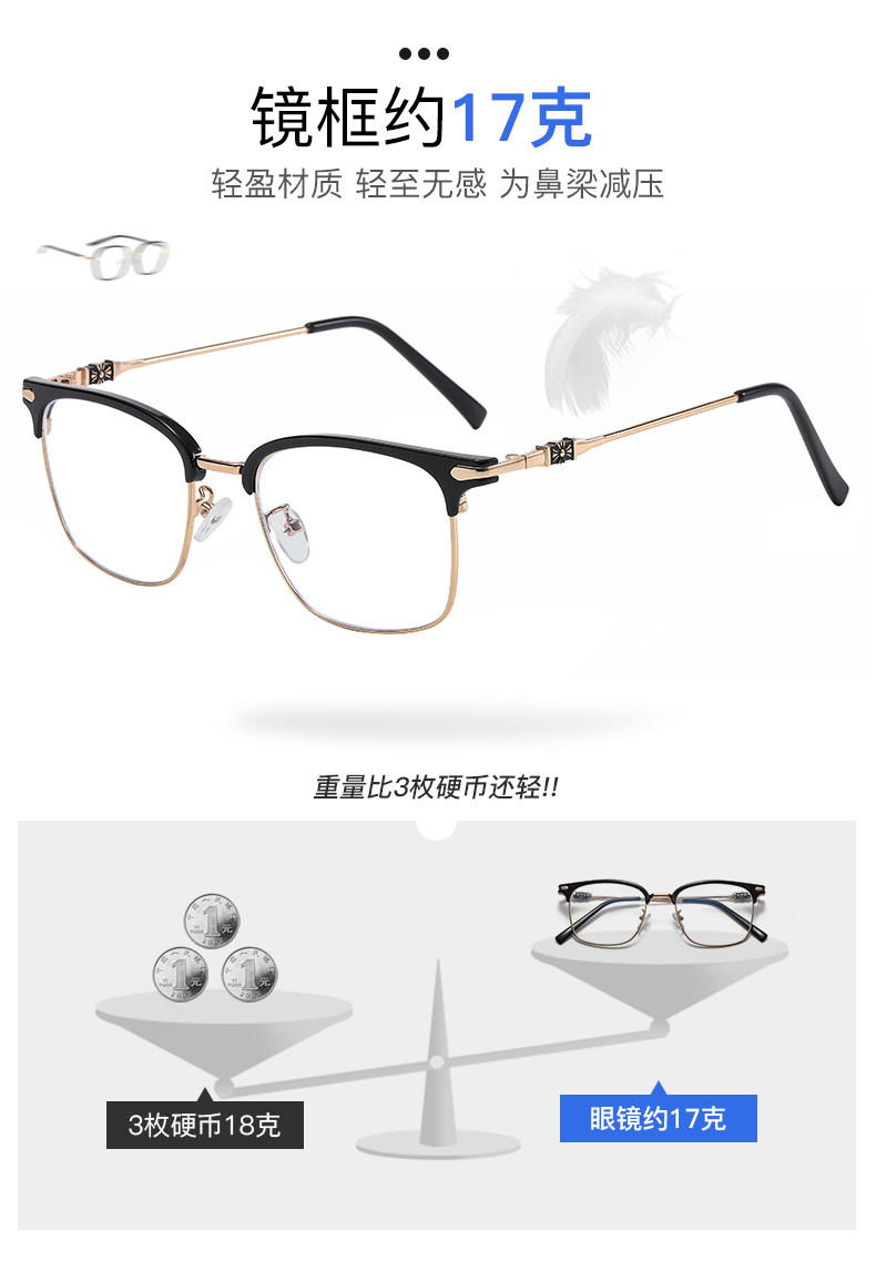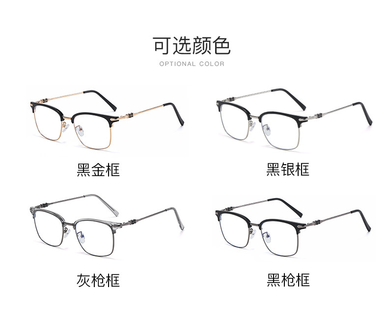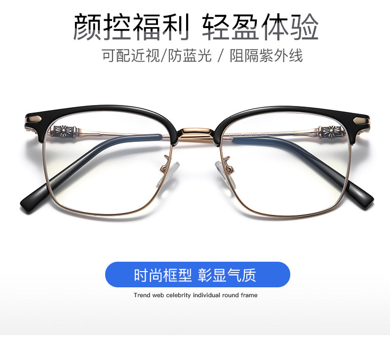 Myopic glasses for men can be equipped with degree-changing, anti-blue light radiation eye frames for large faces, half-frame flat frames for women, optical glasses