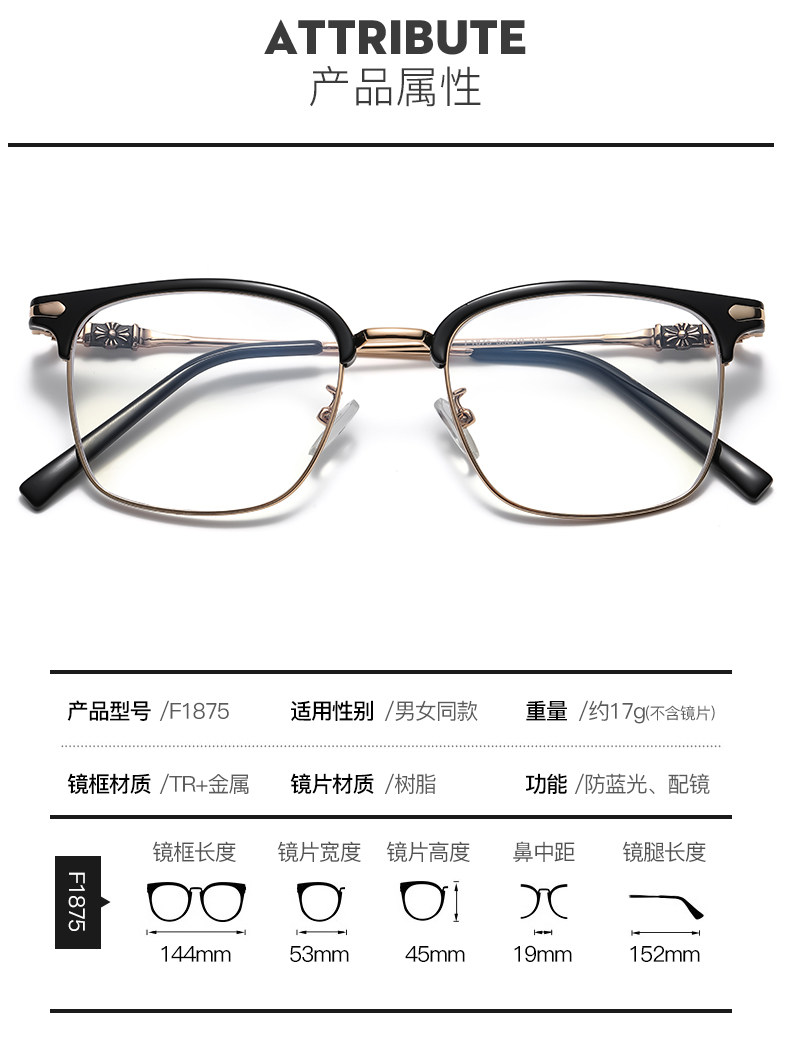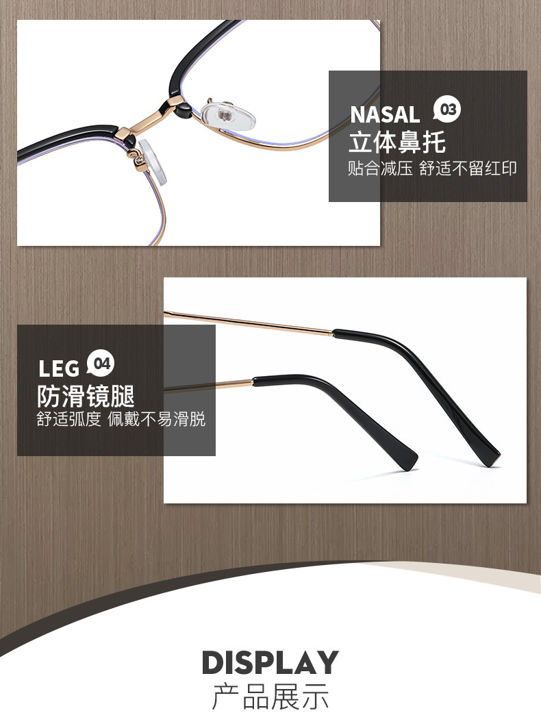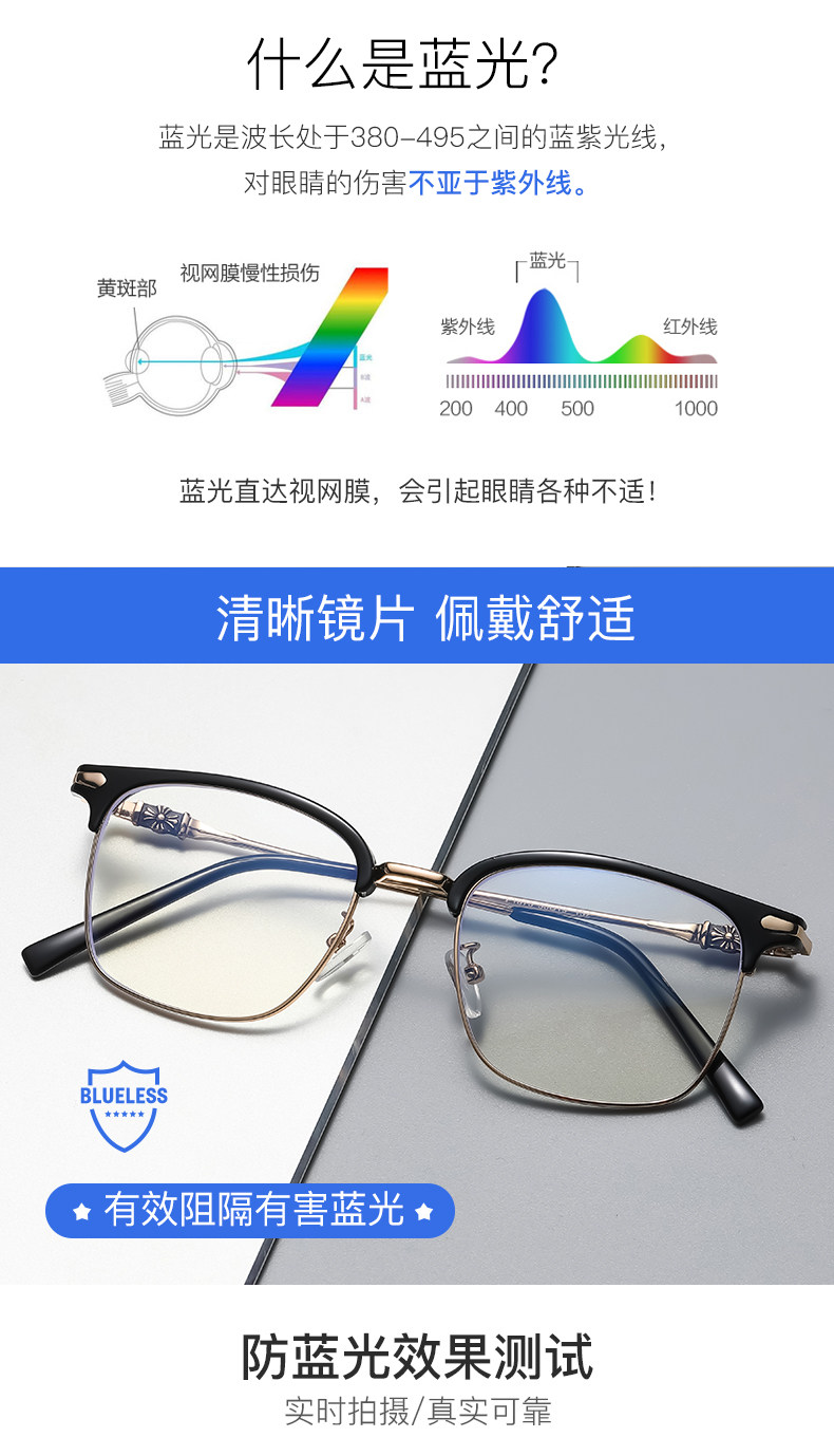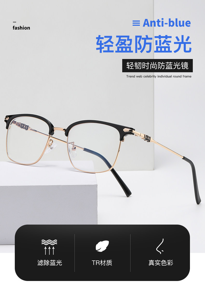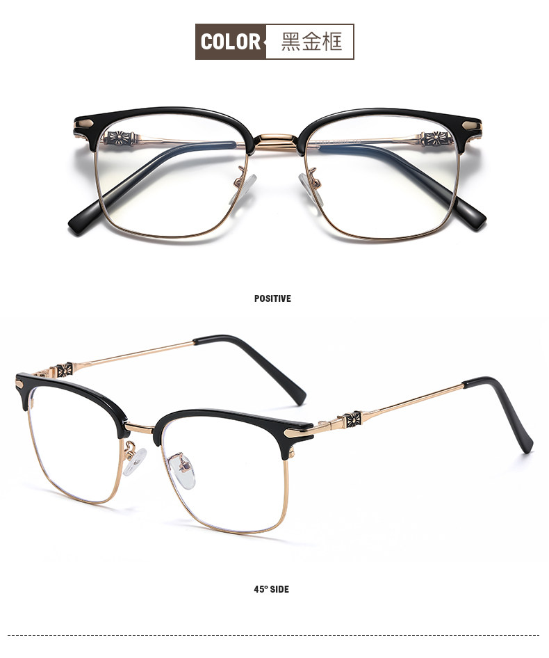 Myopic glasses for men can be equipped with degree-changing, anti-blue light radiation eye frames for large faces, half-frame flat frames for women, optical glasses