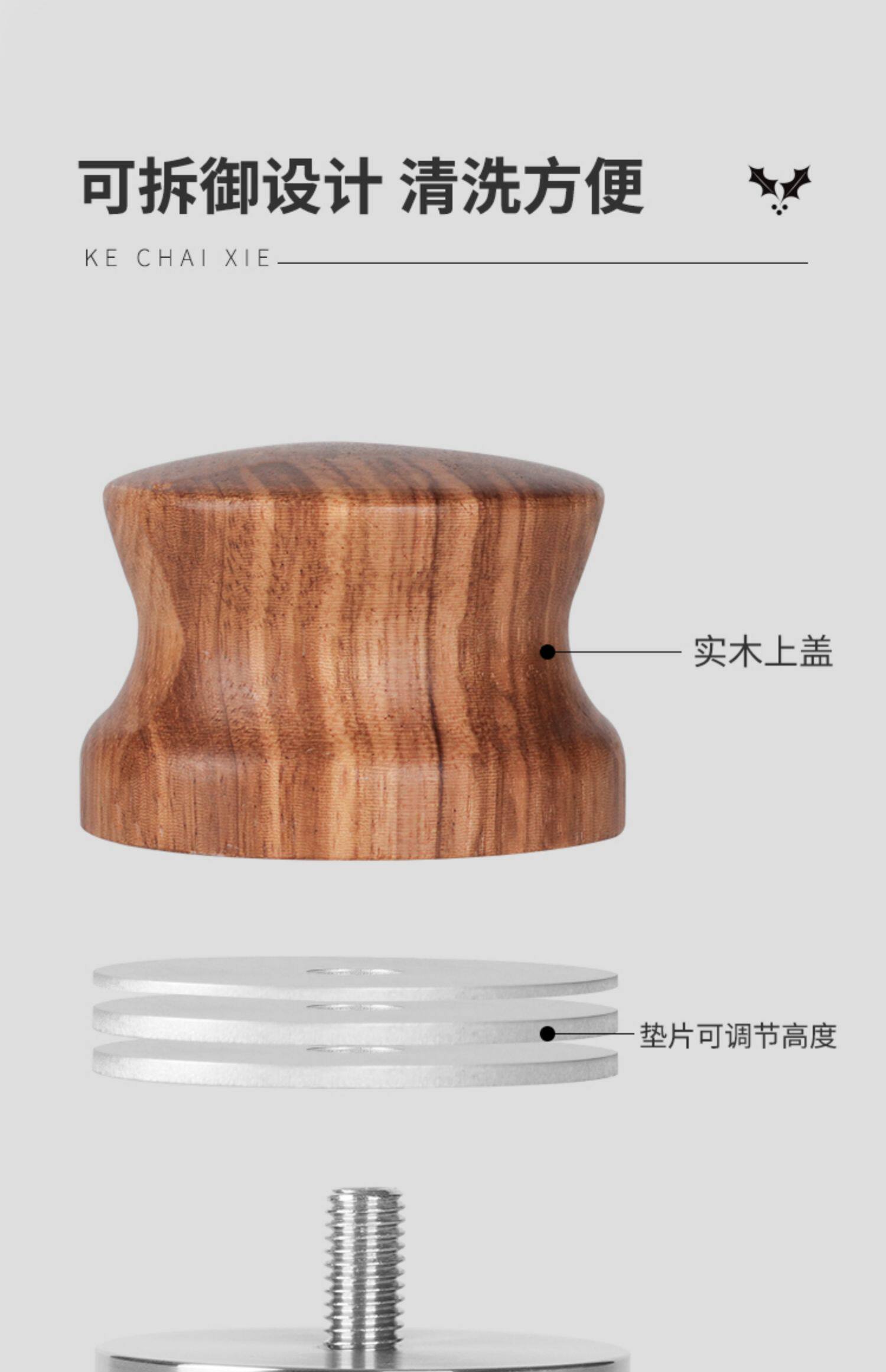 Zebra Wood 51mm Three-Blade 304 Stainless Steel Powder Distributor Solid Wood 53 Italian Style 58mm Powder Distributor Set Adjustable
